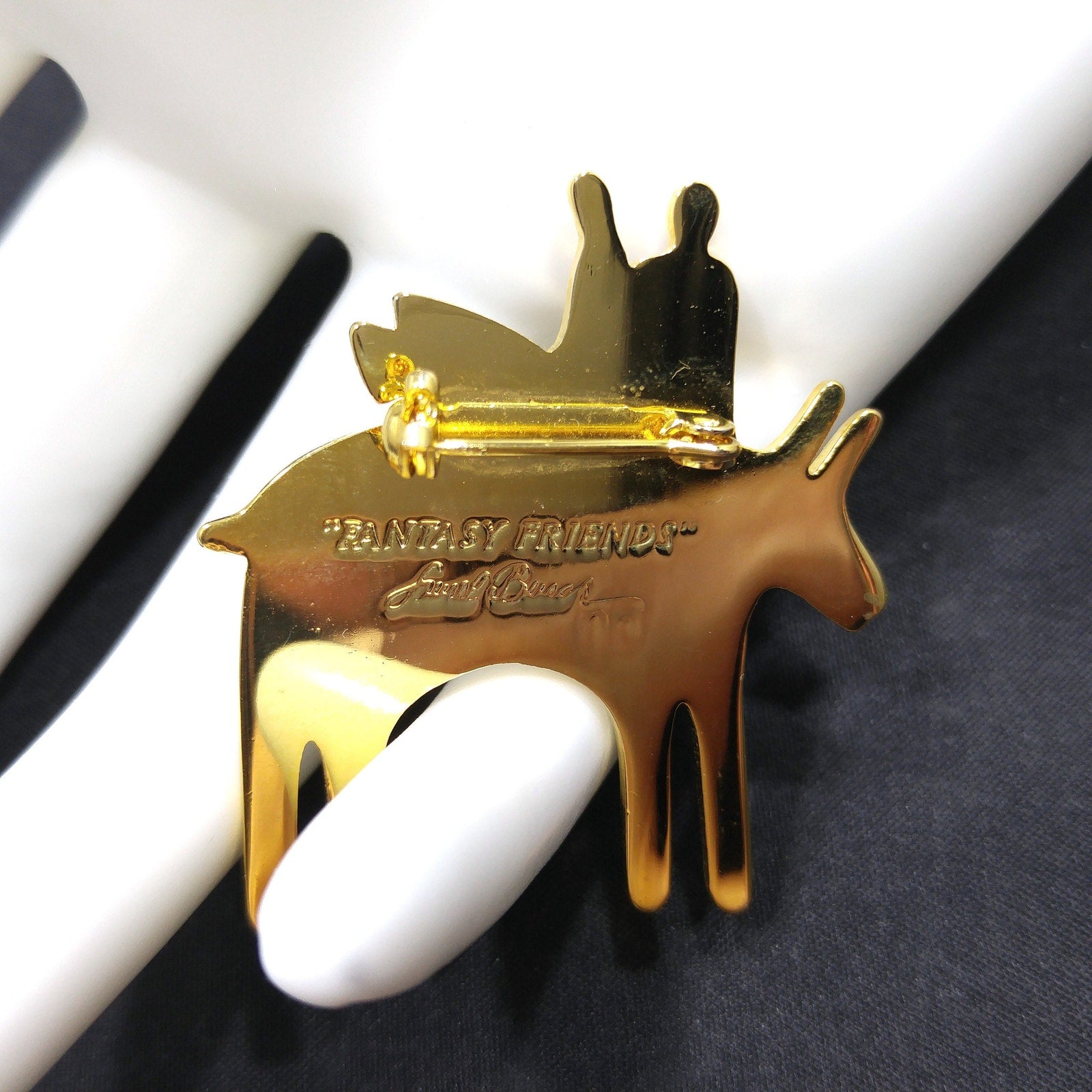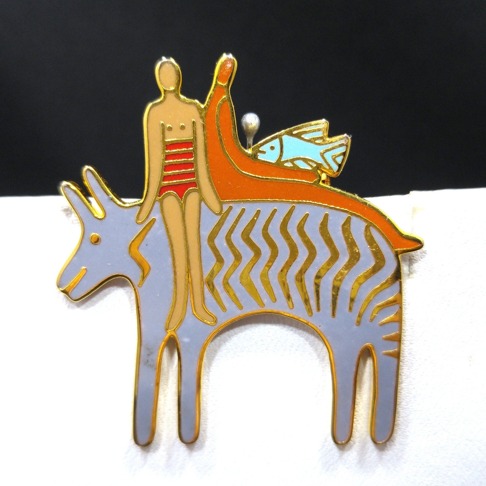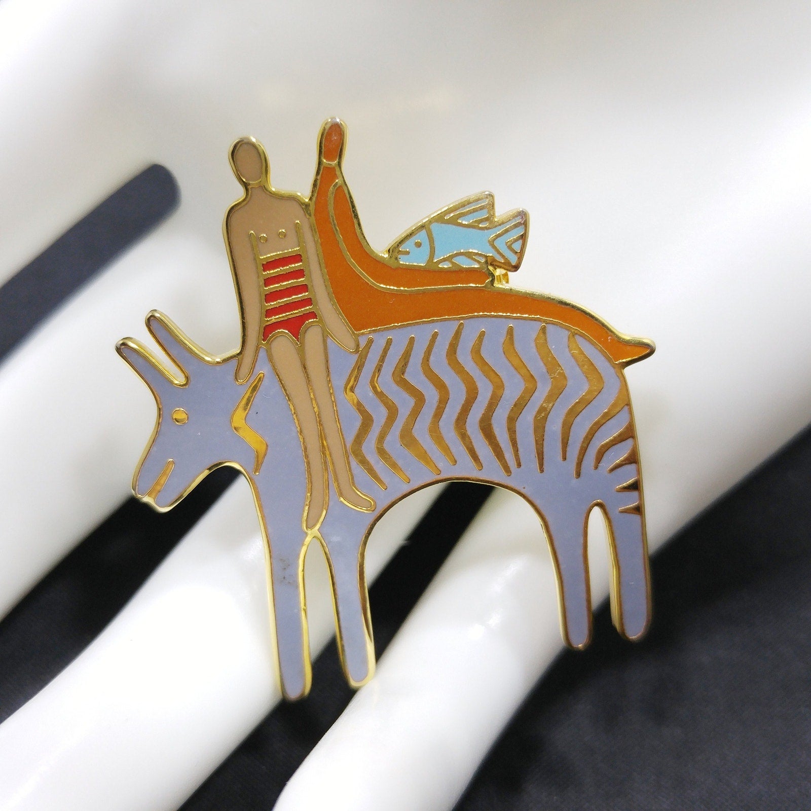 Laurel Burch "Fantasy Friends" Brooch, Cloisonne Enamel, 1980s Vintage Jewelry