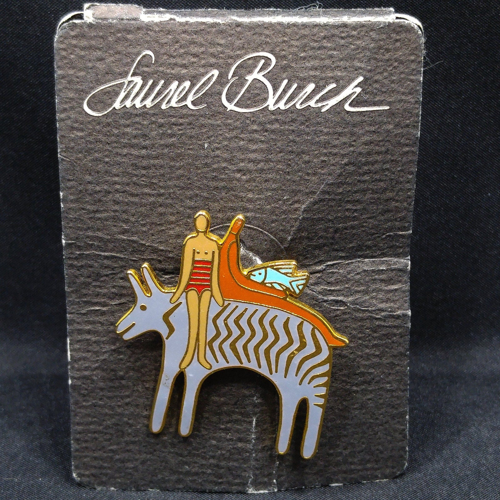 *Description: This is a great vintage Laurel Burch brooch entitled "Fantasy Friends" from the 1980s. The brooch is on the original card and has the 1980s price on the back. The brooch looks great and would be a great addition to your vintage jewelry collection or make a great vintage gift!