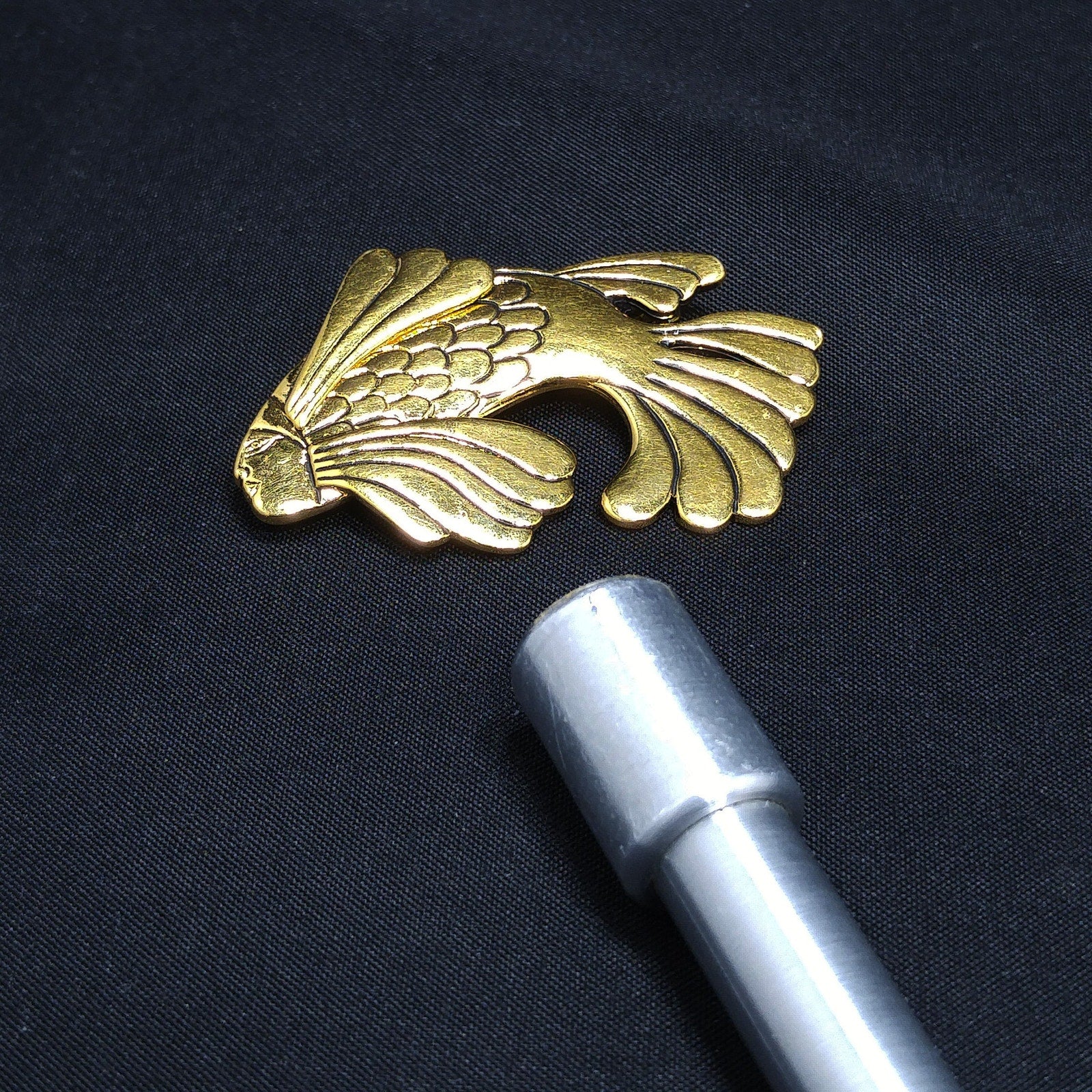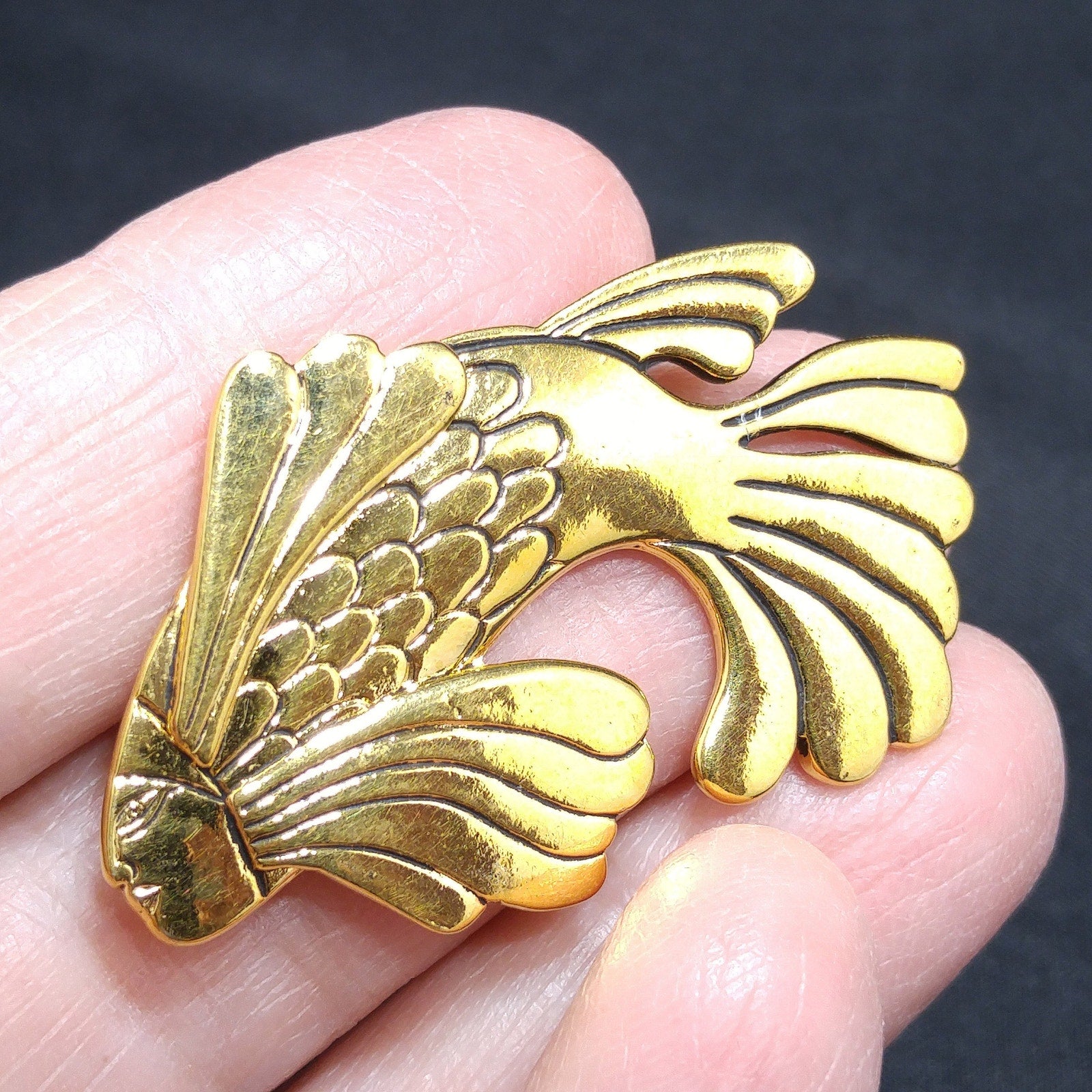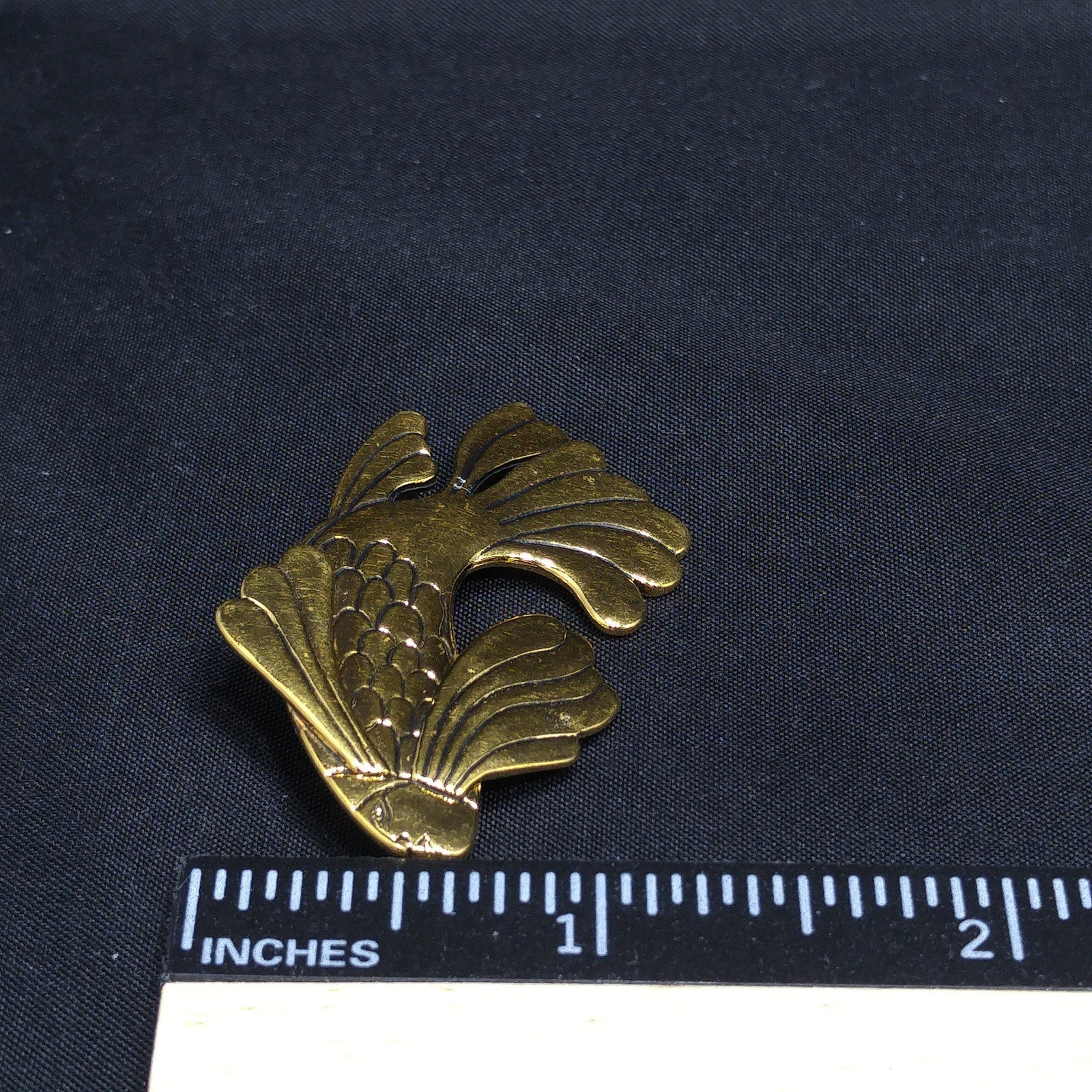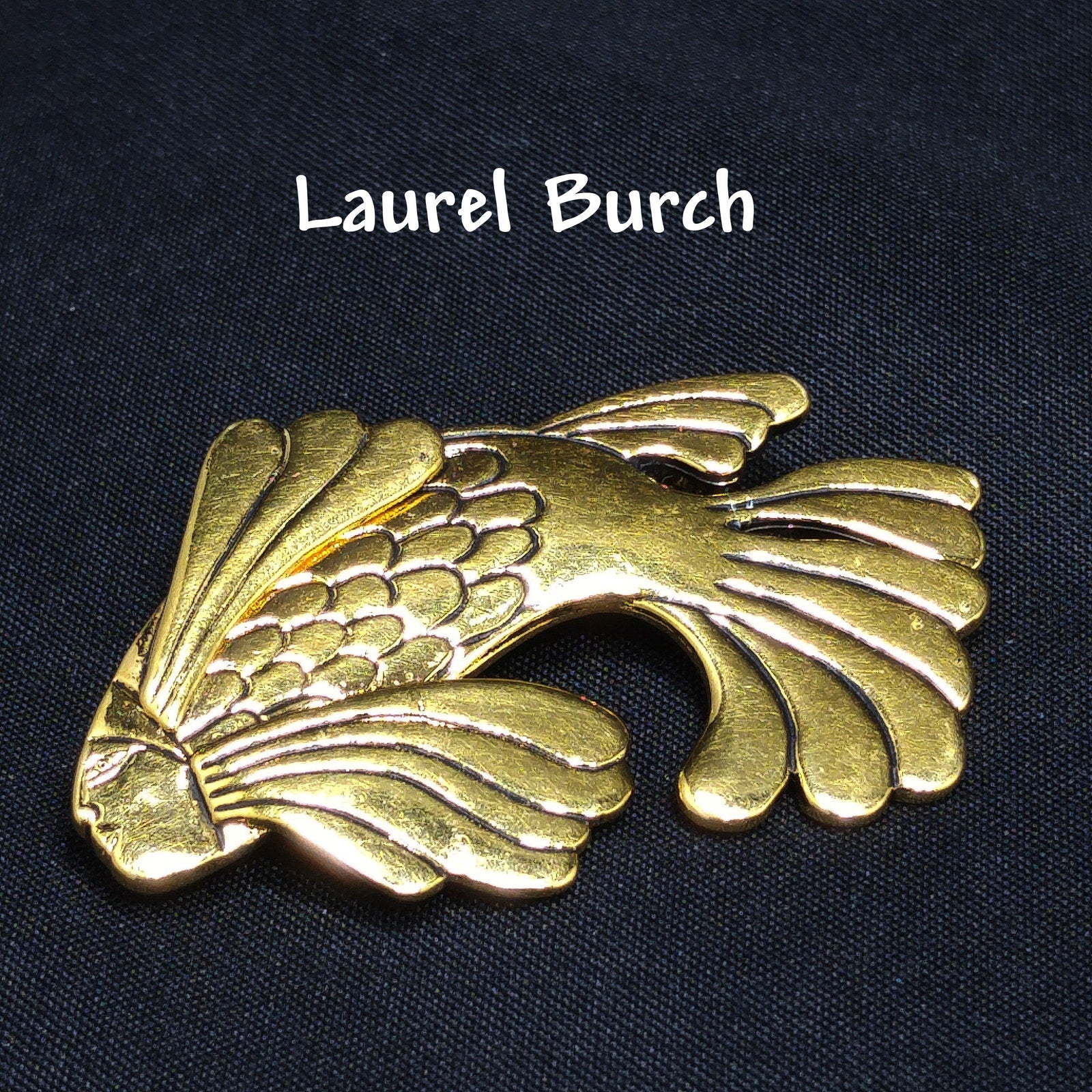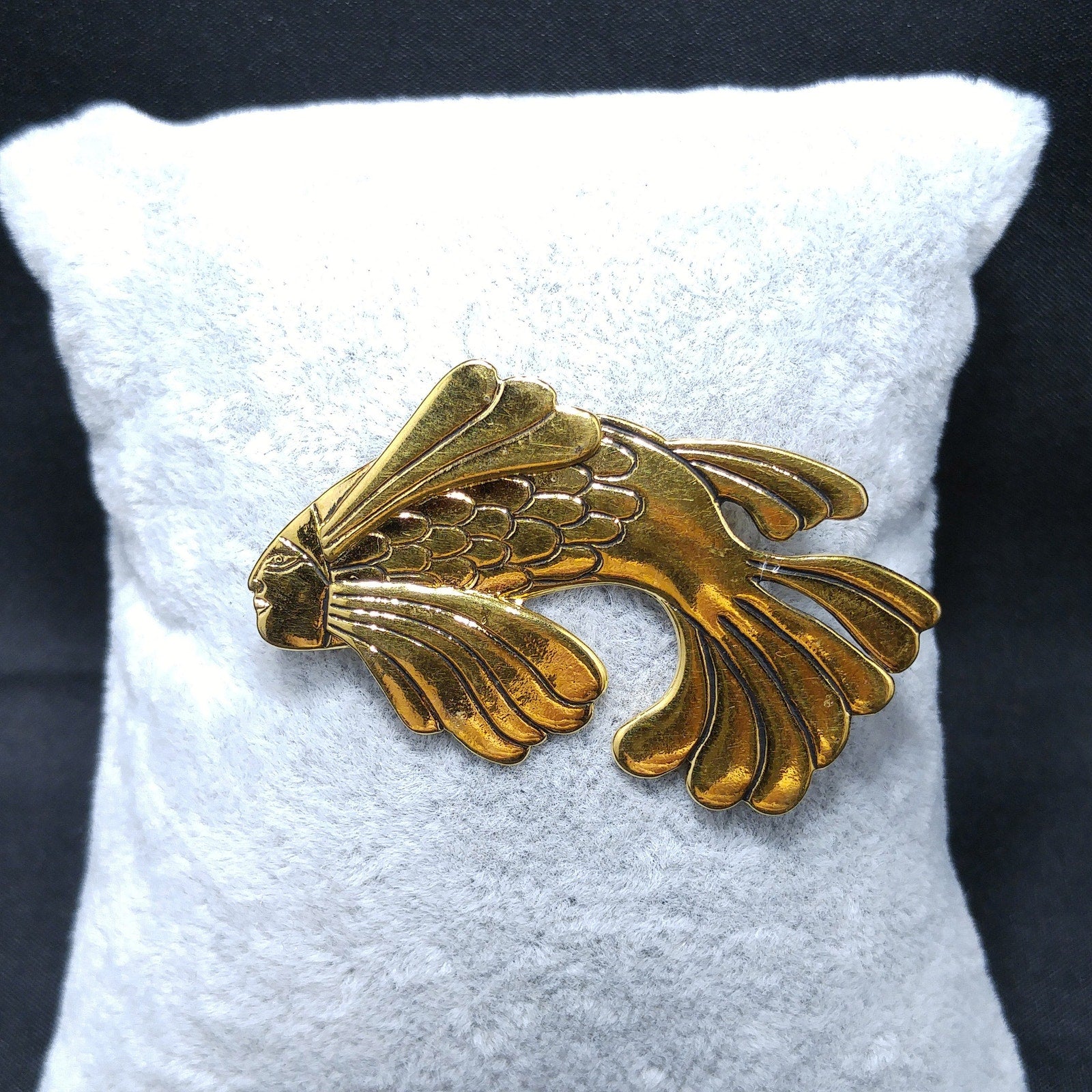 *Description: This is a unique Laurel Burch fish brooch with a human face from the 1980s. The brooch was designed with gold plated metal in the shape of a Koi fish. Rather than a fish face, you see a human face which blends in with the design. This is a great brooch to add to your vintage jewelry collection or give as a great vintage gift.