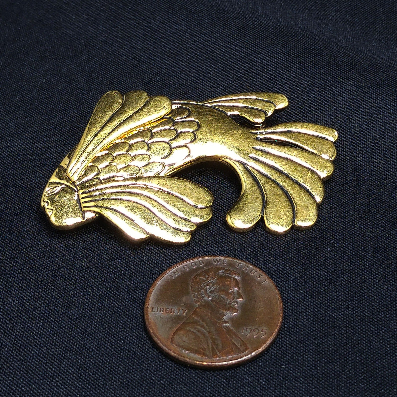 Laurel Burch Fish With Human Face Brooch, Gold Plated, 1980s Vintage Jewelry
