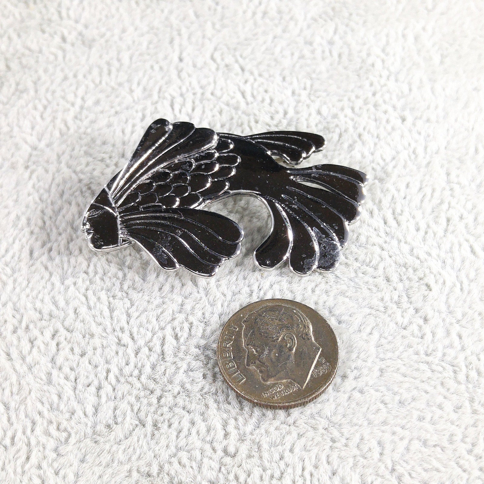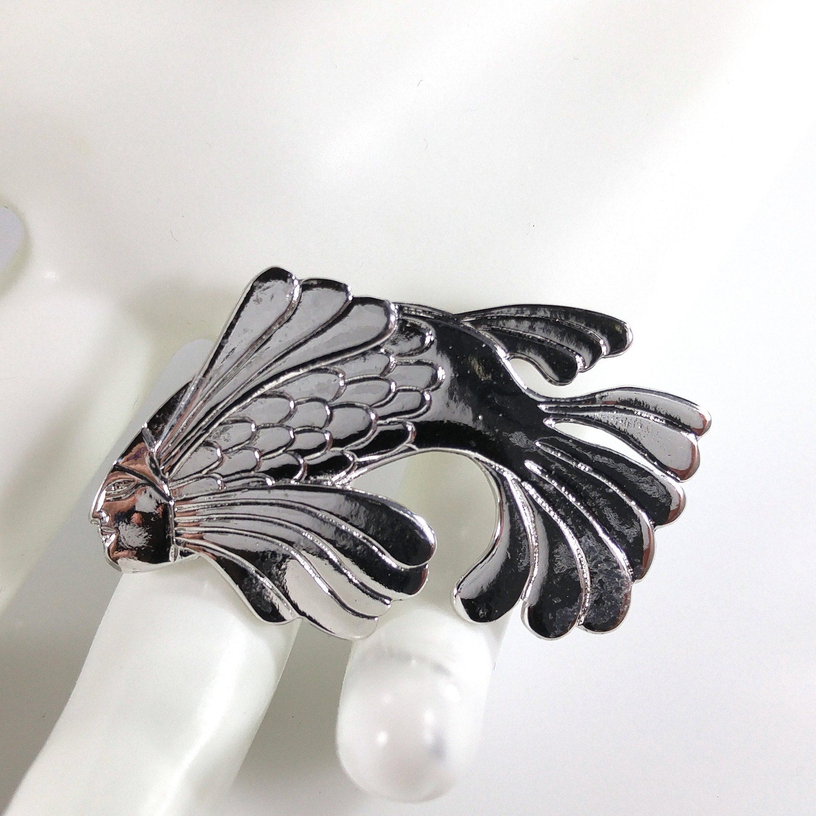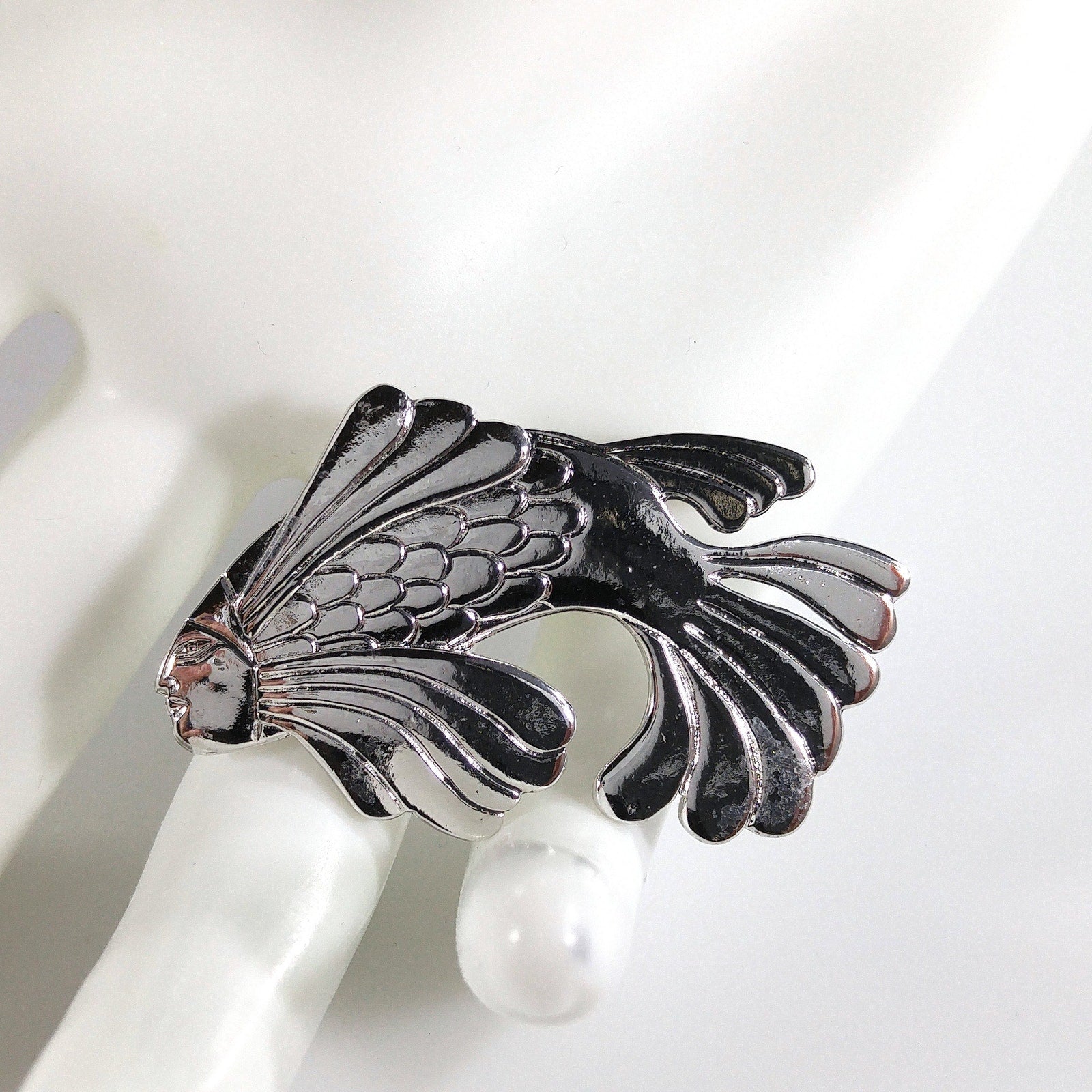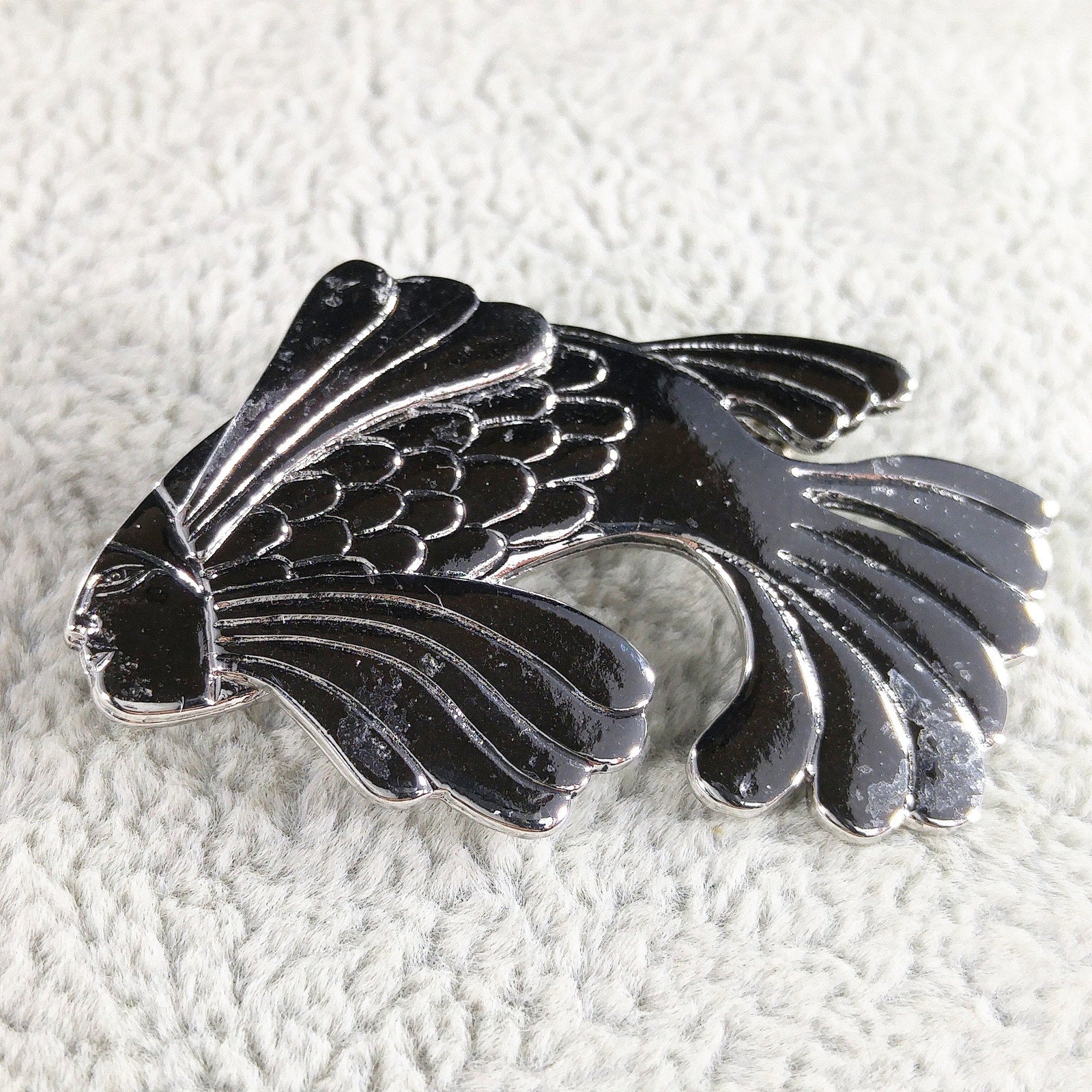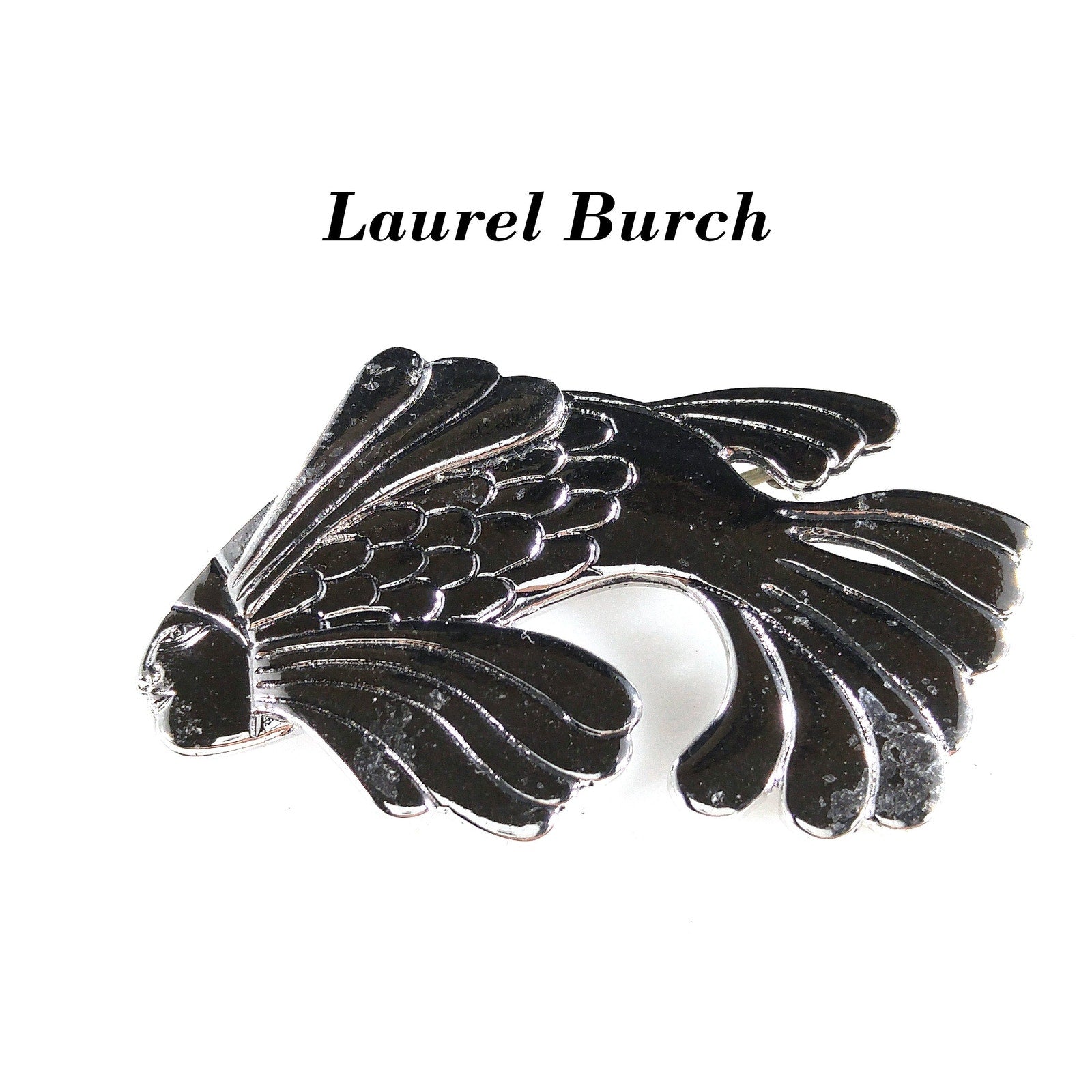 *Description: This is a unique Laurel Burch fish brooch with a human face from the 1980s. The brooch was designed with rhodium plated metal in the shape of a Koi fish. Rather than a fish face, you see a human face which blends in with the design. This would be a great addition to your vintage jewelry collection or make a great vintage gift!