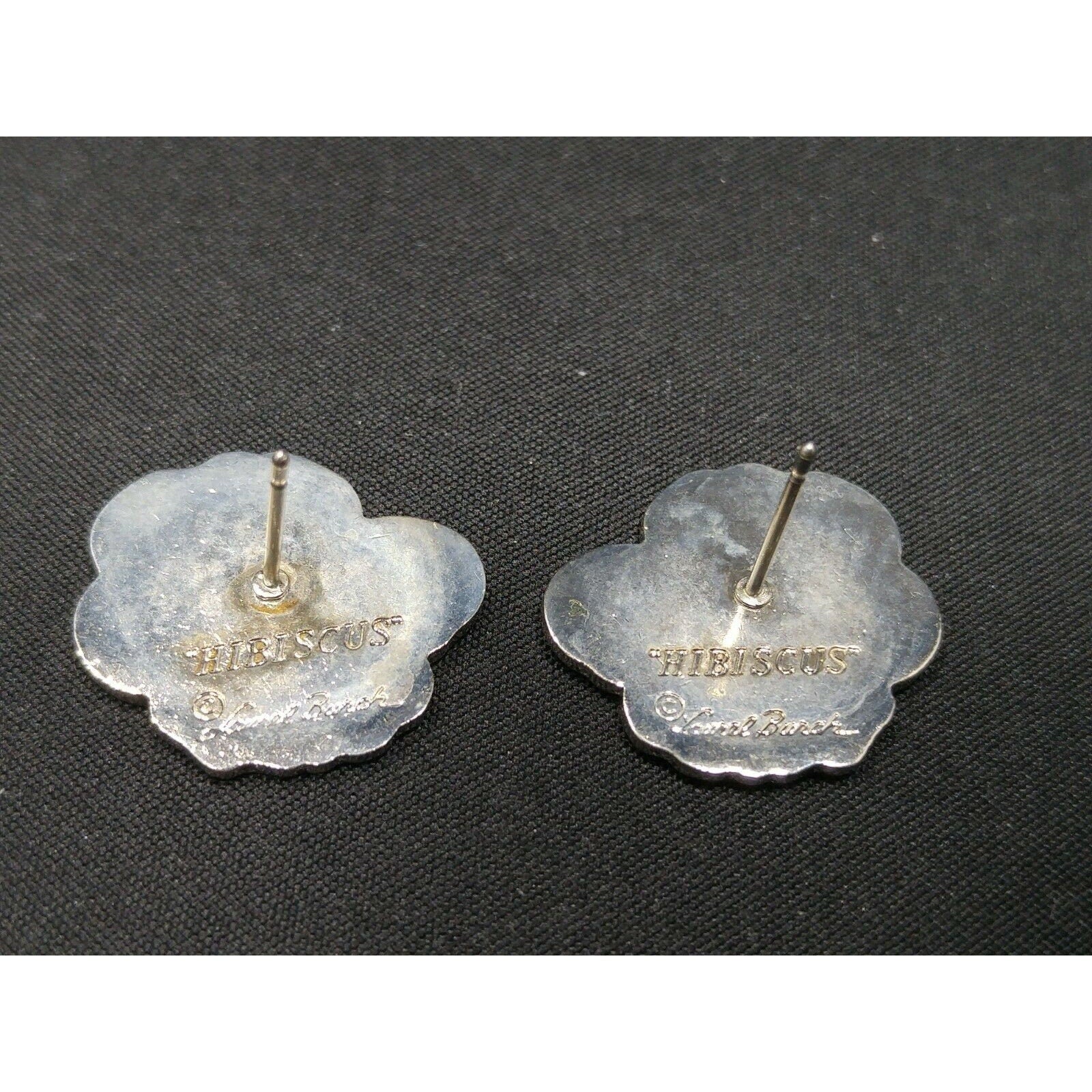 Laurel Burch "Hibiscus" Pink Post Earrings, Rhodium Plated Silver Tone, 1980s