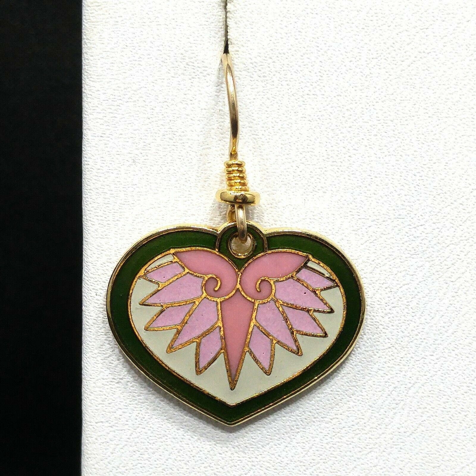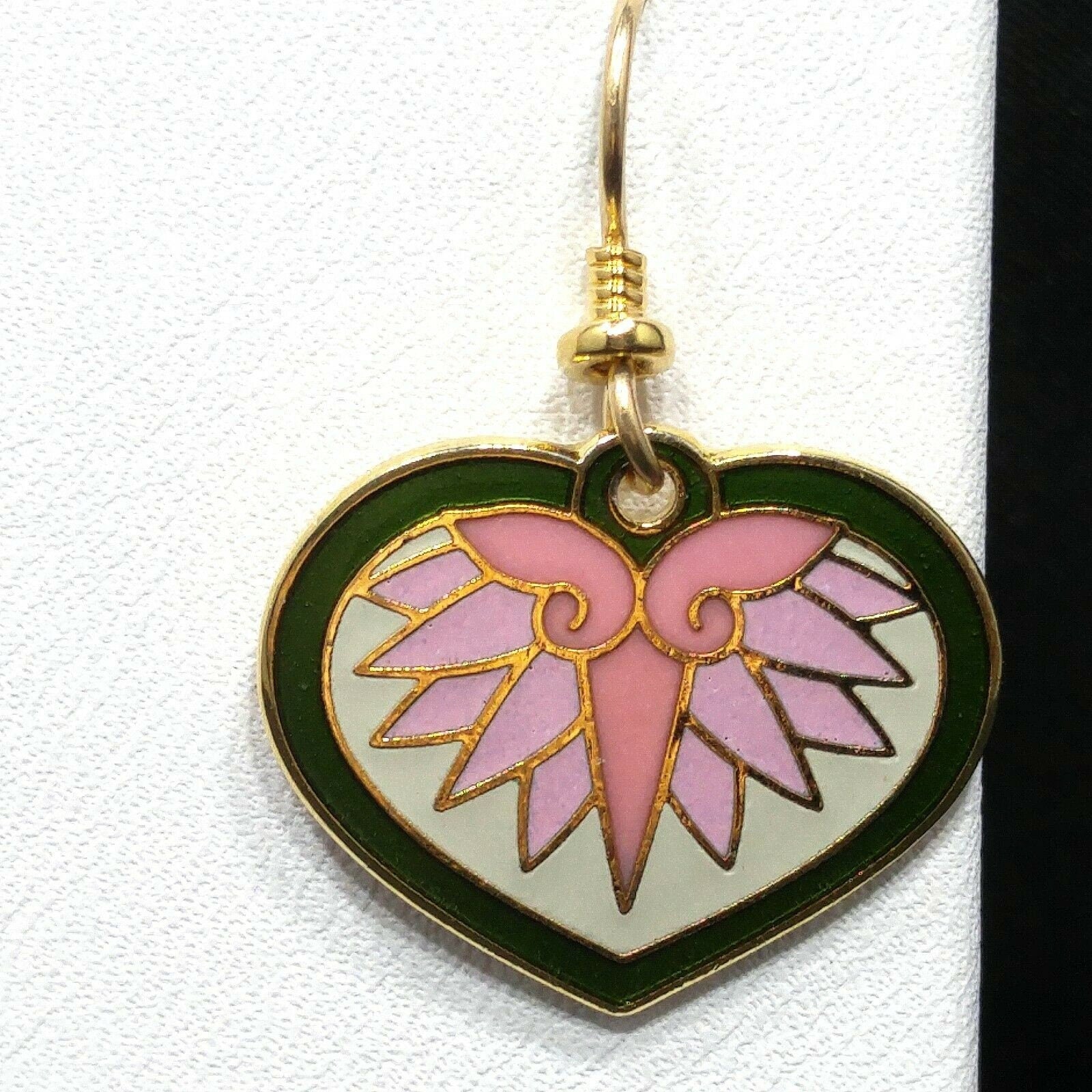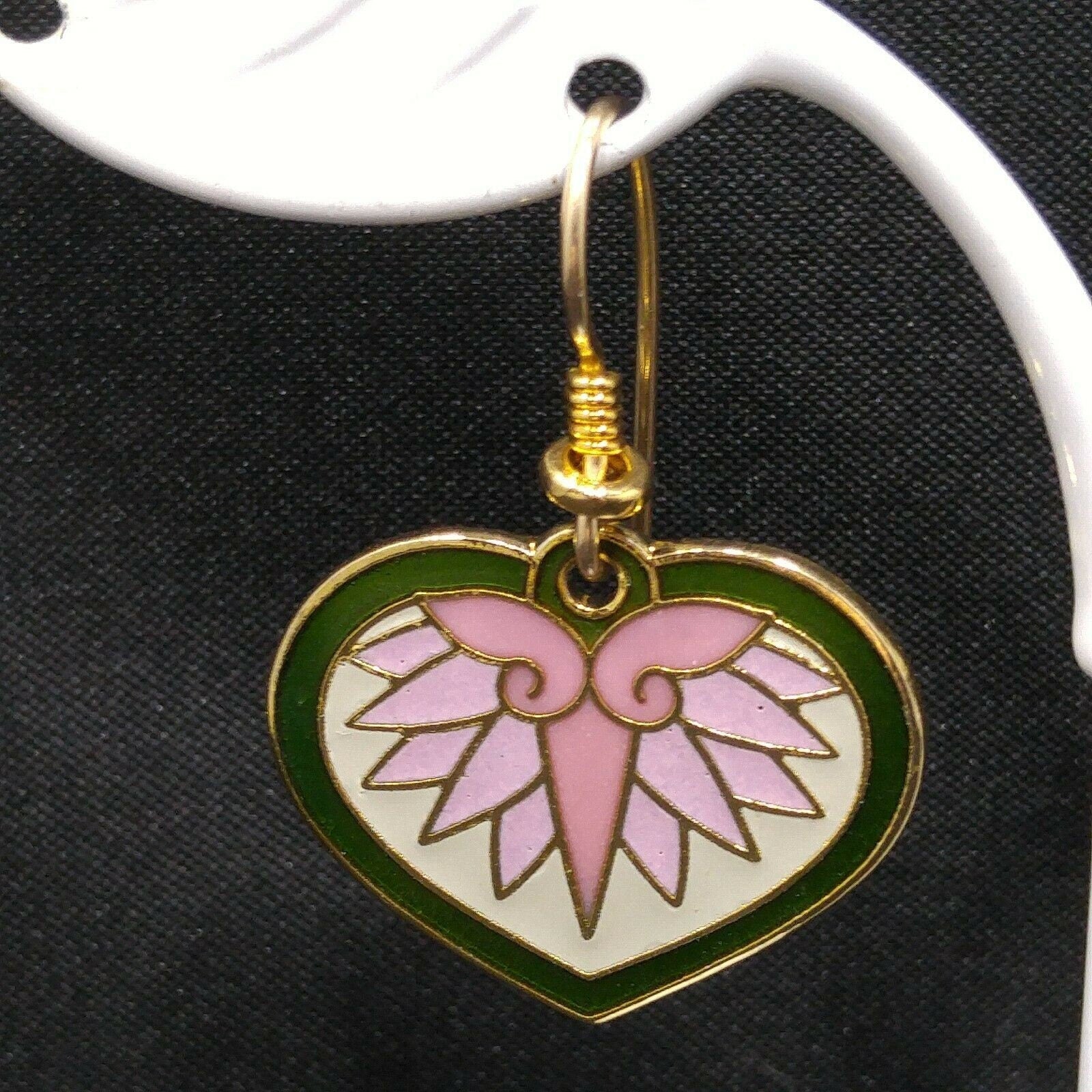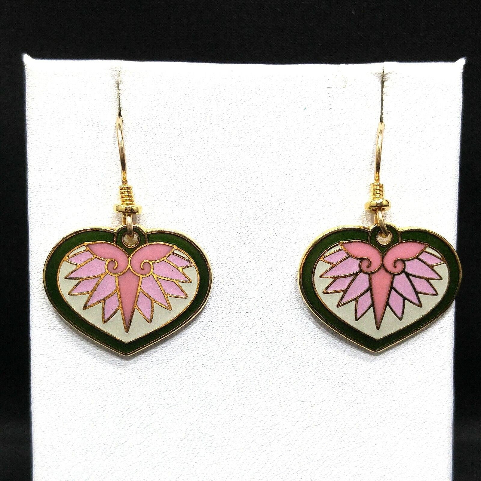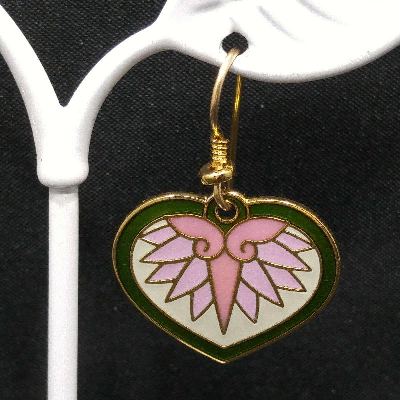 *Description: This is a great pair of Laurel Burch hollyhock design floral earrings in gold plated cloisonne outlines and backing with enamel in shades of pink, green, and white, from the 1980s. This beautiful pair of earrings is a very popular design. The design name is not printed on the back which usually means they are a little older. The enamel and cloisonne design is on a heart shape. The ear wires are gold filled. This would be a great addition to your vintage jewelry collection or make a great vintage gift!