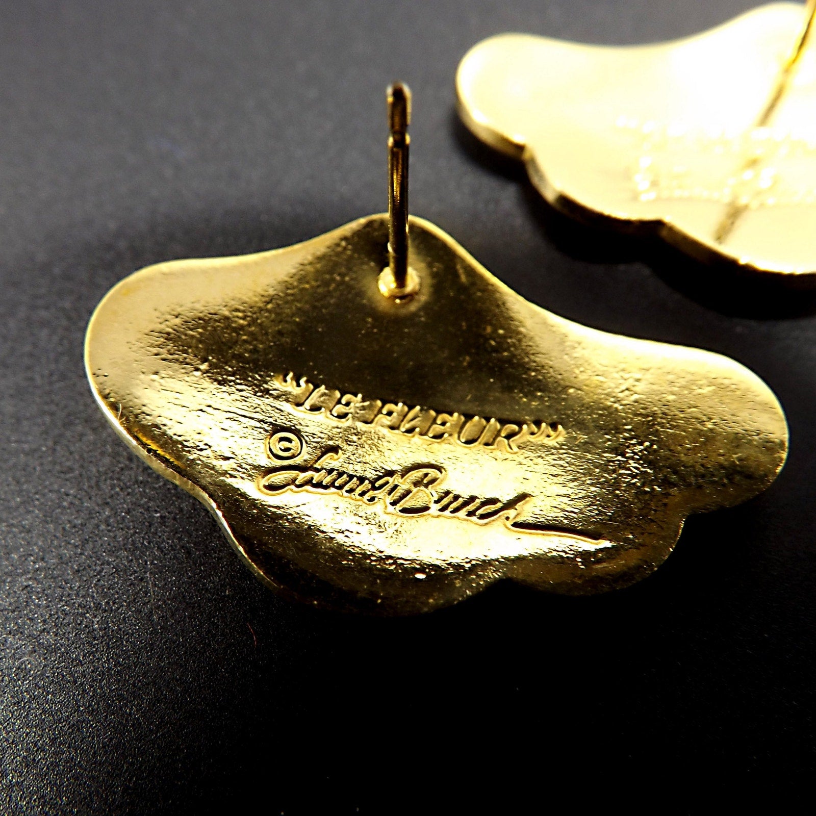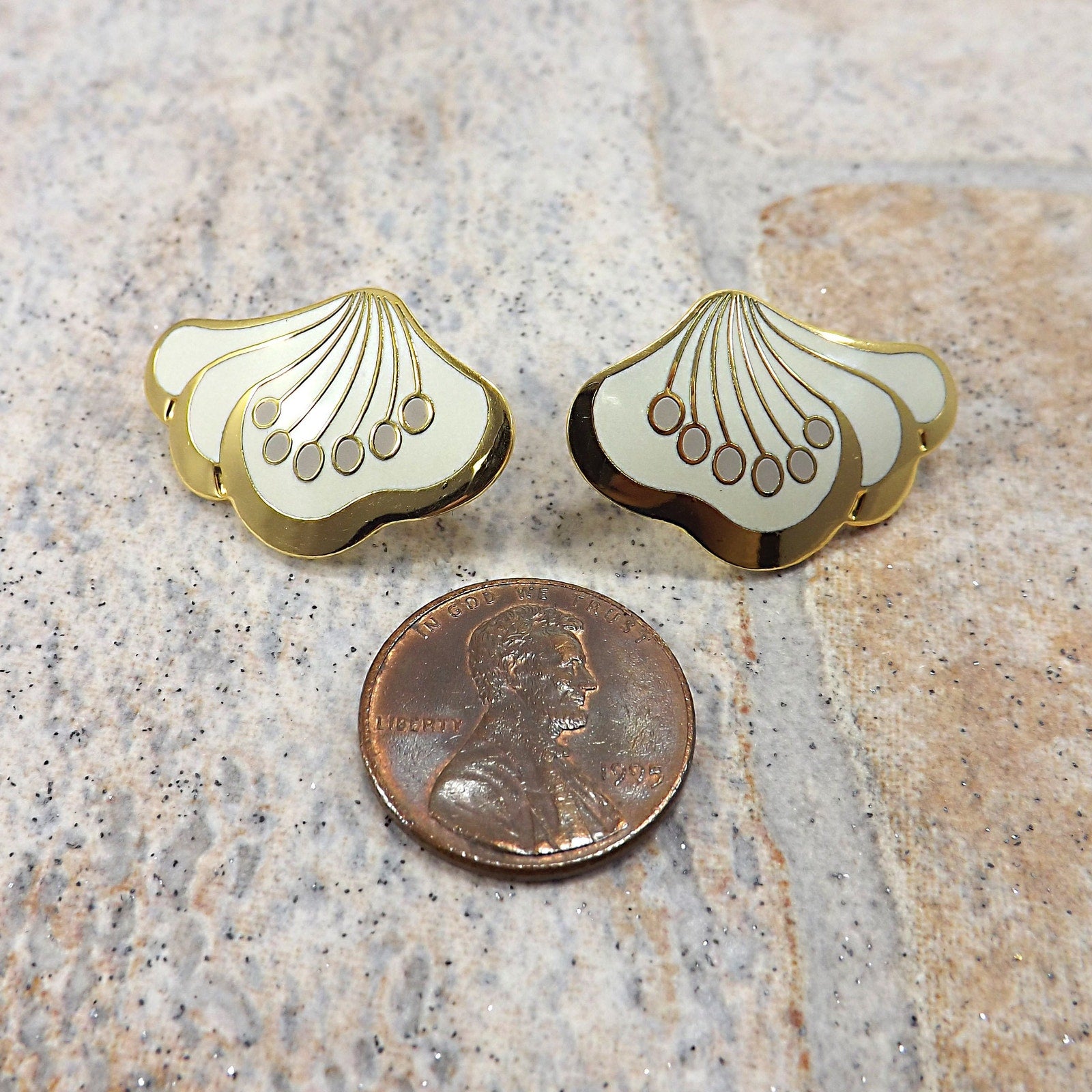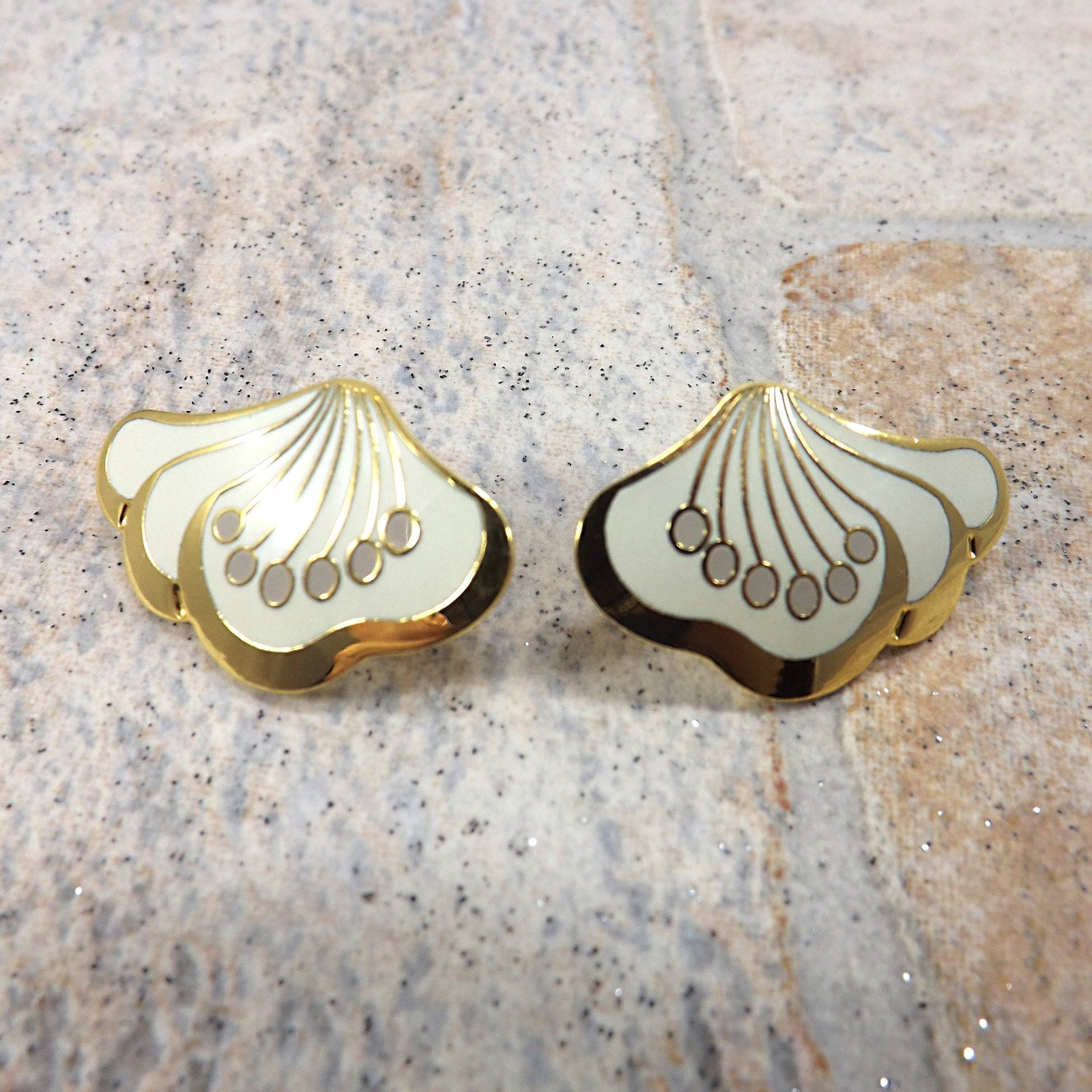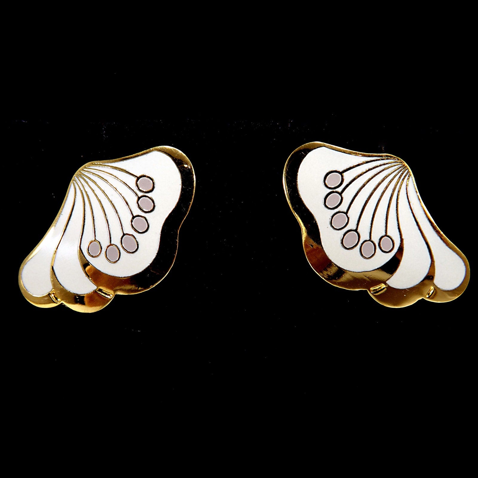 Laurel Burch "Le Fleur" Gold & White Post Earrings, Gold Plated, 1980s Vintage
