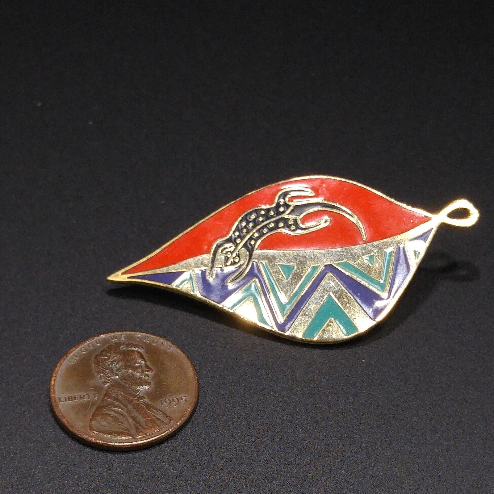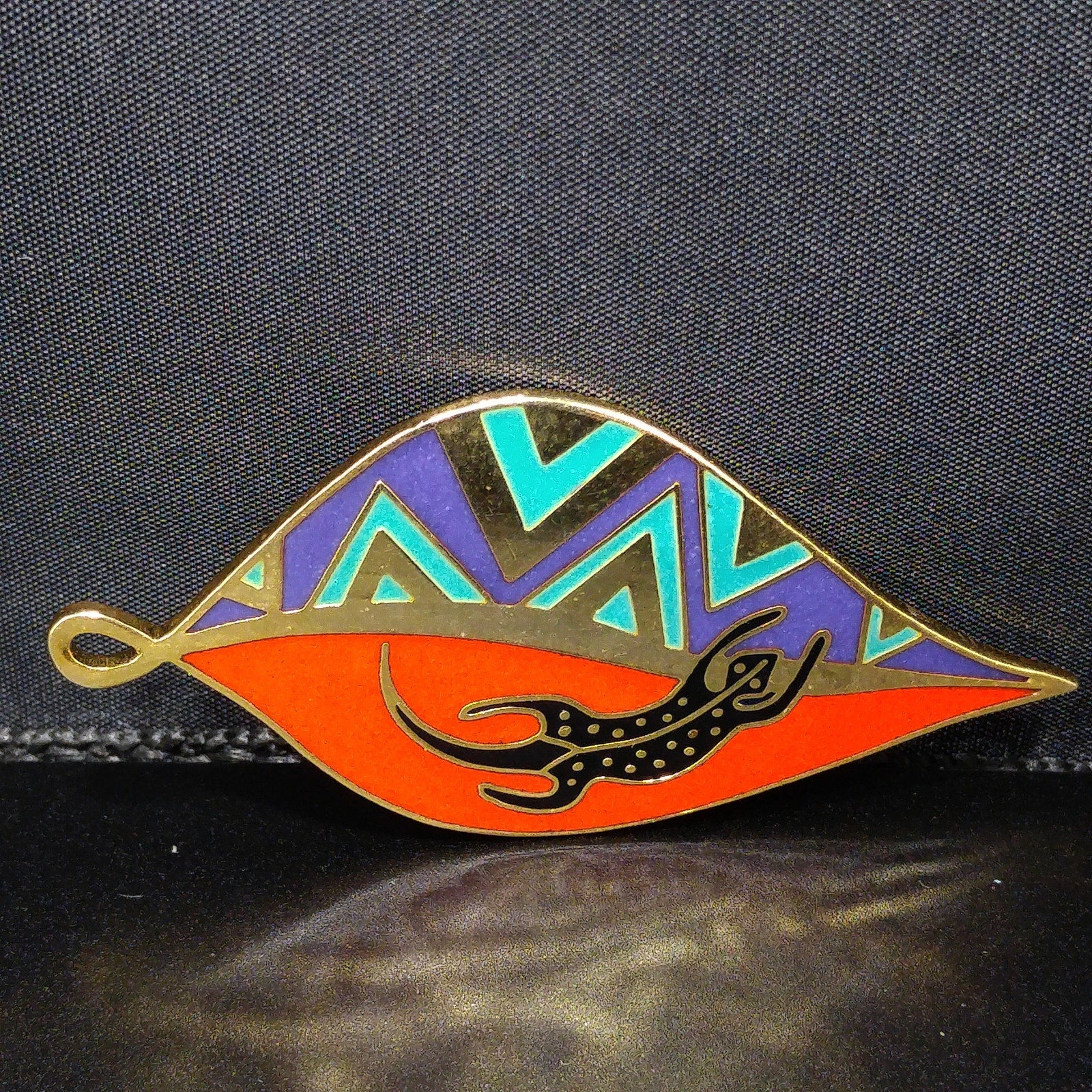 The leaf lizard brooch pendant is a great addition to your Laurel Burch vintage collection. This would be a great addition to your vintage jewelry collection or make a great vintage gift!