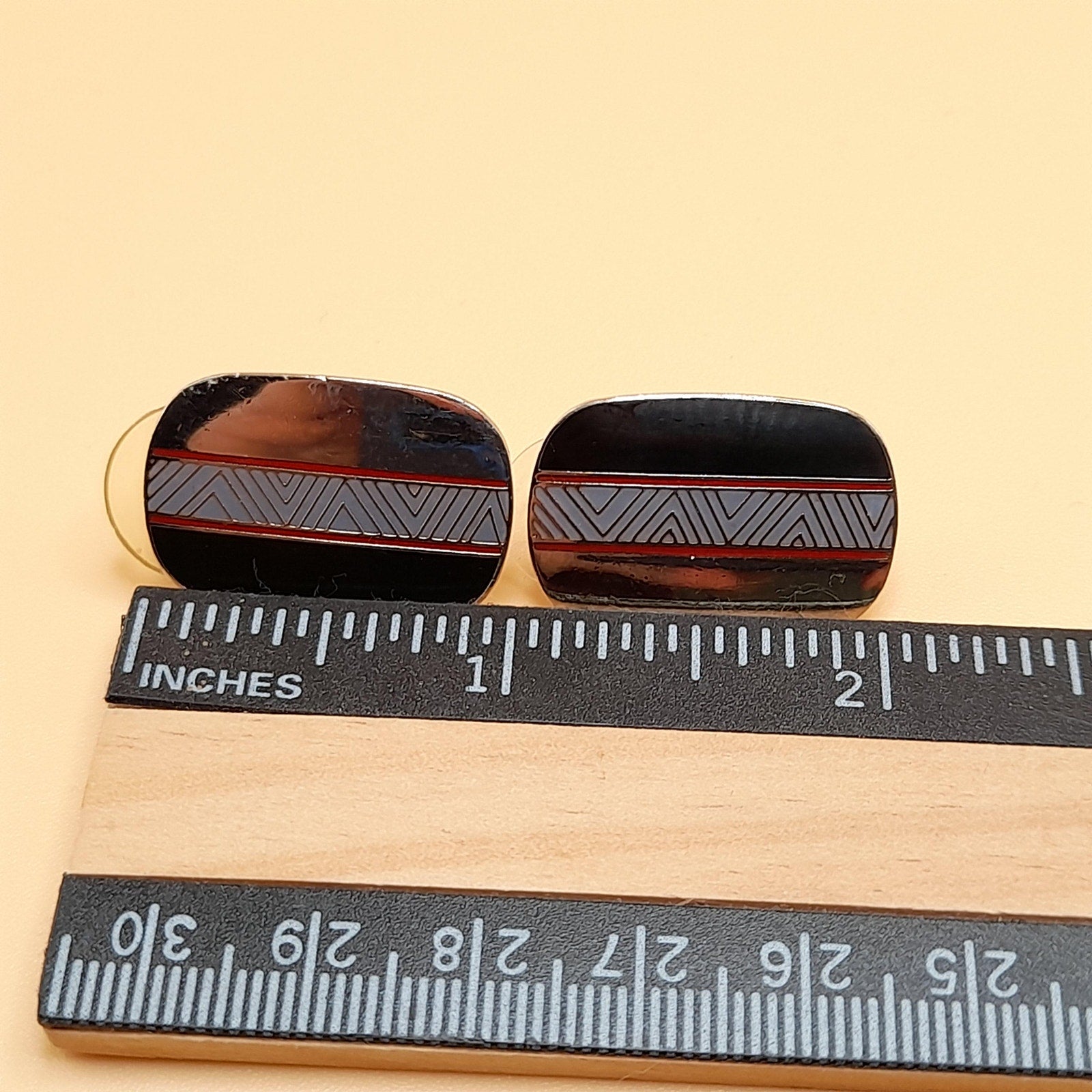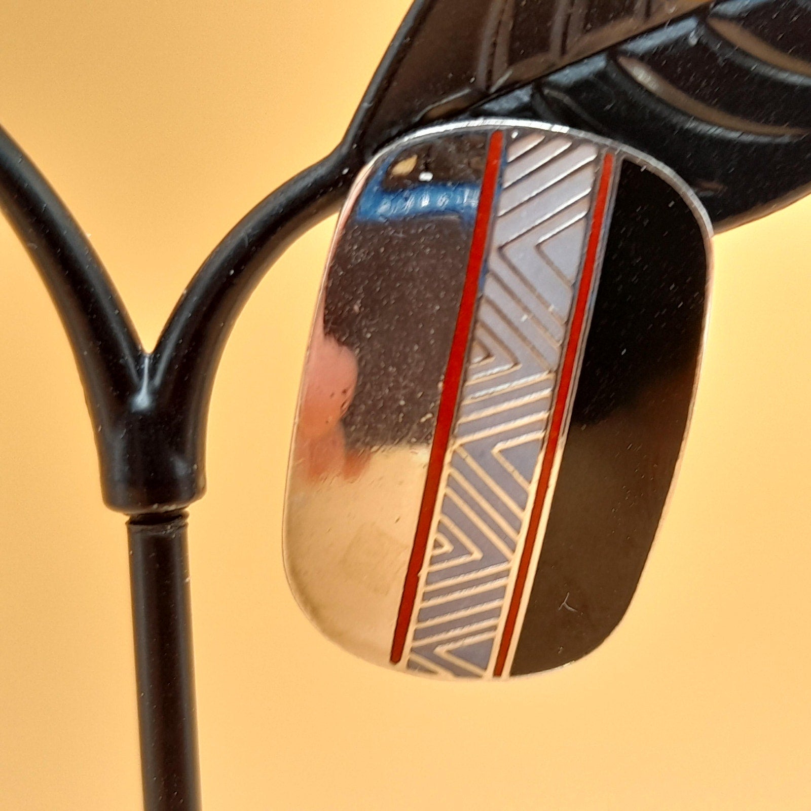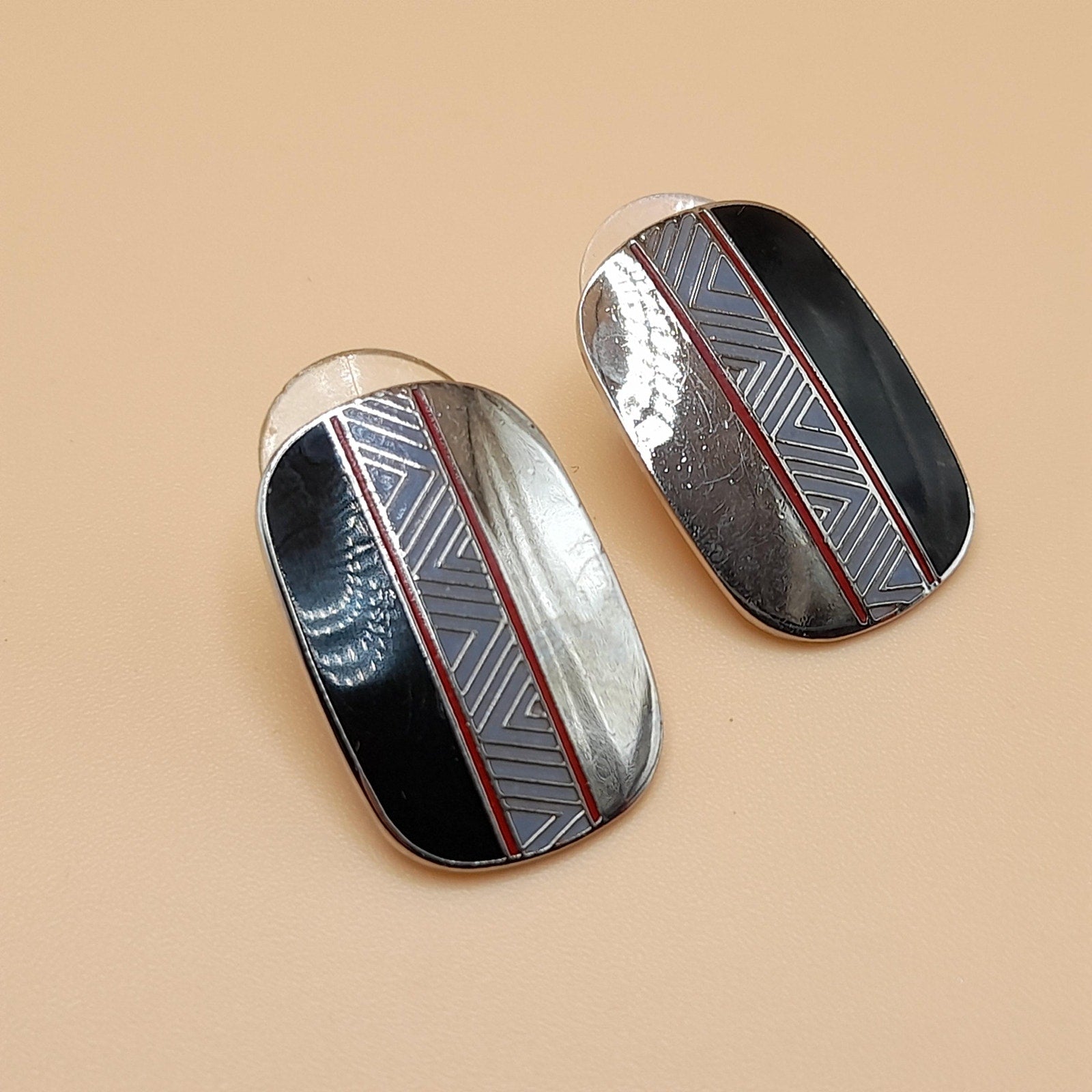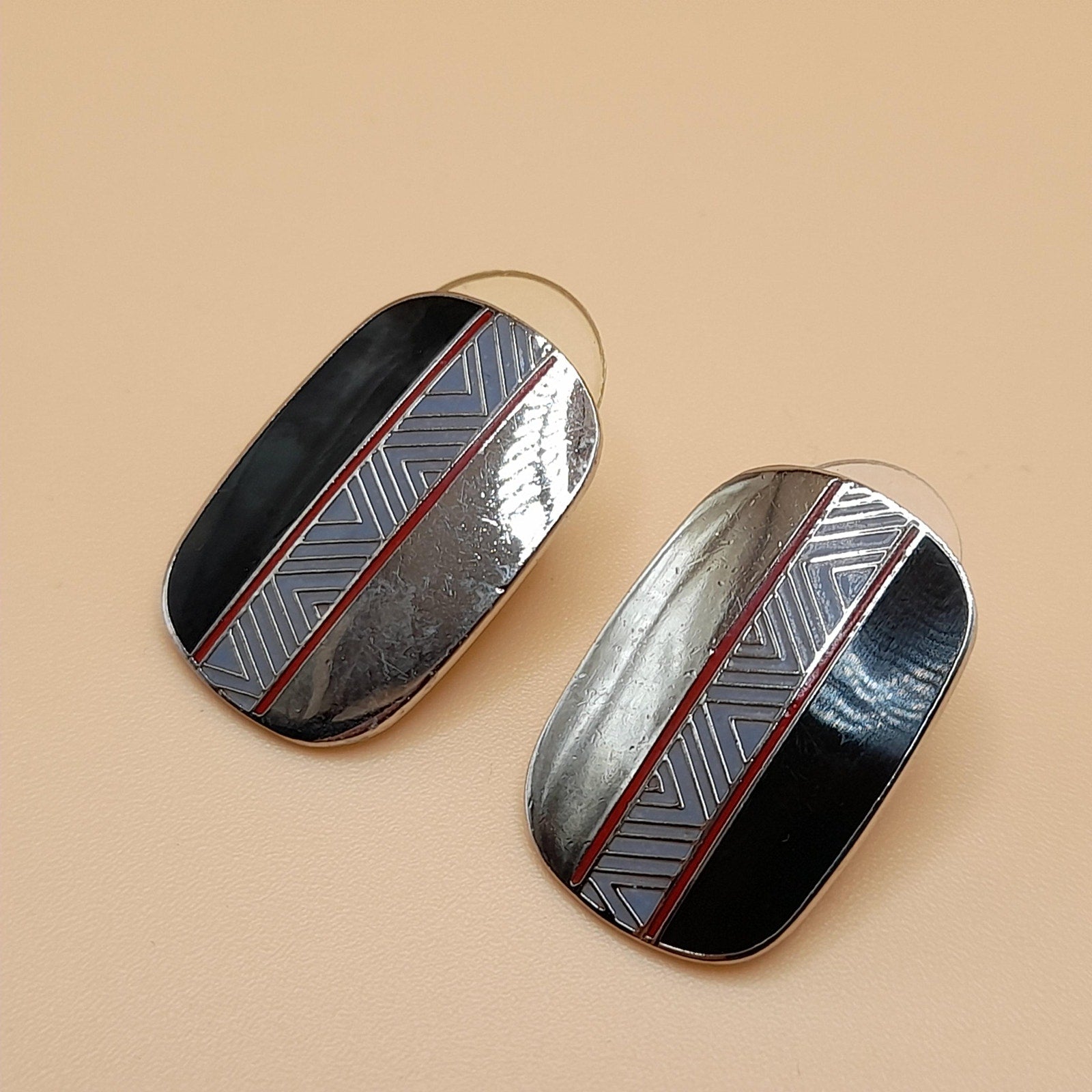 *Description: This is a great pair of vintage post Laurel Burch "Loloma" abstract style earrings with gold plate in silver tone, very reflective, red and black enamel using the cloisonne technique from the 1980s.