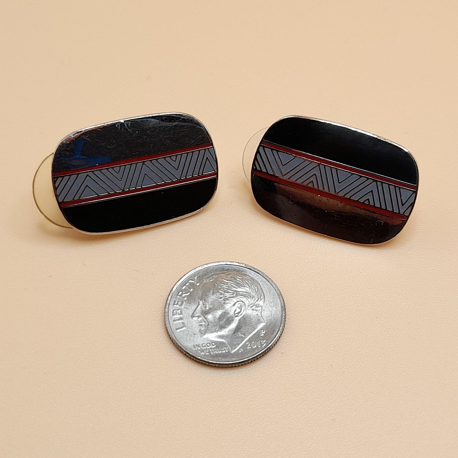 Laurel Burch "Loloma" Post Earrings, Reflective Silver, Red Black Enamel, 1980s