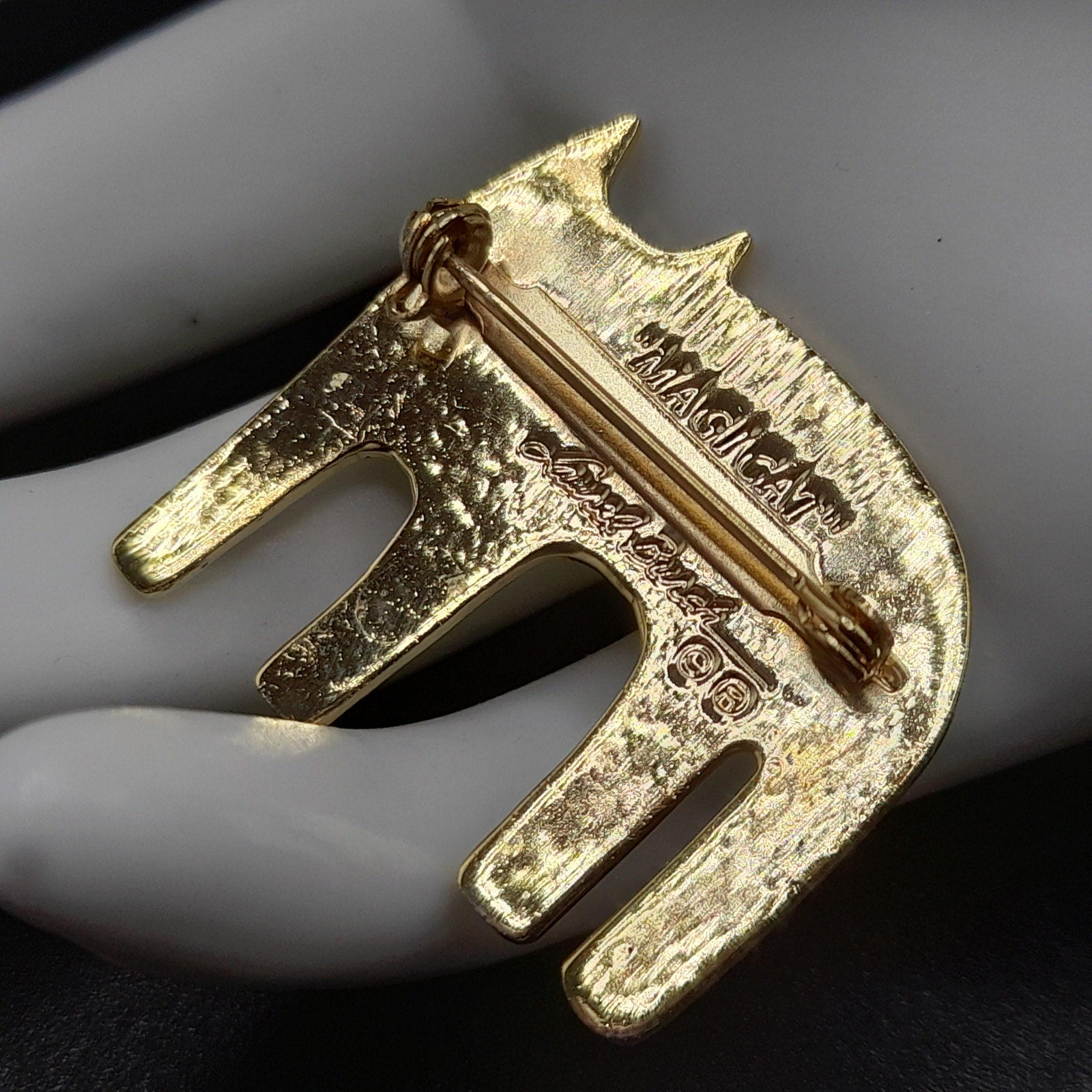 Laurel Burch Magicat Brooch, Black Red Enamel Cloisonne, Gold Plated, 1980s Vintage Jewelry