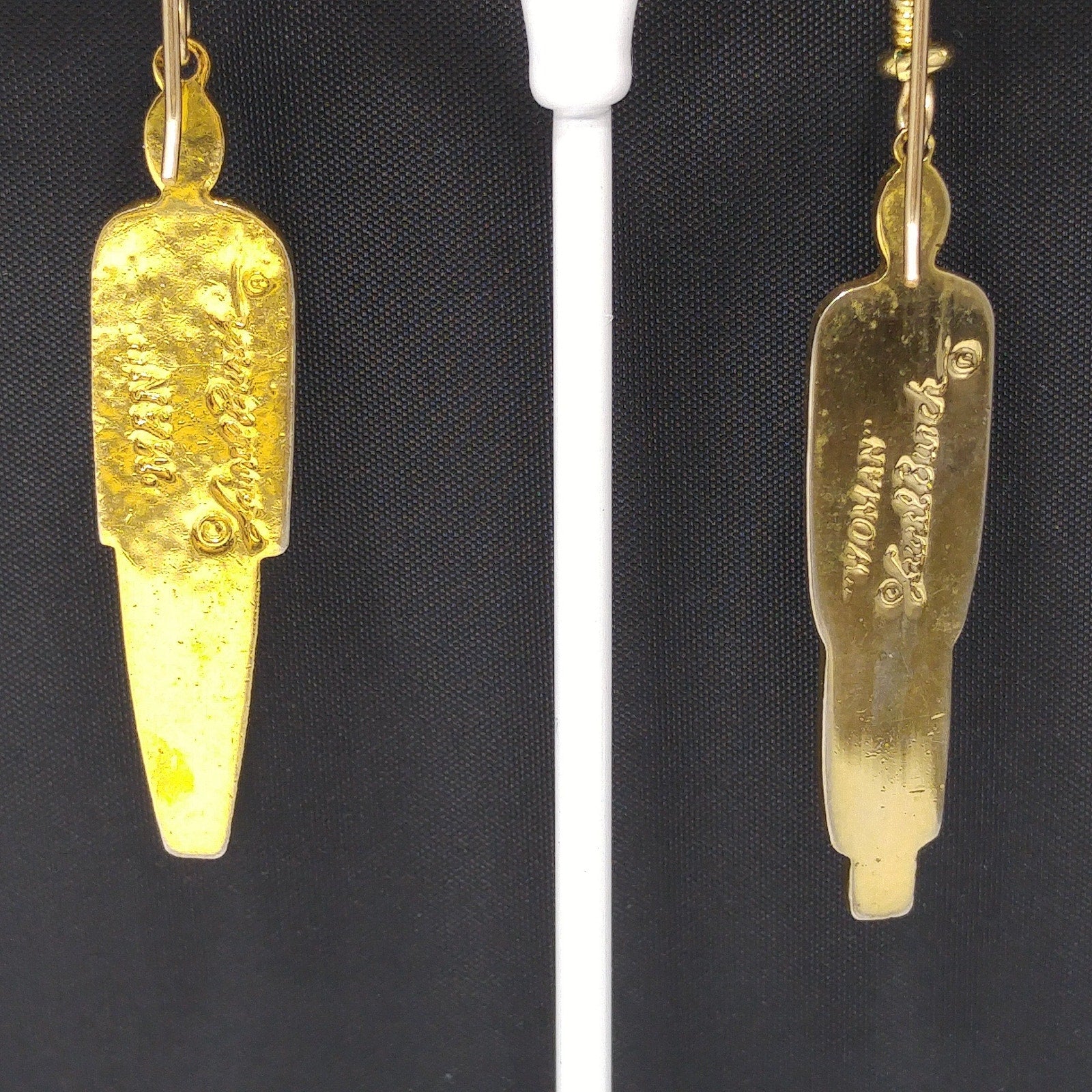Laurel Burch "Man" & "Woman" Tribal Earrings, Gold Plated, 1980s Vintage Jewelry