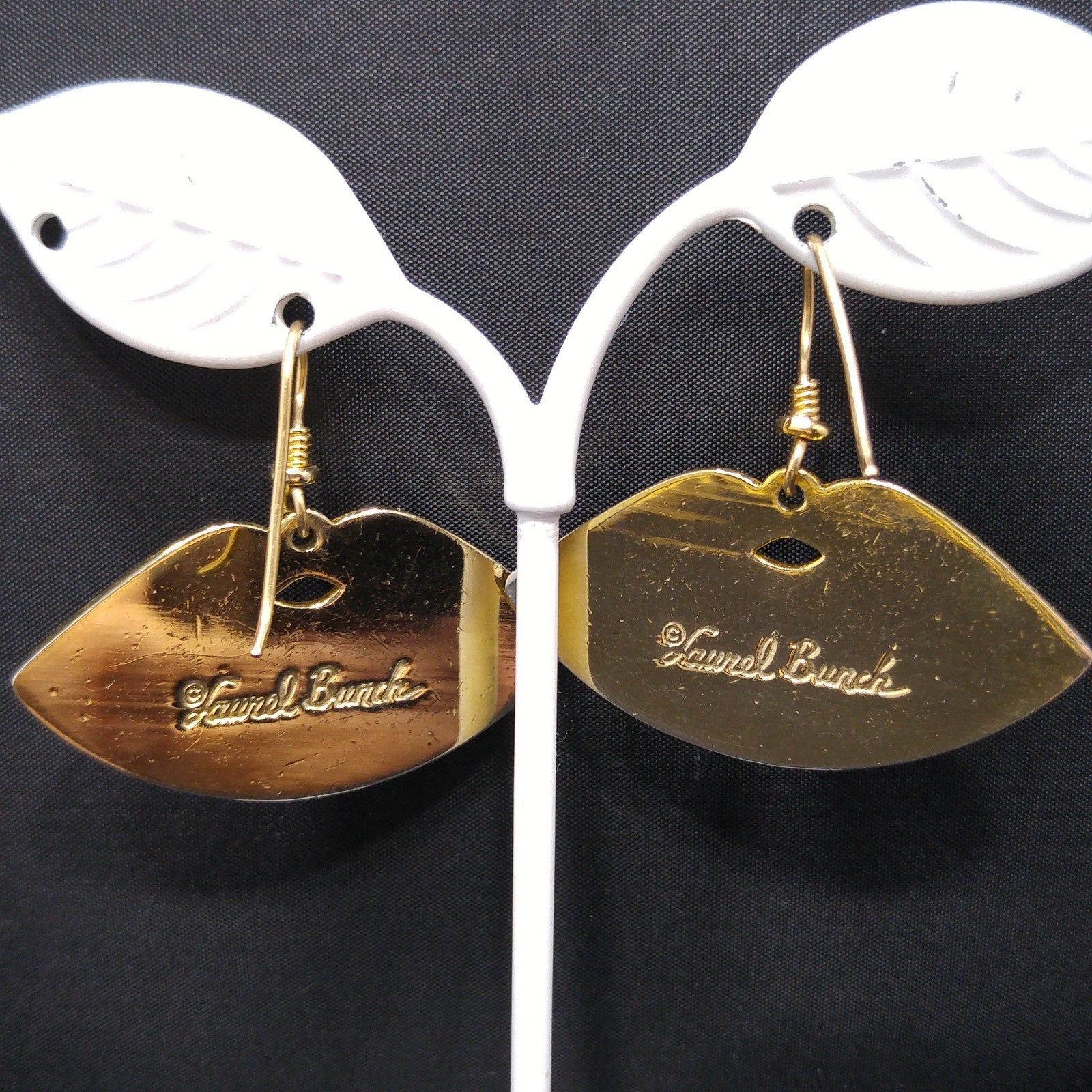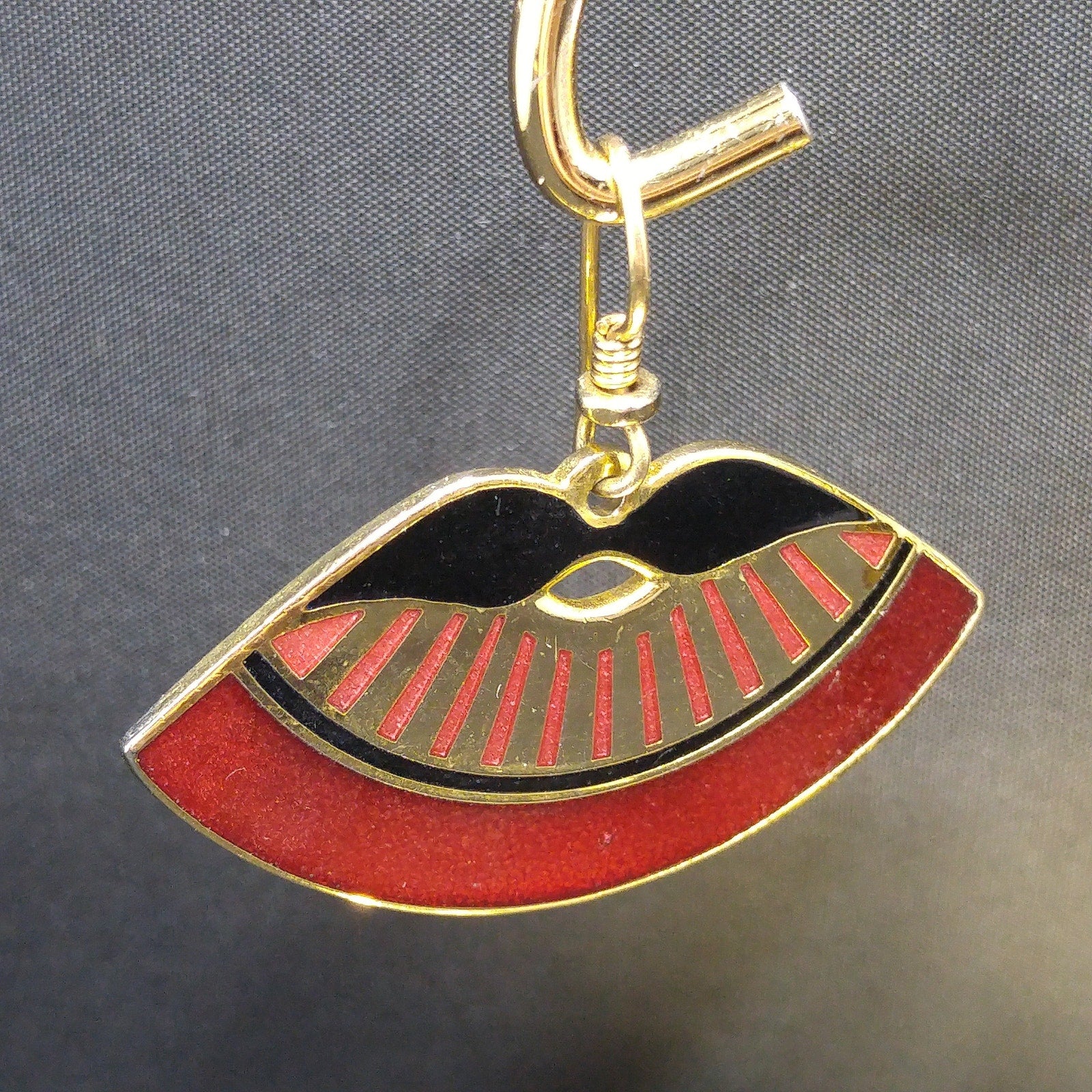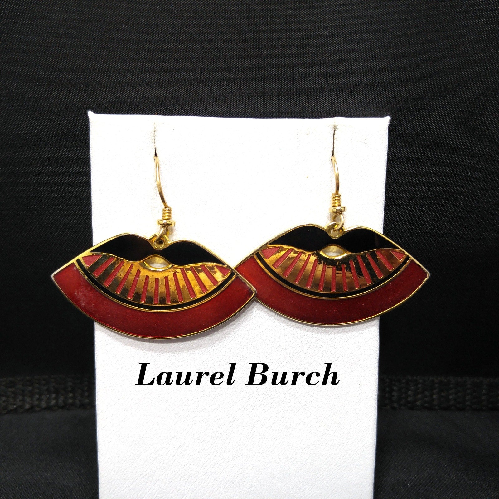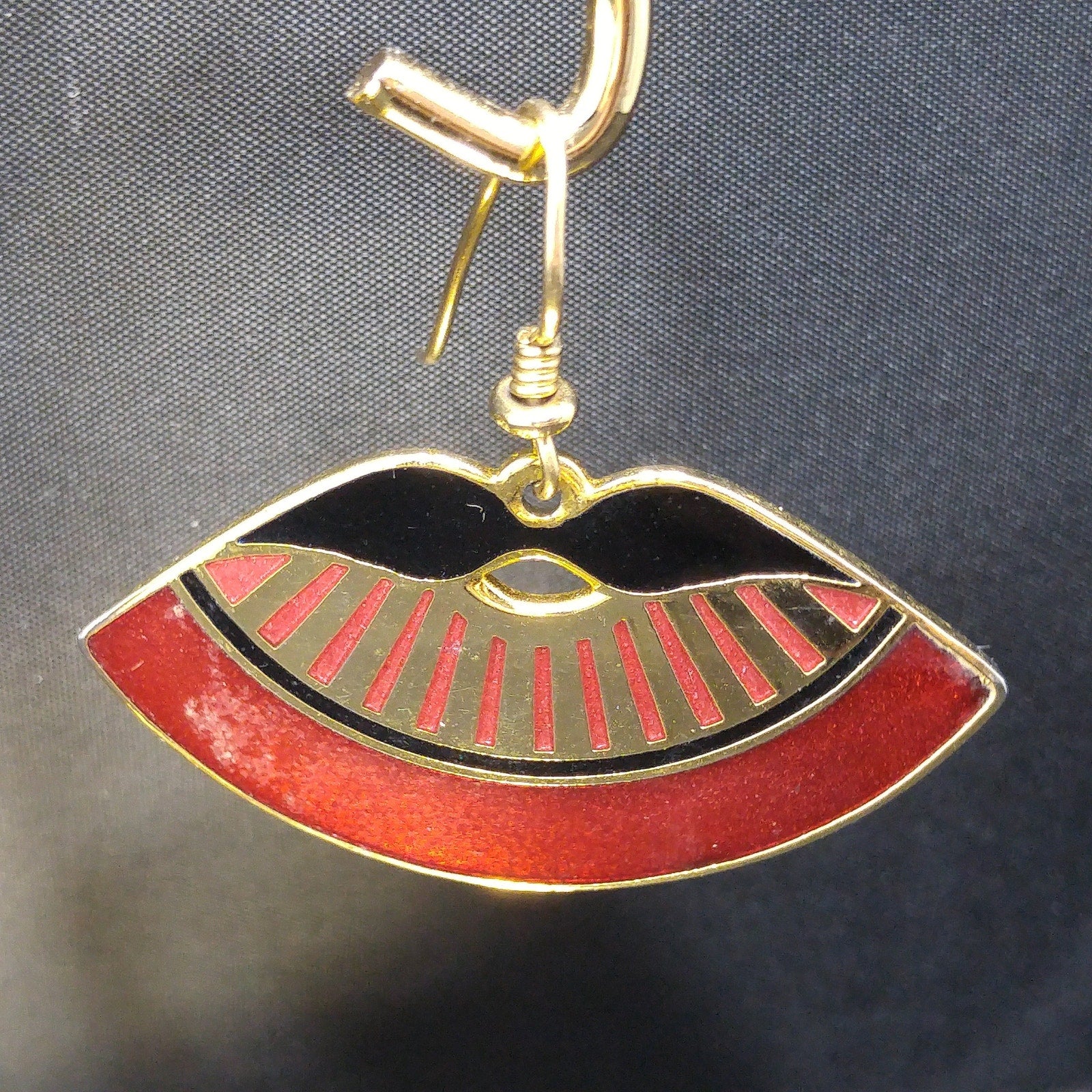 *Description: This is a great pair of large Laurel Burch cloisonne enamel earrings in metallic red and black with gold plated outlines and backing from the 1980s. The earrings are on gold filled ear wires. The black enamel at the top is shaped like a mustache. This would be a great addition to your vintage jewelry collection or make a great vintage gift!