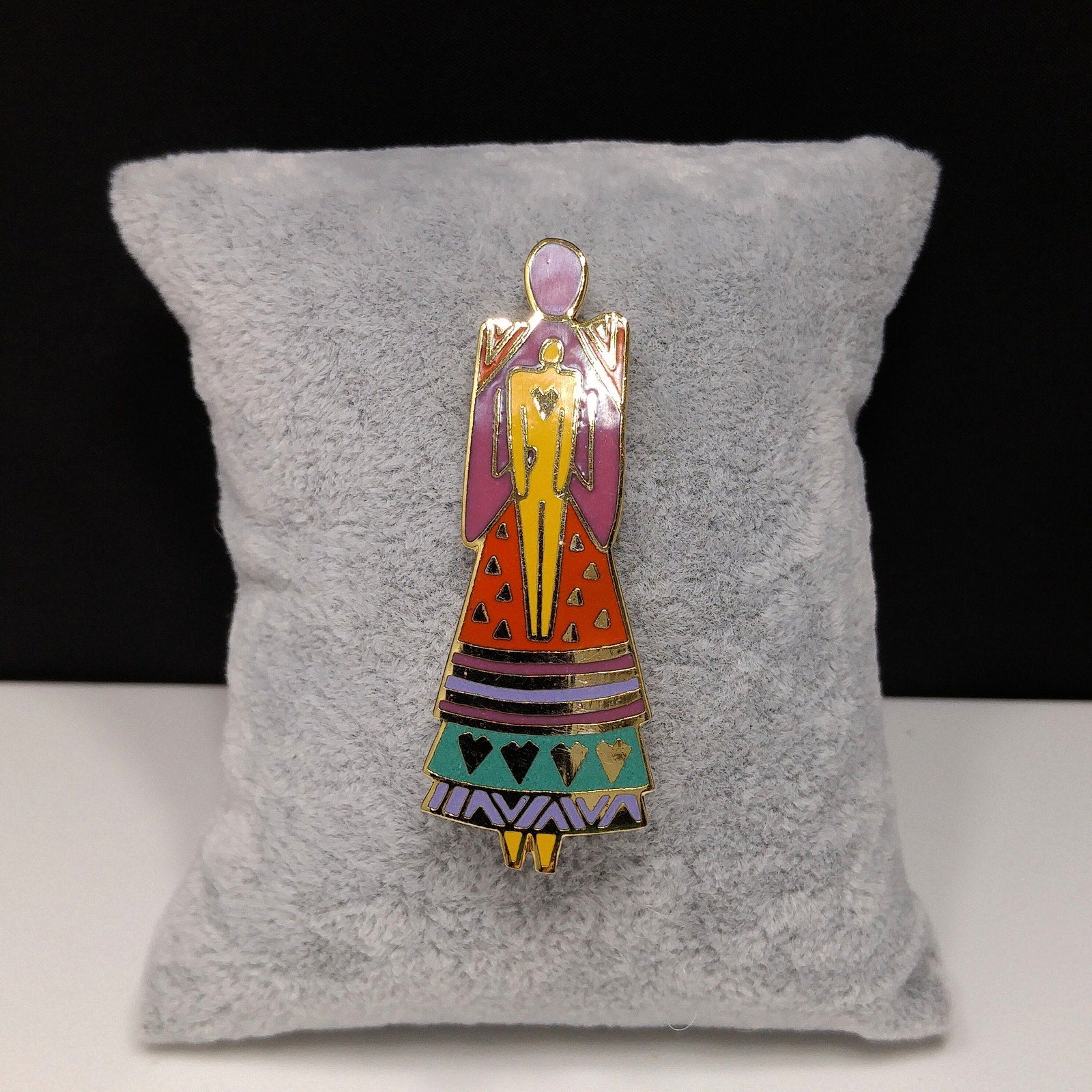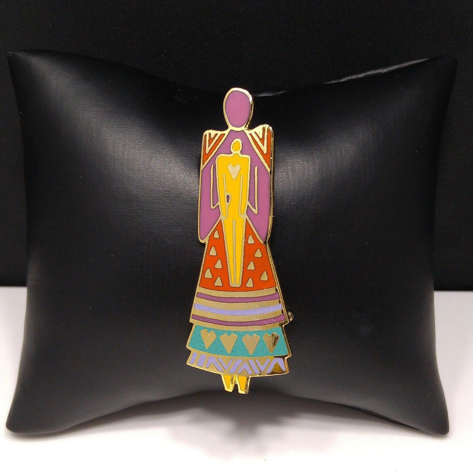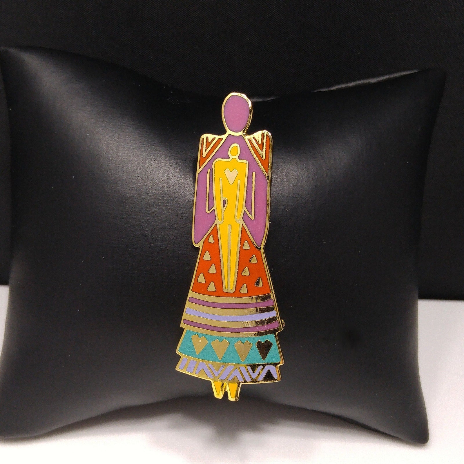 *Description: This is a great Laurel Burch cloisonné gold plated brooch with enamel in pink, lavender, orange, red, purple, and teal green entitled "Mother and Child" from the 1980s. Perfect gift for new mother or a great gift for your mom. This brooch represents the special relationship between mother and child. This would be a great addition to your vintage jewelry collection or make a great vintage gift!