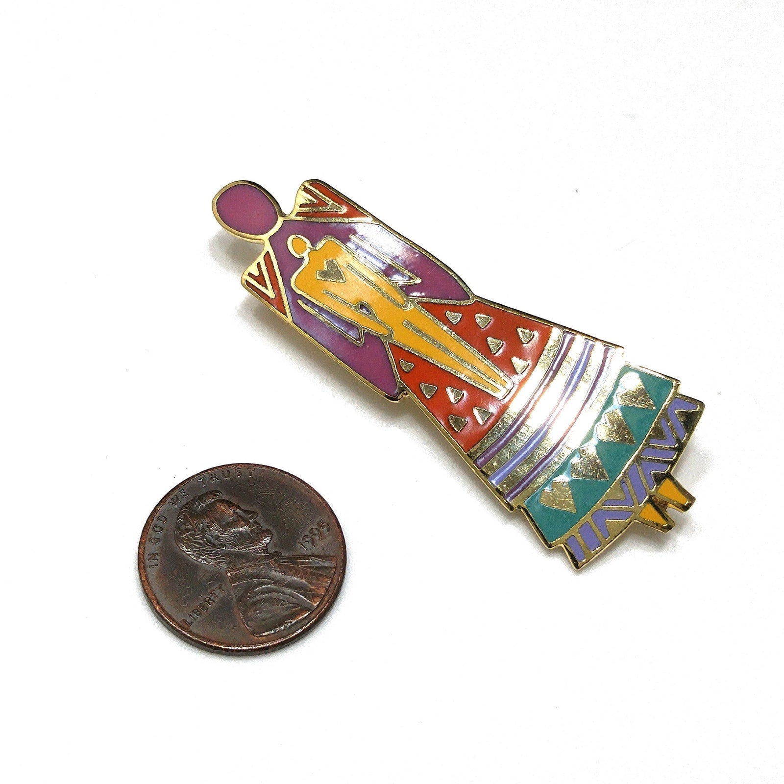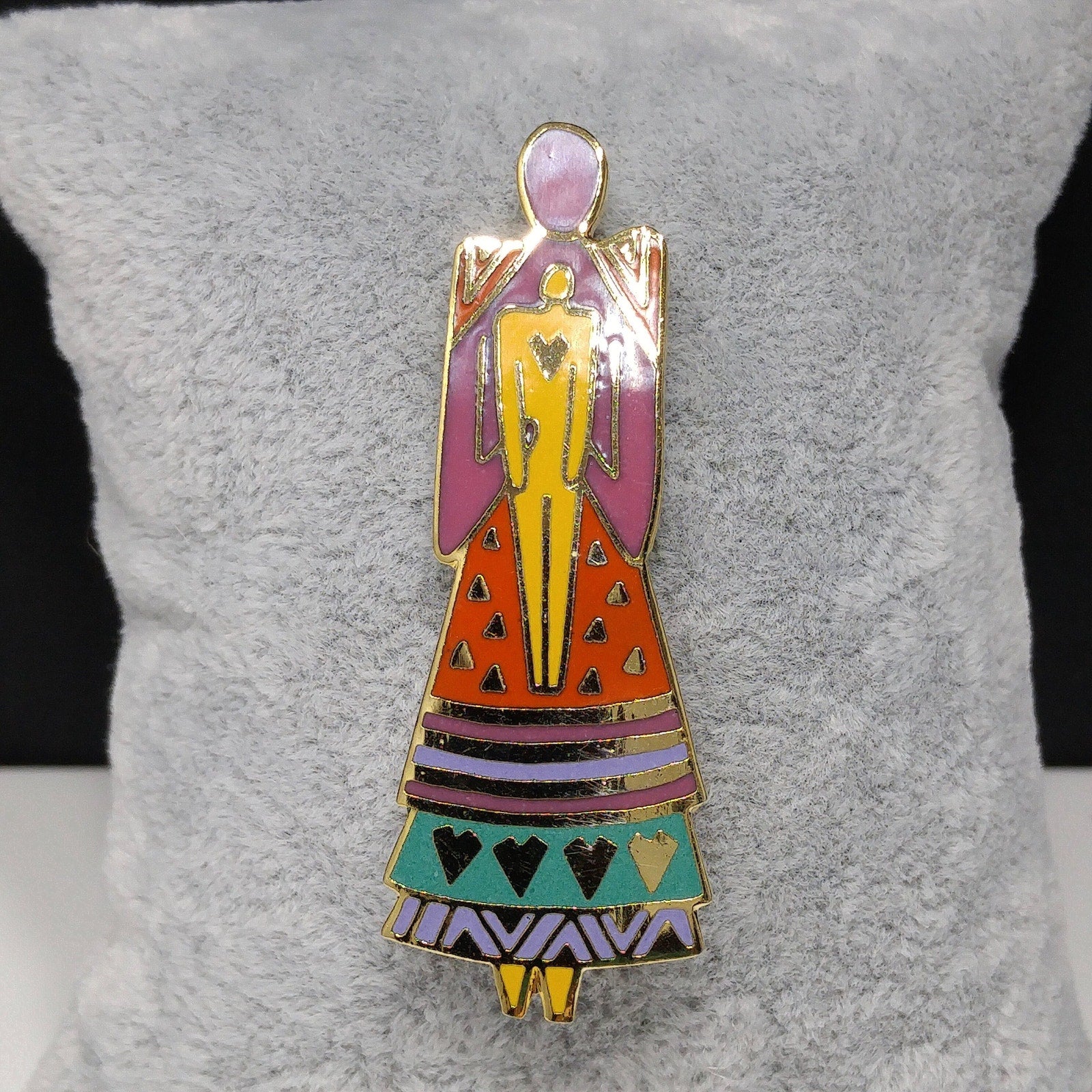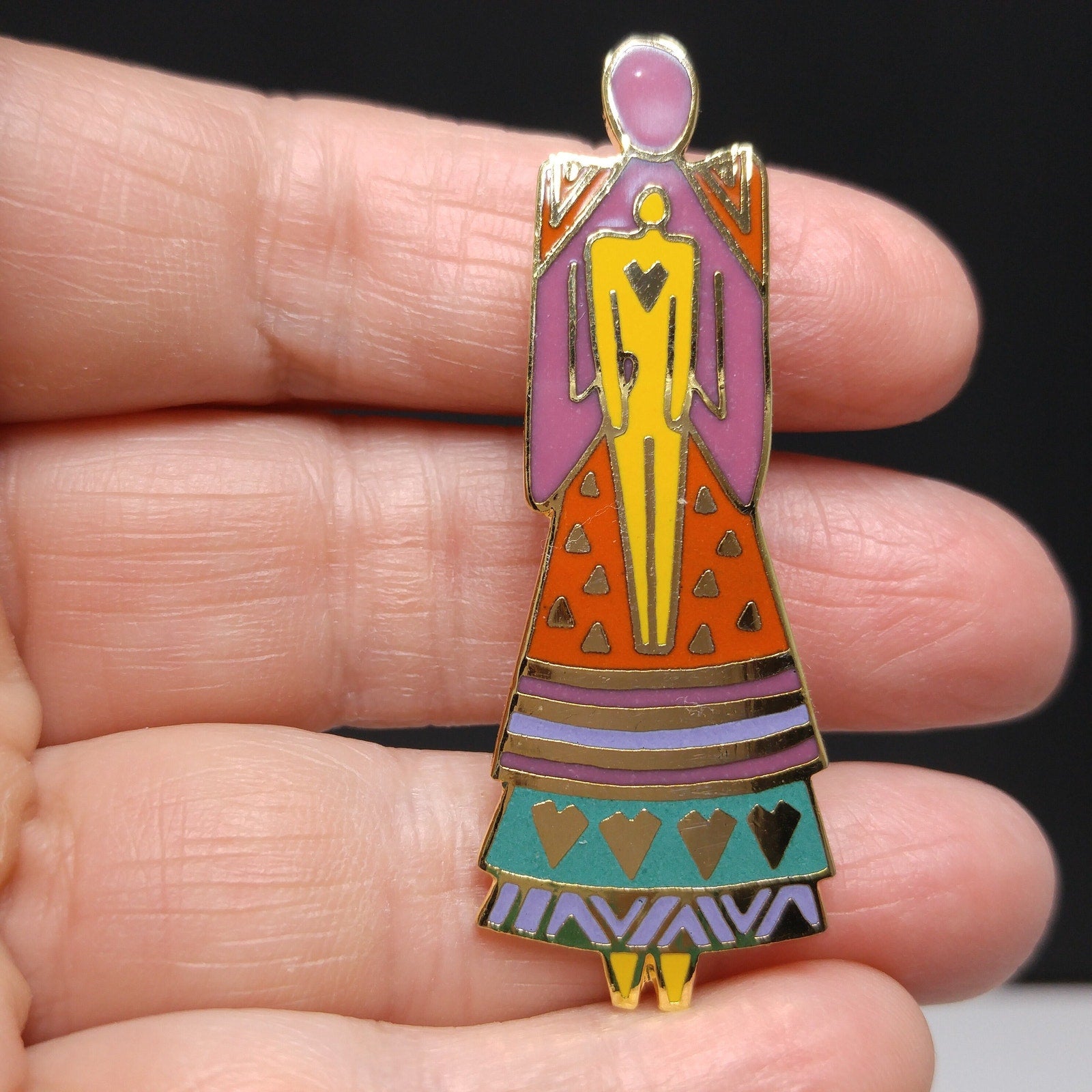 *Description: This is a great Laurel Burch cloisonné gold plated brooch with enamel in pink, lavender, orange, red, purple, and teal green entitled "Mother and Child" from the 1980s. Perfect gift for new mother or a great gift for your mom. This brooch represents the special relationship between mother and child. This would be a great addition to your vintage jewelry collection or make a great vintage gift!