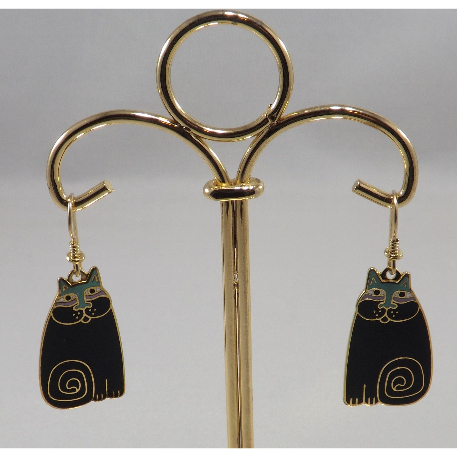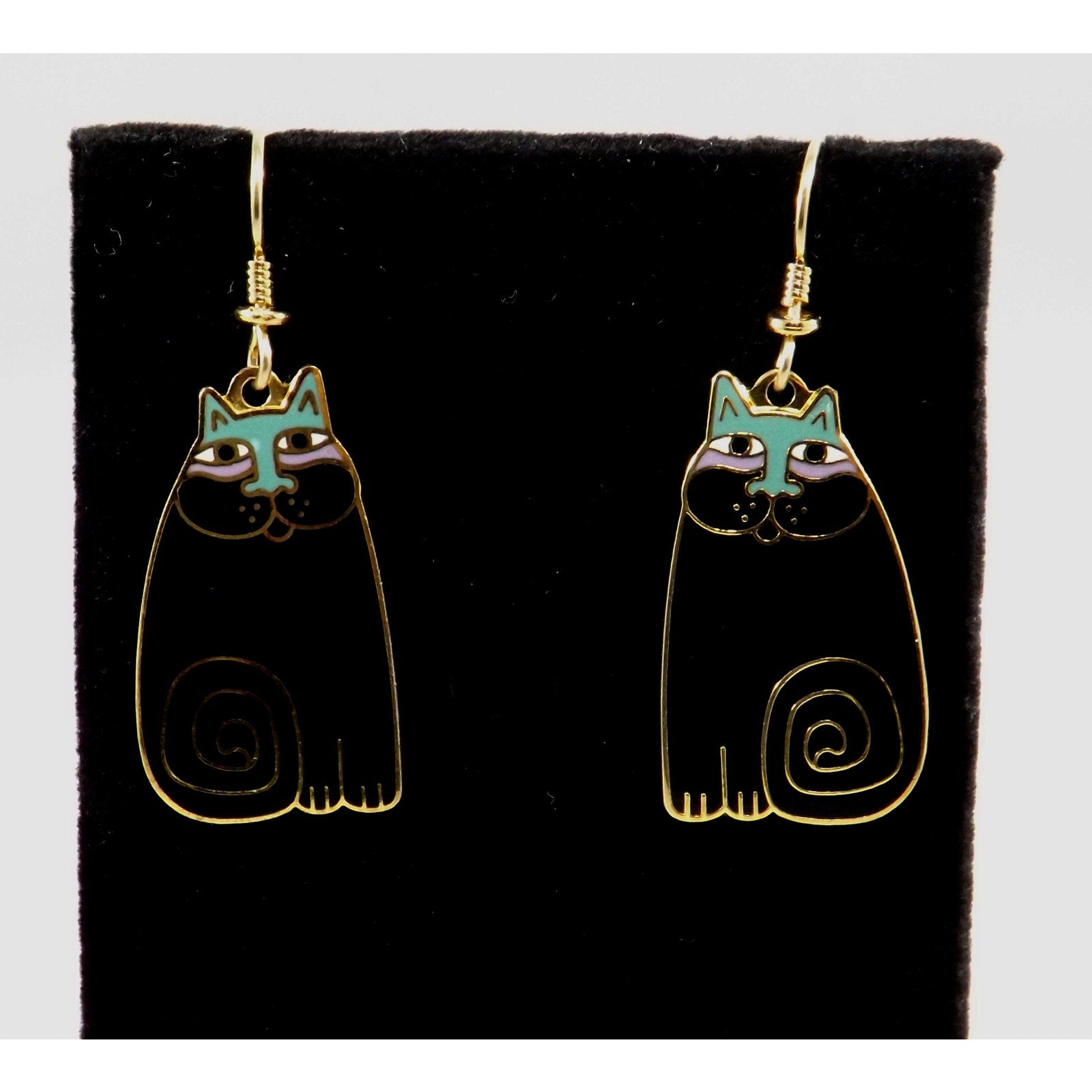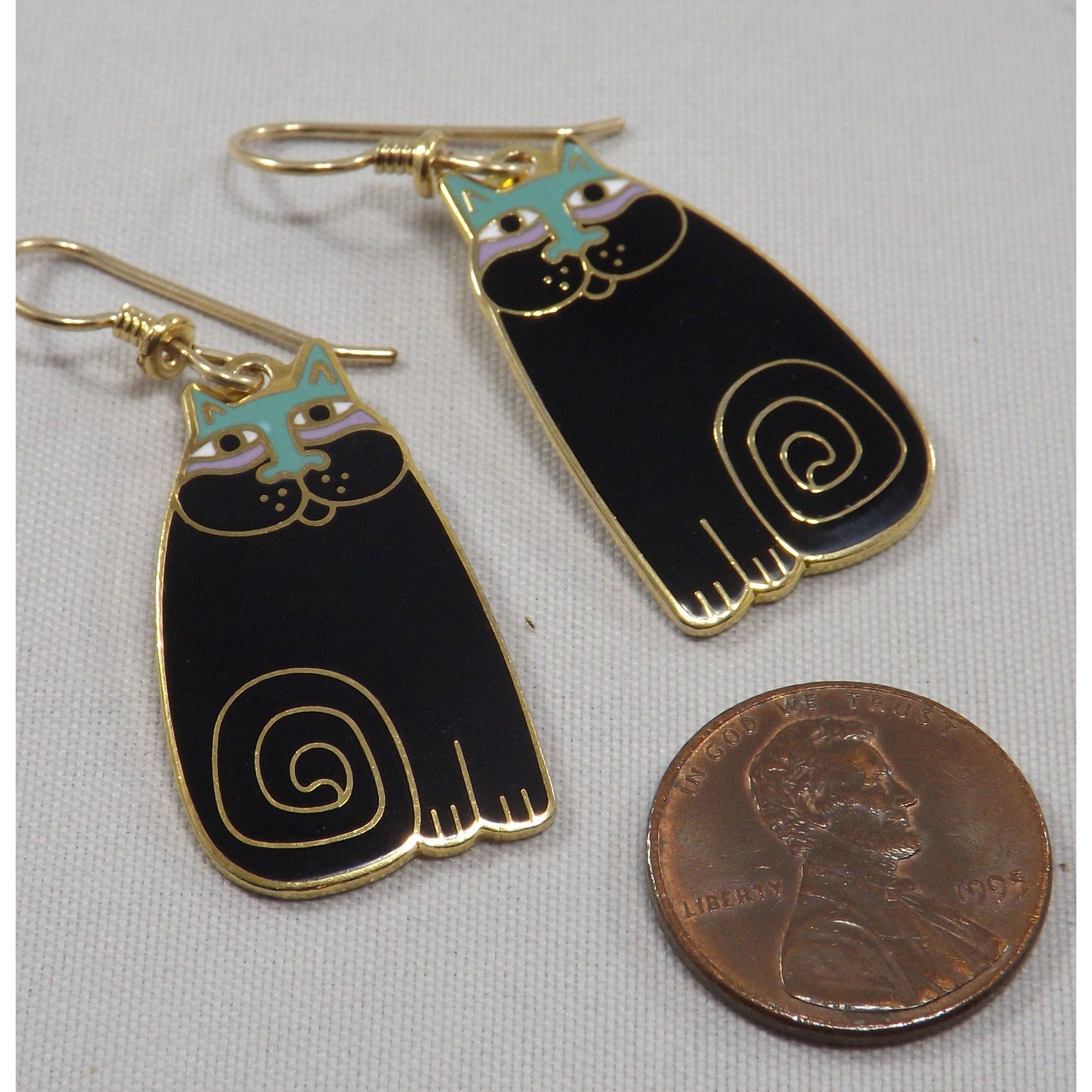 *Description: This is a pair of beautiful black cloisonne enamel cat earrings by fabulous artist Laurel Burch from the 1980s. This pair of earrings has the black cats with a teal cheeked face. The ear wires are gold filled. The earrings are in wonderful condition. They would make a wonderful gift or a great addition to your Laurel Burch collection.