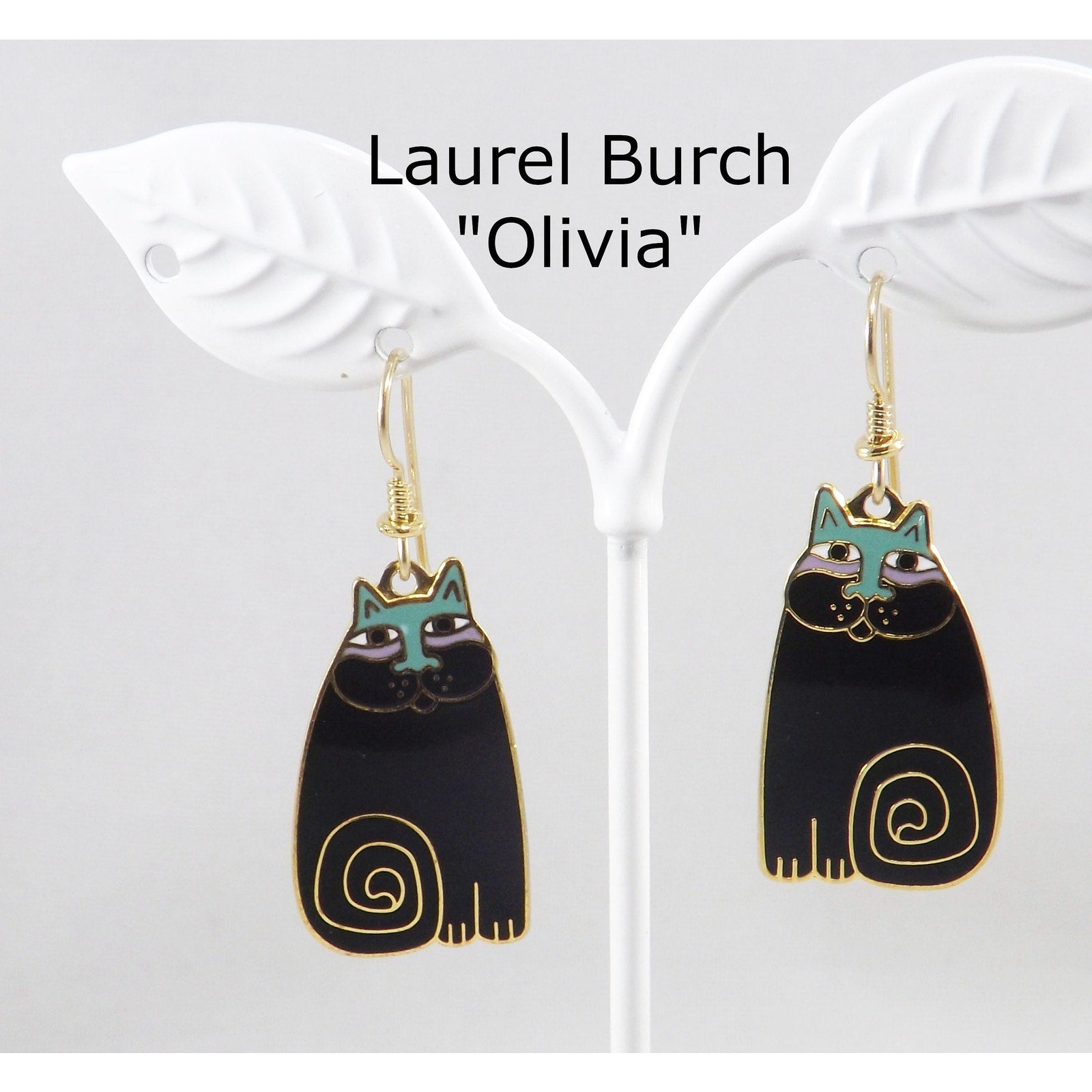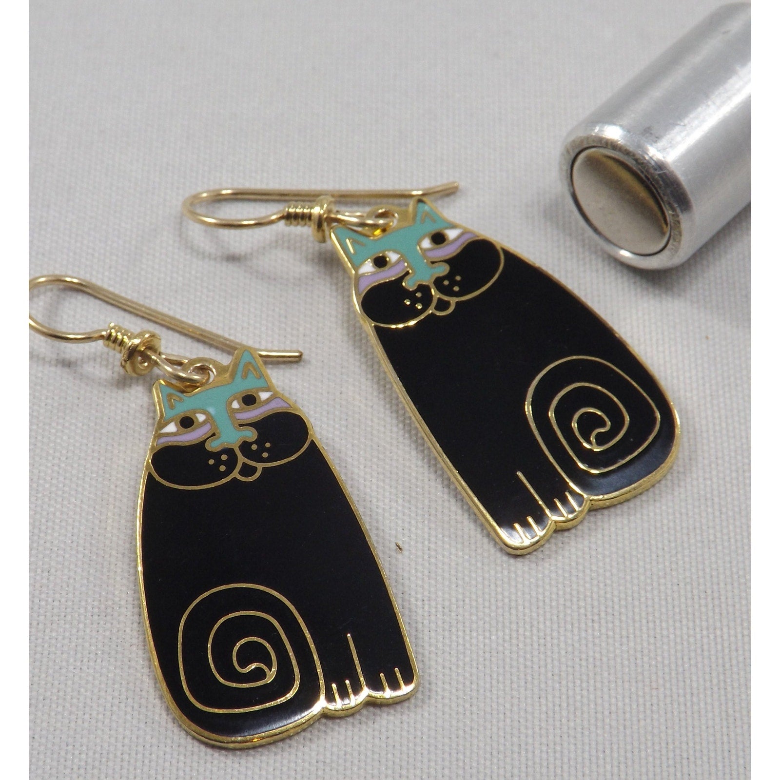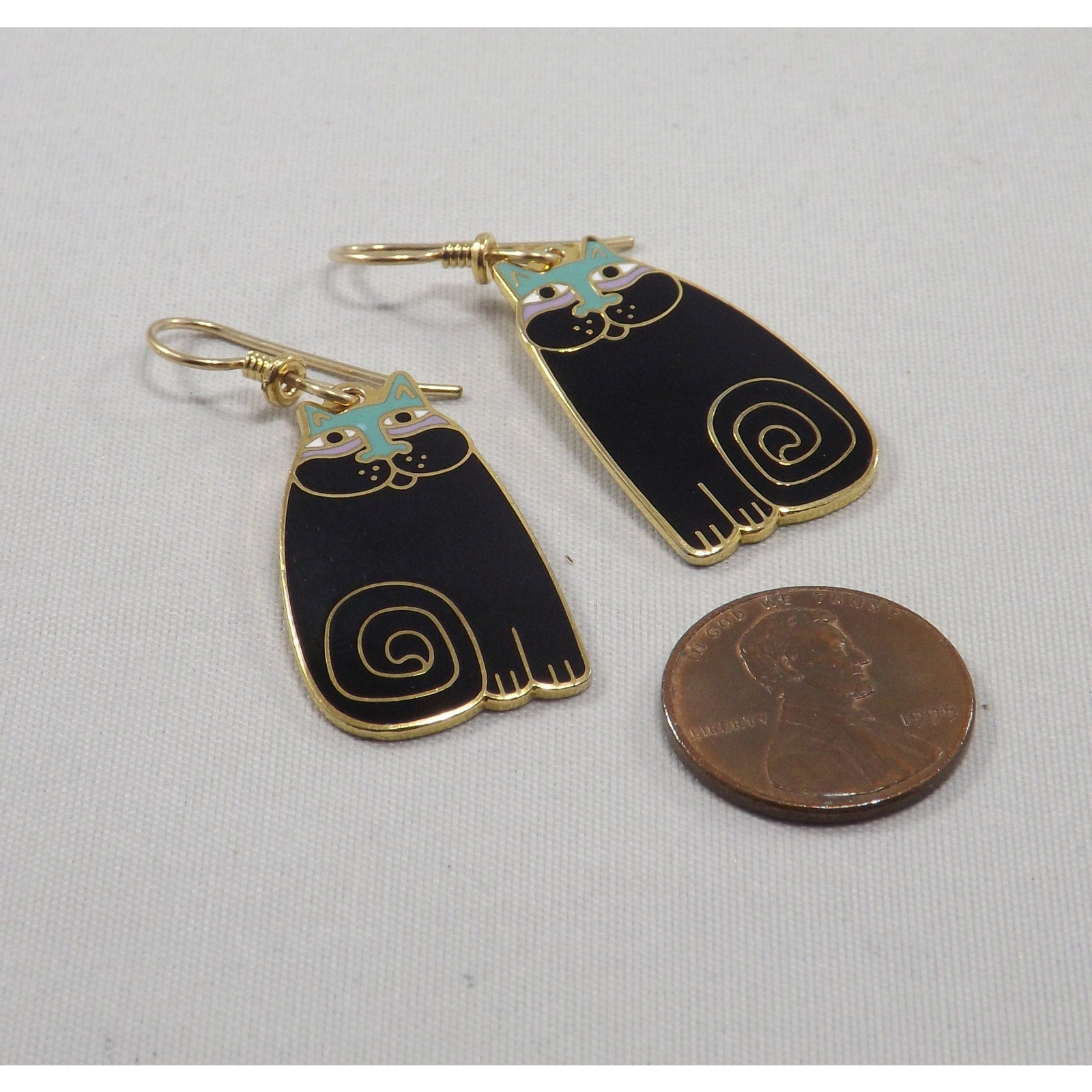 *Description: This is a pair of beautiful black cloisonne enamel cat earrings by fabulous artist Laurel Burch from the 1980s. This pair of earrings has the black cats with a teal cheeked face. The ear wires are gold filled. The earrings are in wonderful condition. They would make a wonderful gift or a great addition to your Laurel Burch collection.
