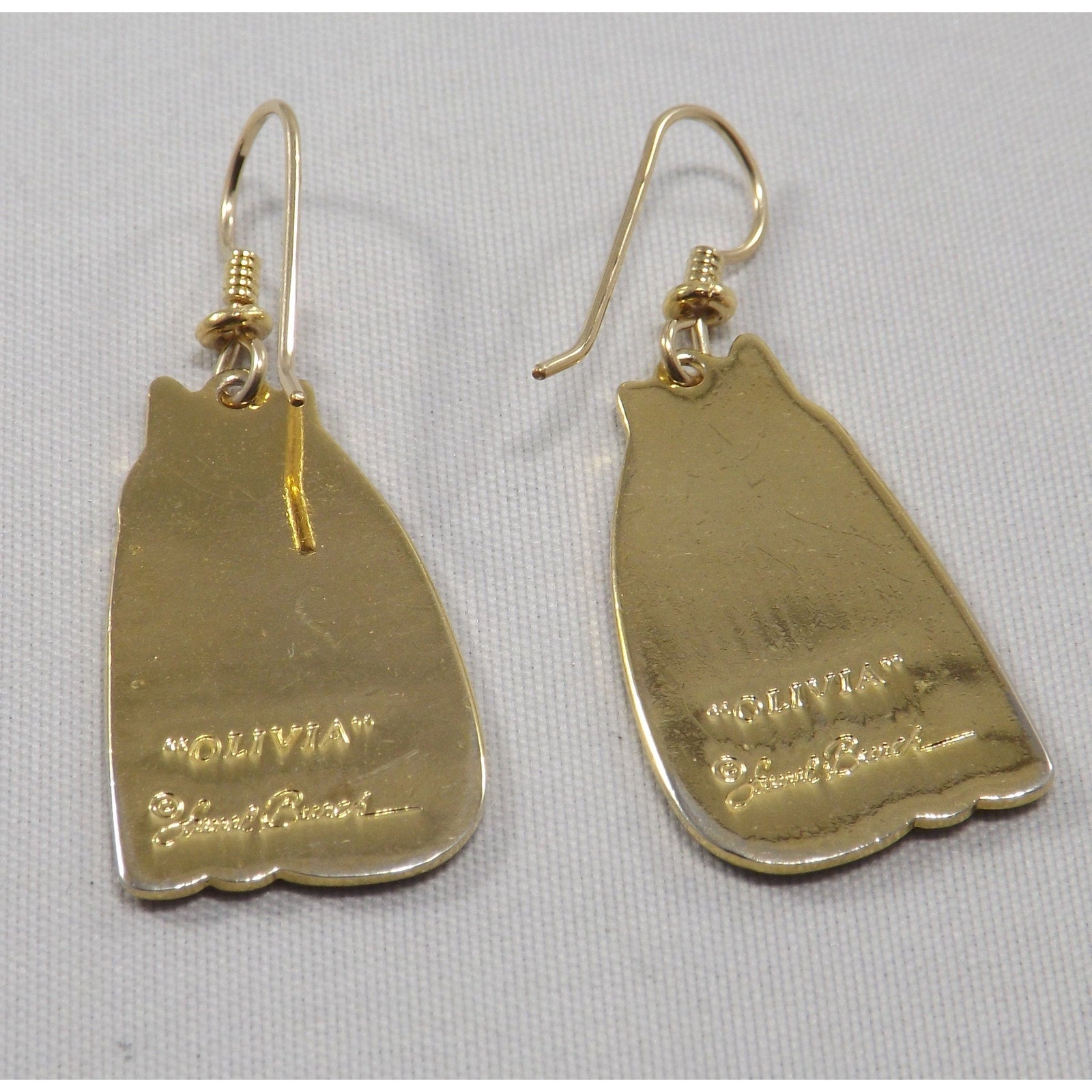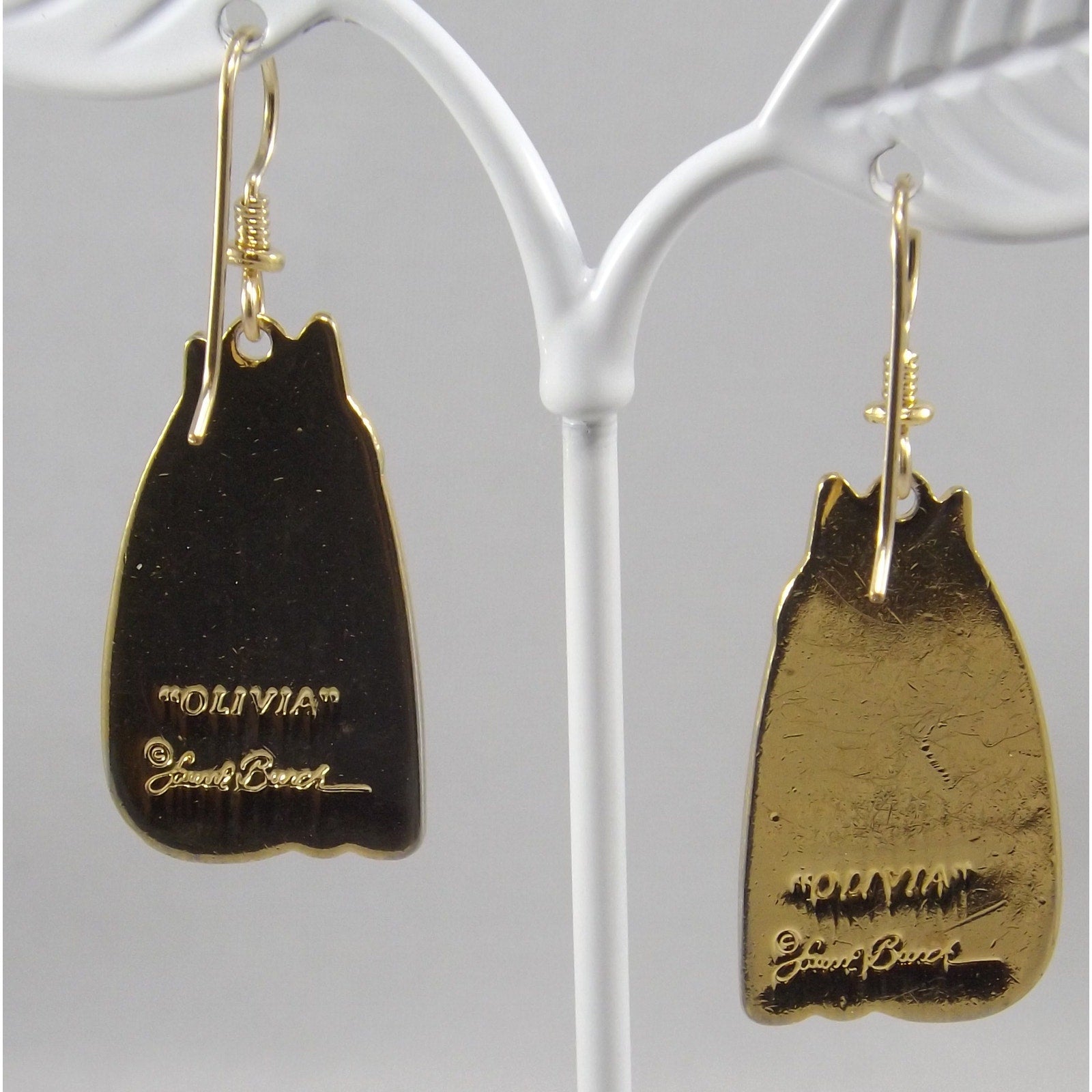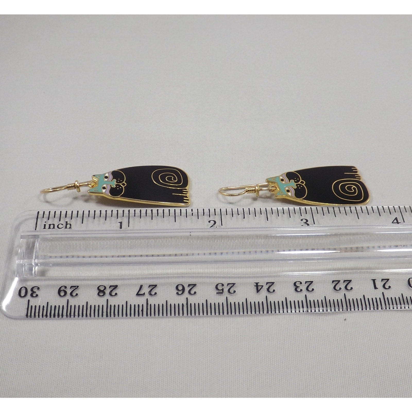 Vintage Laurel Burch "Olivia" Cat Earrings 1980s Vintage Jewelry Cloisonne Enamel Black Enamel Cats Teal Face Gold Filled Ear Wires