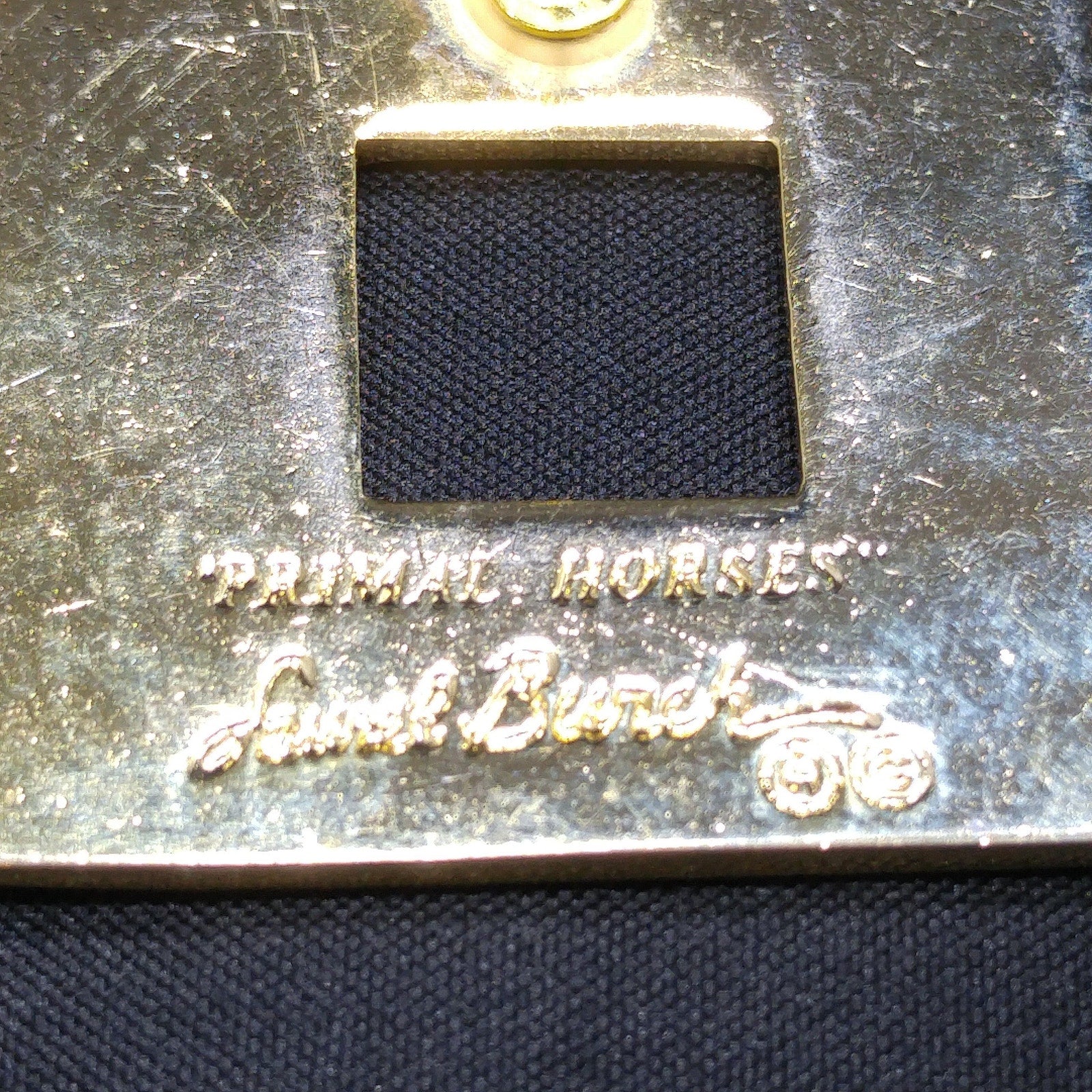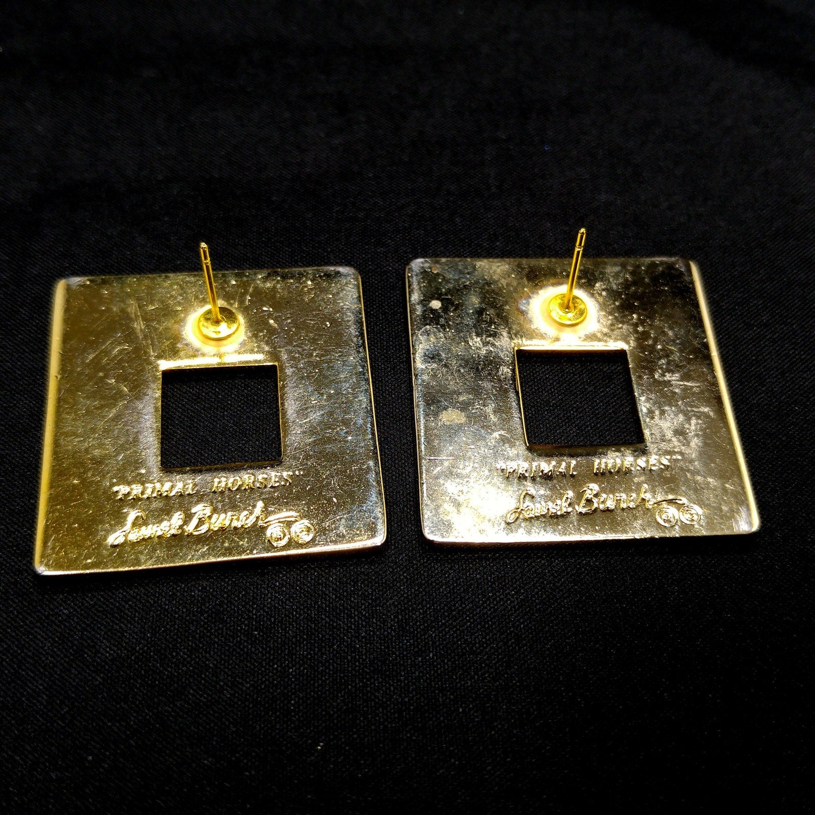 Laurel Burch "Primal Horse" Large Post Earrings, Gold Plated Cloisonné Enamel, 1980s Vintage Jewelry