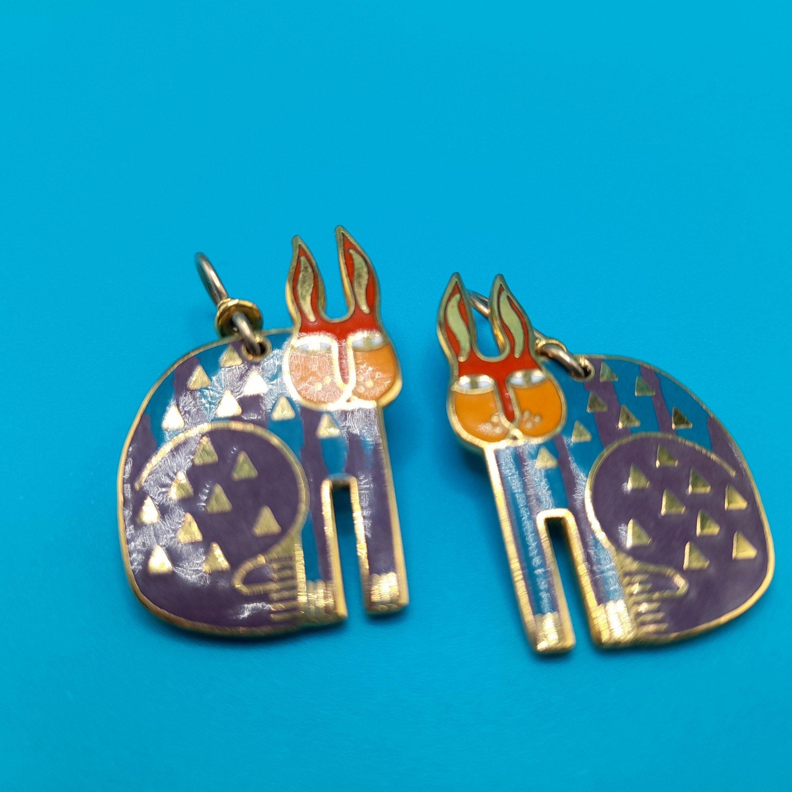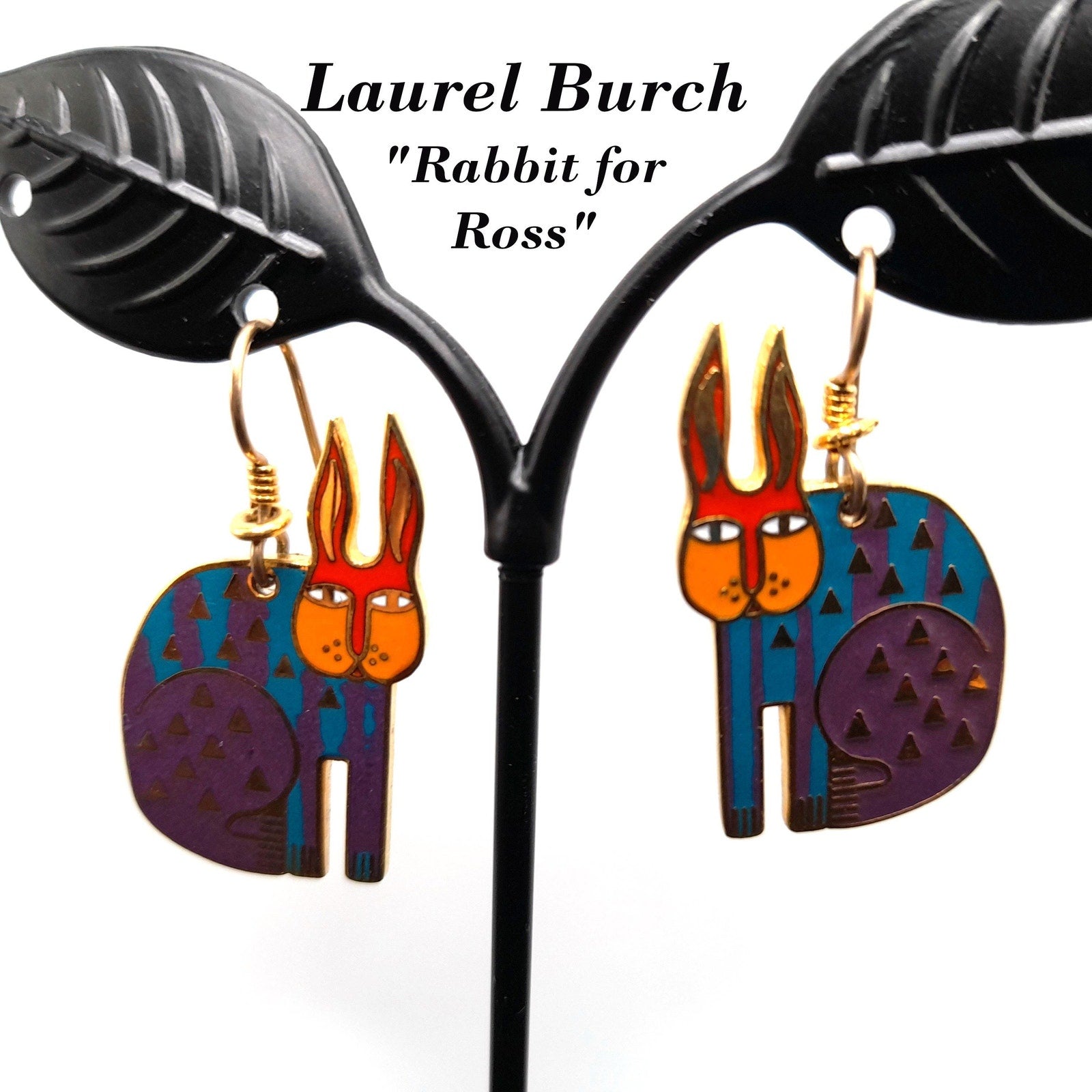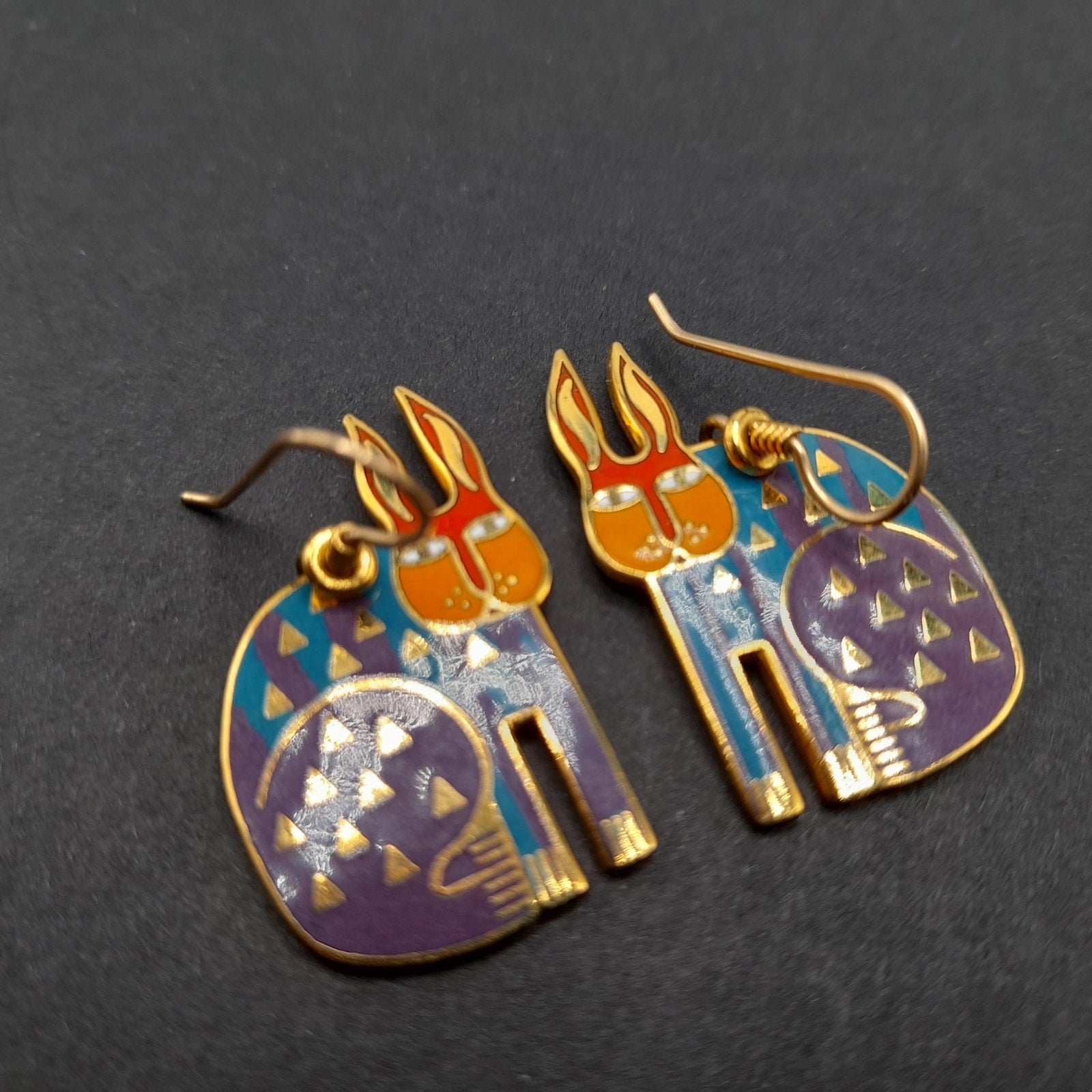 *Description: This is a beautiful Laurel Burch cloisonne earrings of the design "Rabbit for Ross" from the 1980s. The rainbow of enamel colors are vibrant and outlined in gold plating. The earrings have enamel colors: purple, teal, golden yellow, orange, and white. Laurel Burch earrings have gold filled ear wires for extra comfort. This would be a great addition to your vintage jewelry collection or make a great vintage gift!