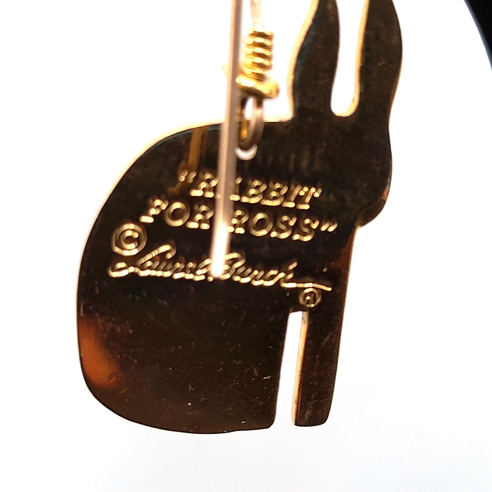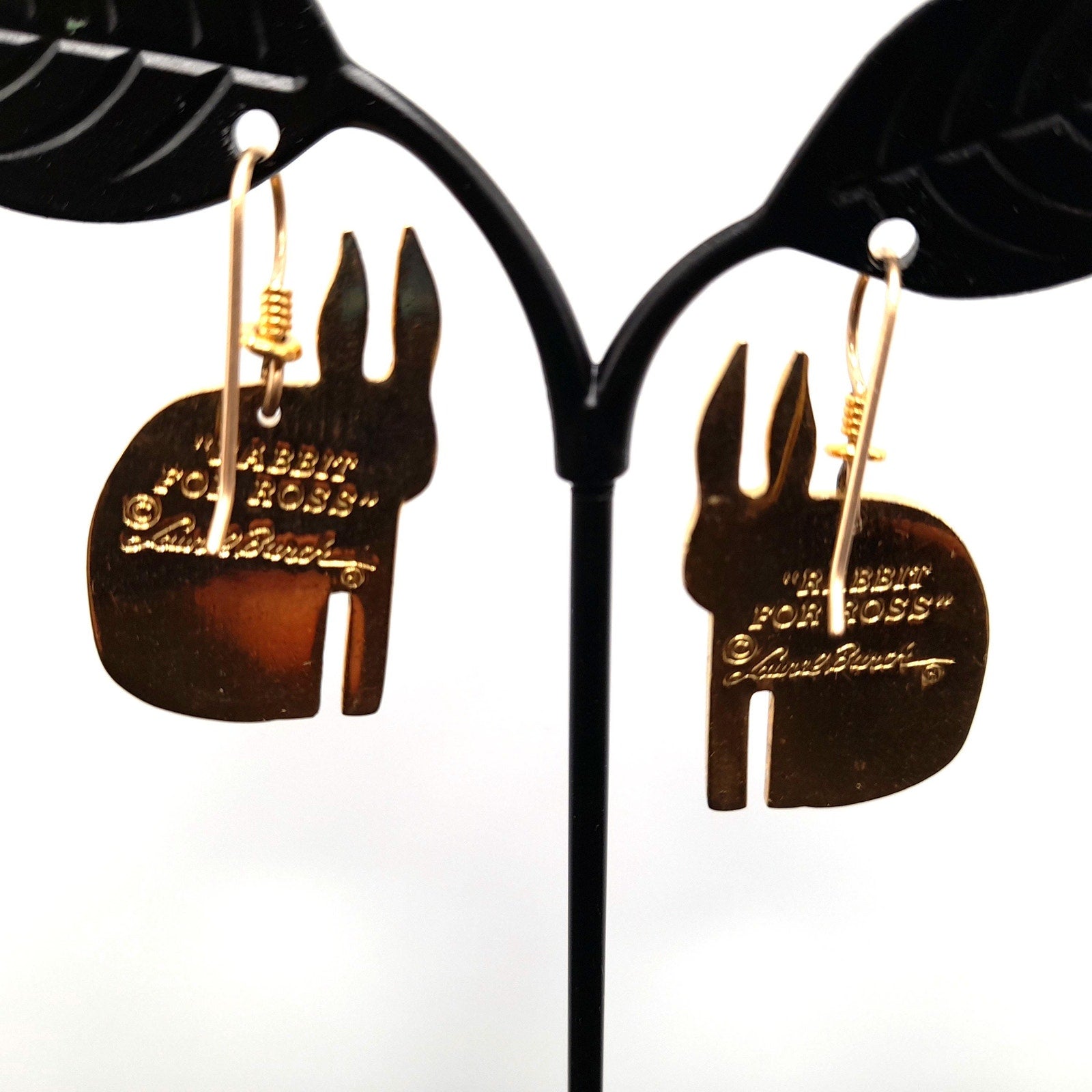 Laurel Burch "Rabbit For Ross" Earrings, Enamel Cloisonne Gold Plated, 1980s