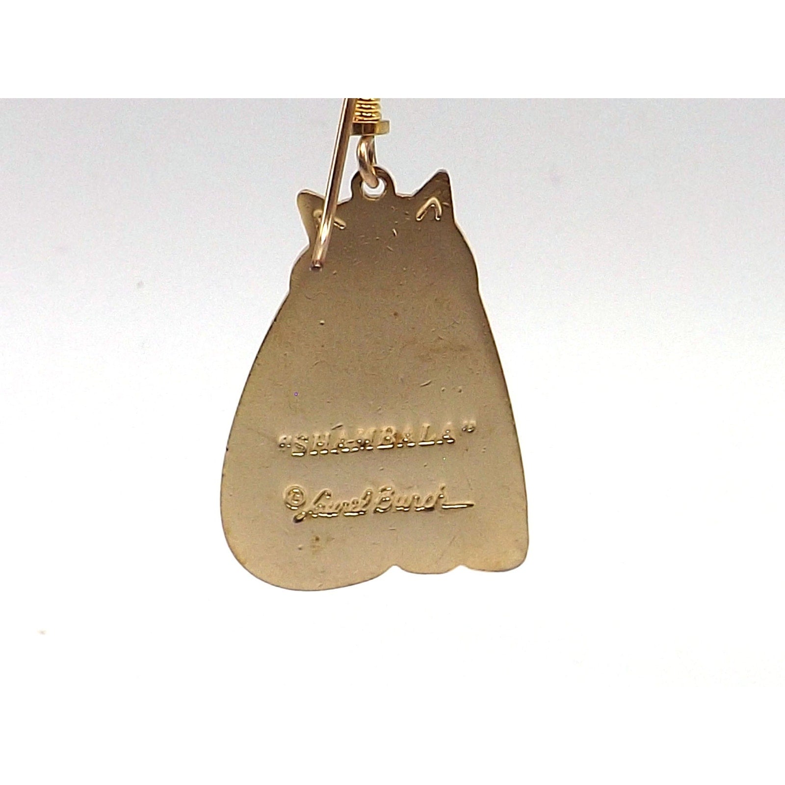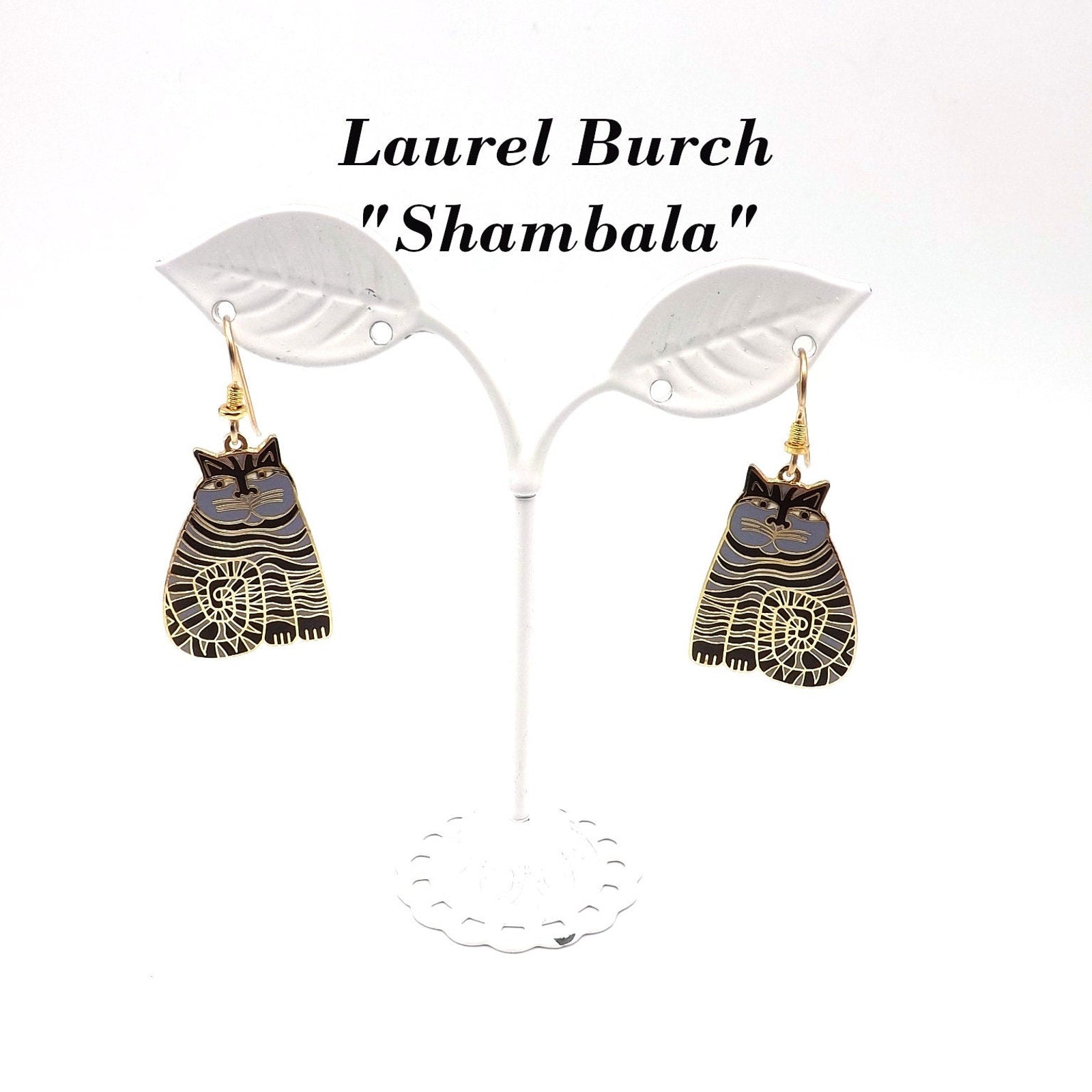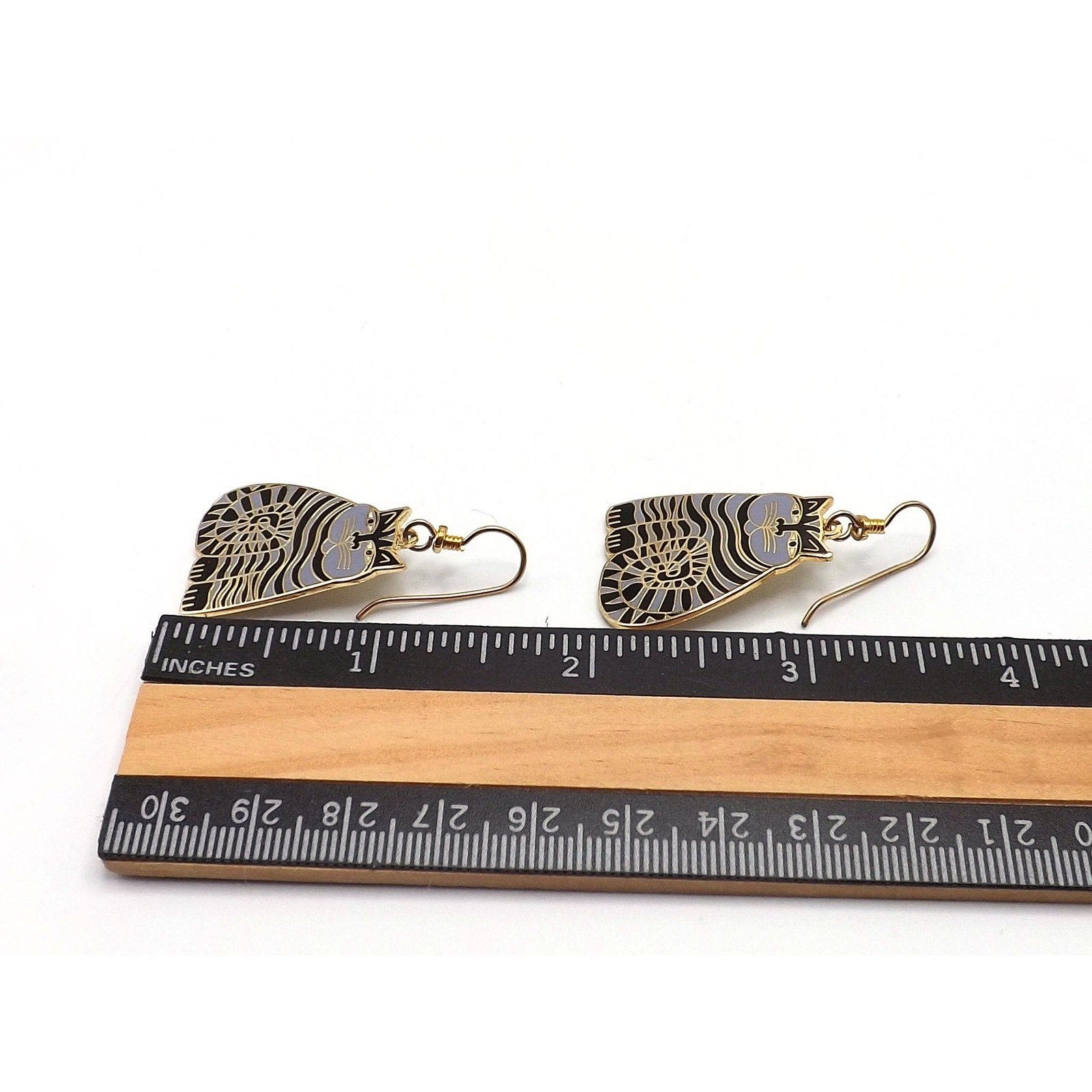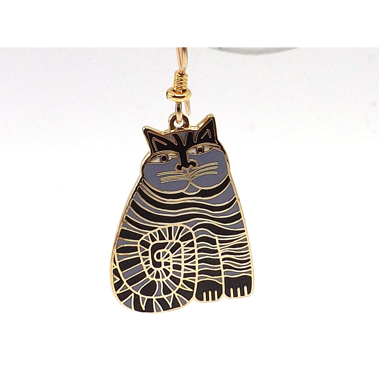*Description: This is a beautiful vintage pair of Laurel Burch black and lavender gray striped cat earrings with gold cloisonné outlines entitled SHAMBALA. The ear wires are gold filled. The fabulous design is a signature Laurel Burch with her love of cats and animals. This great design is from the 1980s and uses the cloisonné technique with enamel which is outlined in gold plate. Laurel Burch was a fabulous artist who shared many of her designs through jewelry. This would be a great addition to your vintage jewelry collection or make a great vintage gift!
