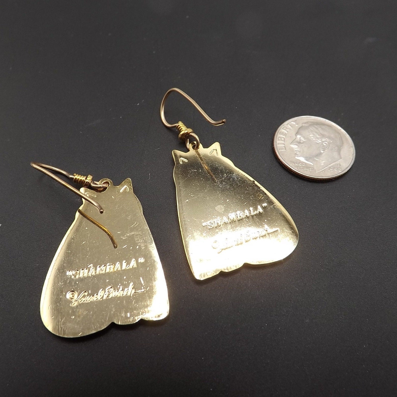 Laurel Burch Shambala Cat Earrings, Black Lavender Enamel, Gold Plated, 1980s Vintage Jewelry