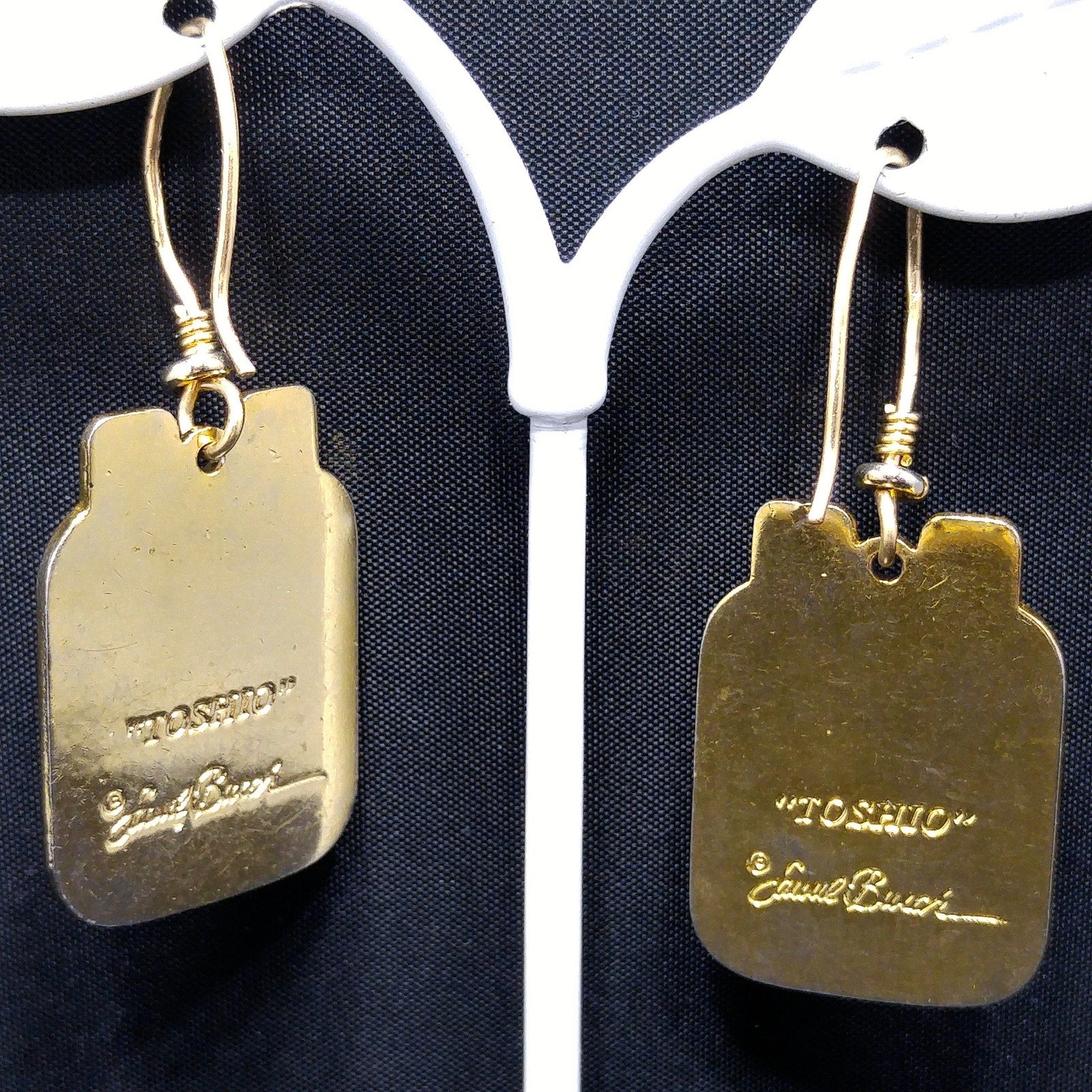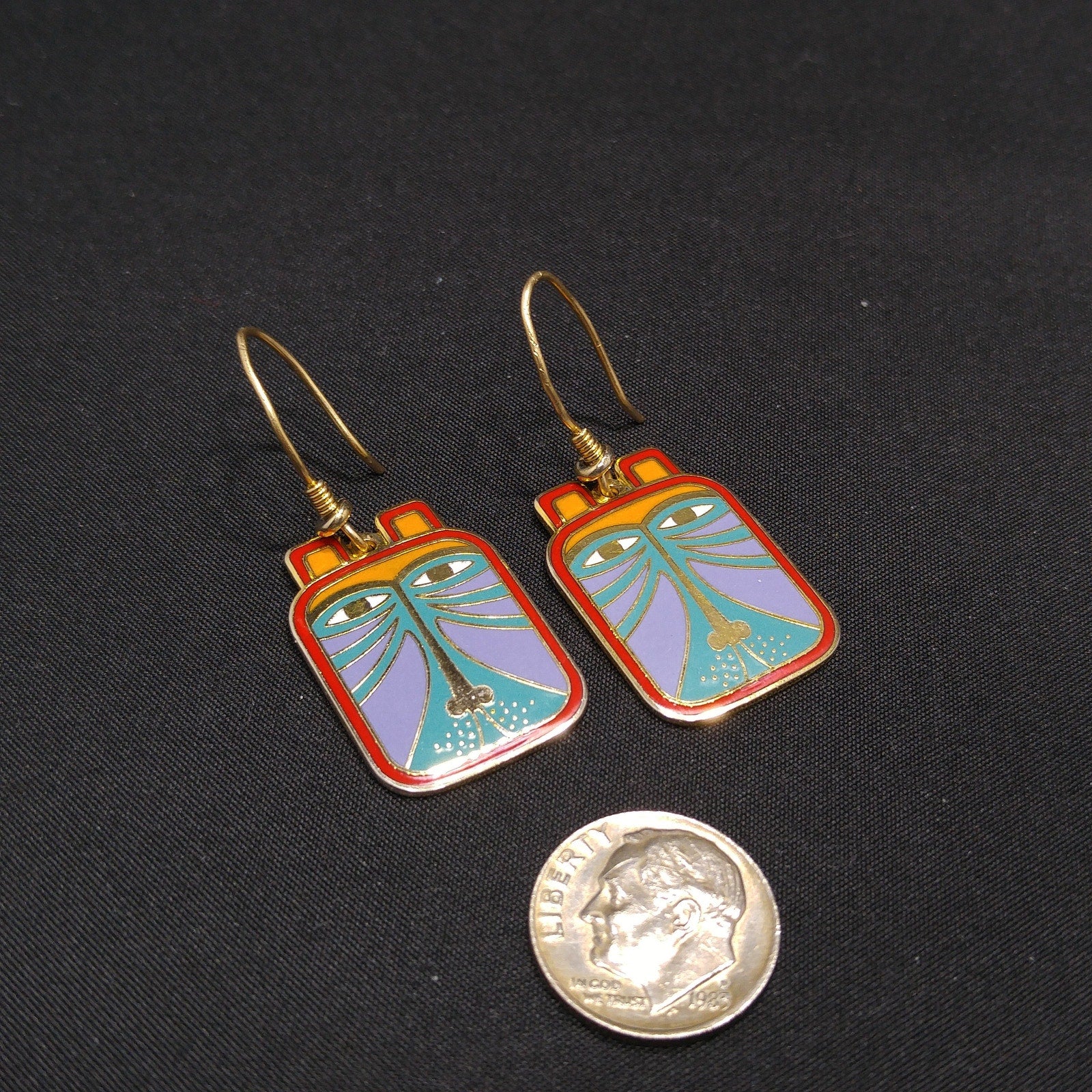 Laurel Burch "Toshio" Drop Earrings, Gold Plated & Enamel Cloisonné, 1980s Vintage Jewelry