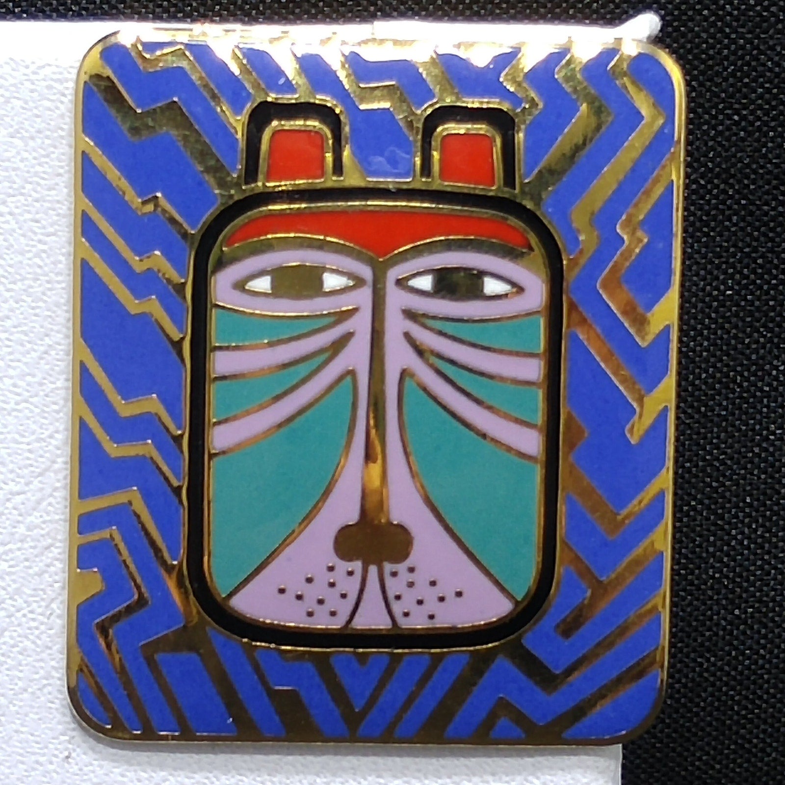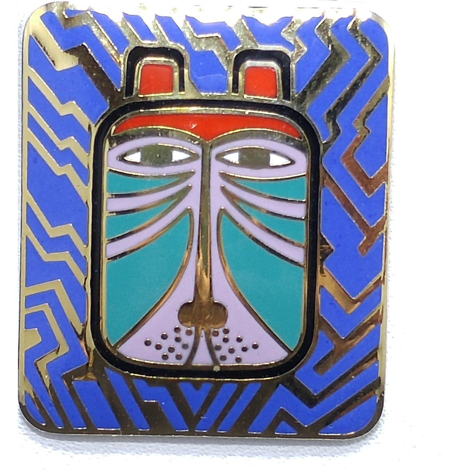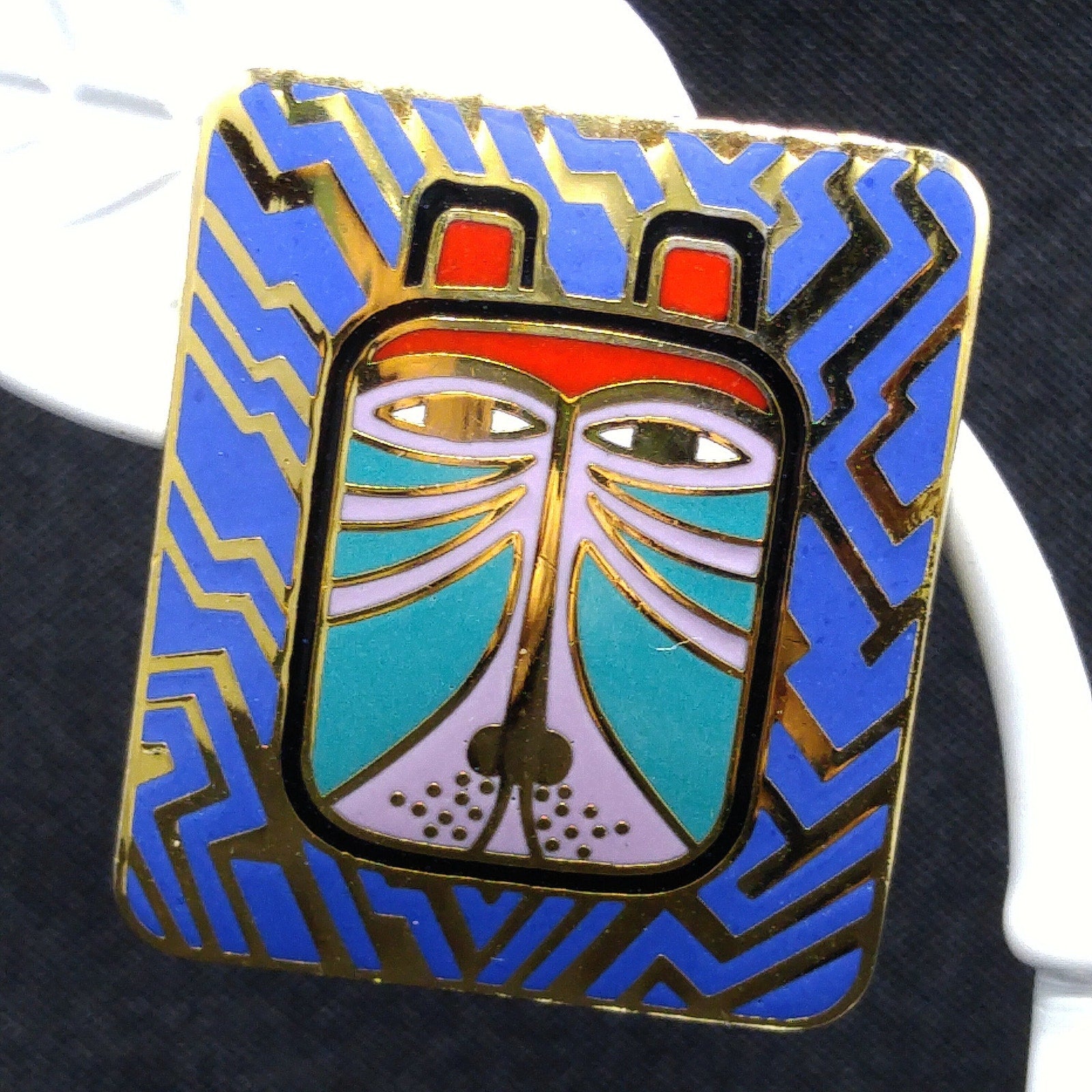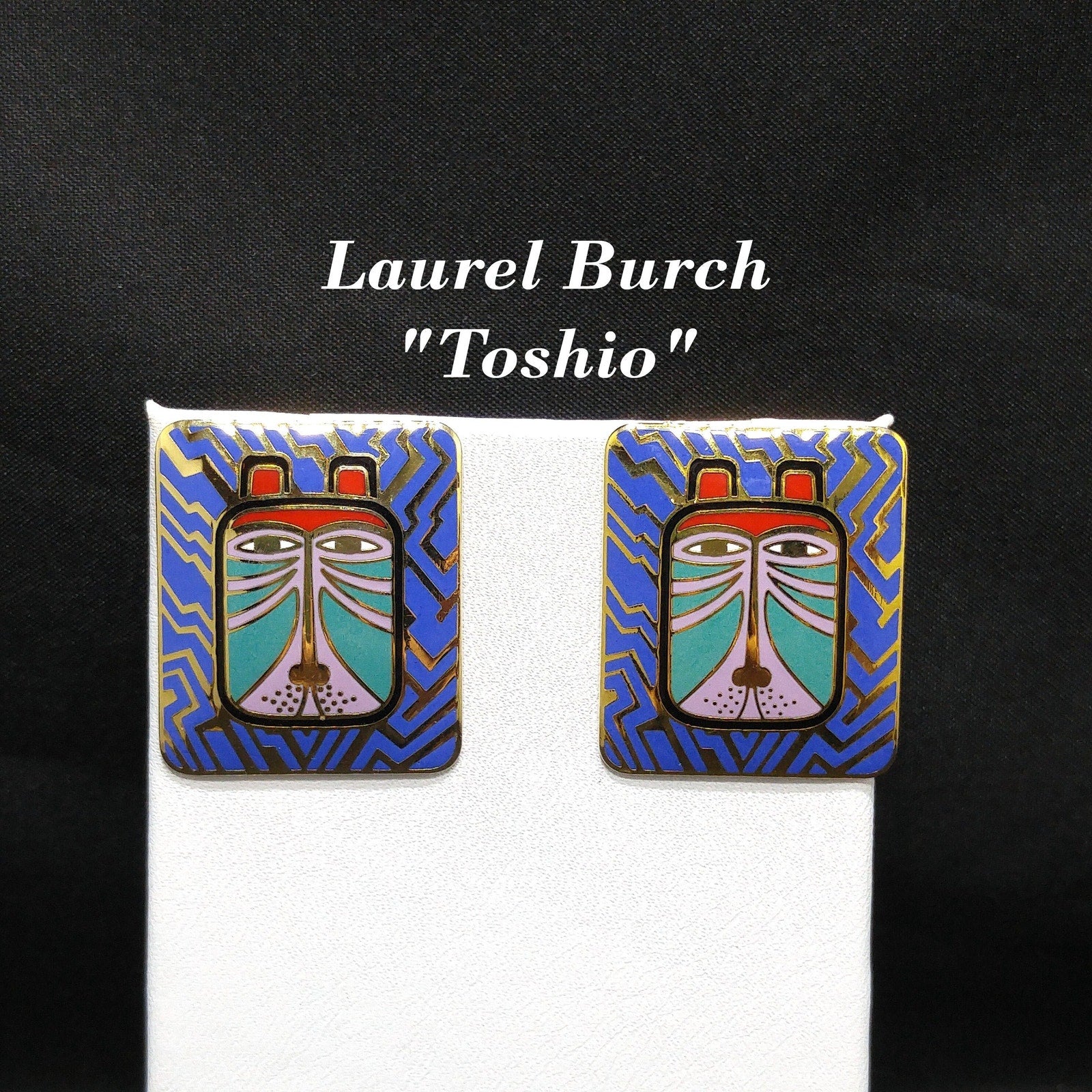 *Description: This is a great pair of Laurel Burch "Toshio" post earrings from the 1980s. The earrings are gold plated cloisonné and backing with enamel in a variety of colors, which include a purple blue around the face which could be mane, red ears and top of head, teal green and lavender face, all outlined with the gold. The post earrings are gold filled. The design name and designer are stamped on the back of each. This is a great tribal look pair of earrings. This would be a great addition to your vintage jewelry collection or make a great vintage gift!