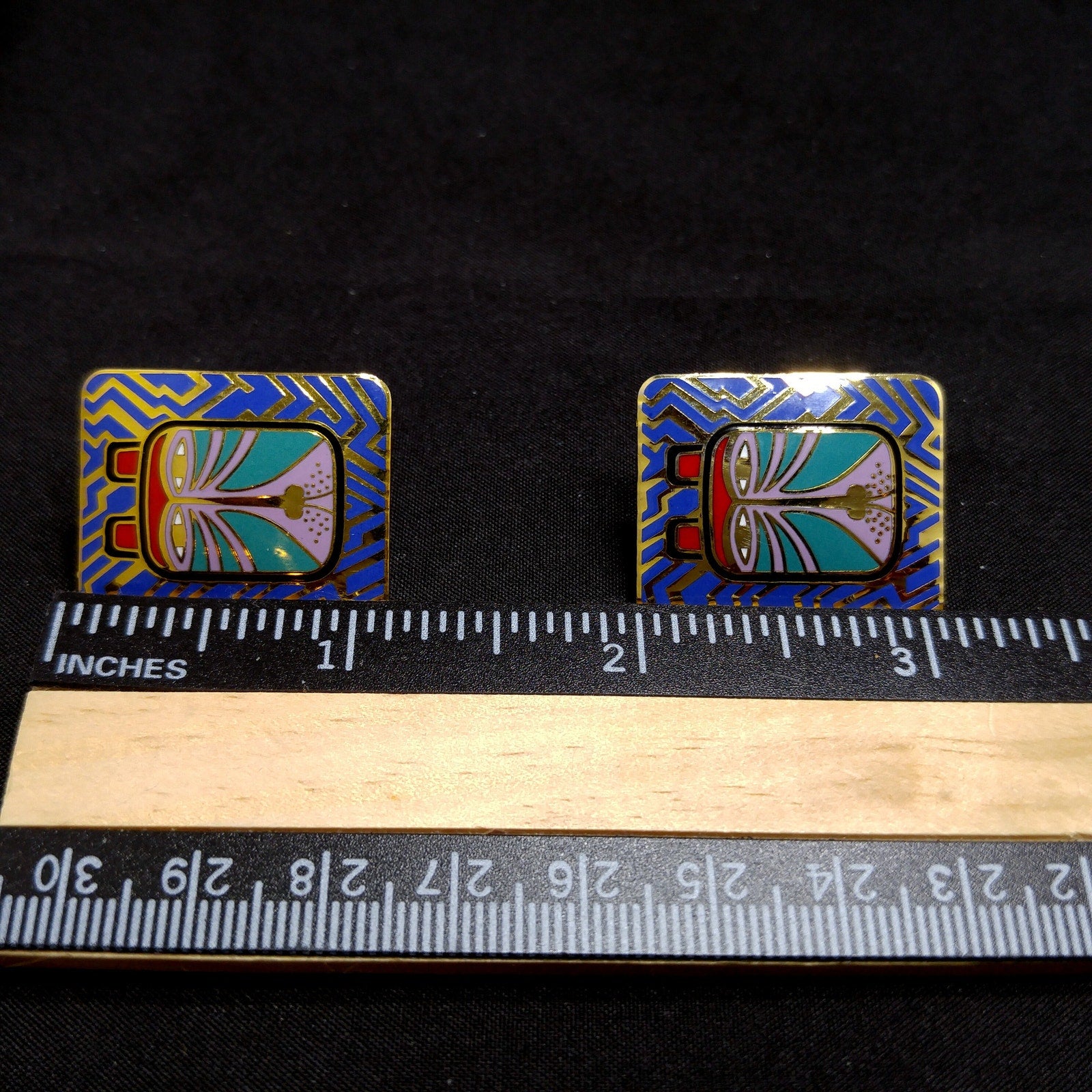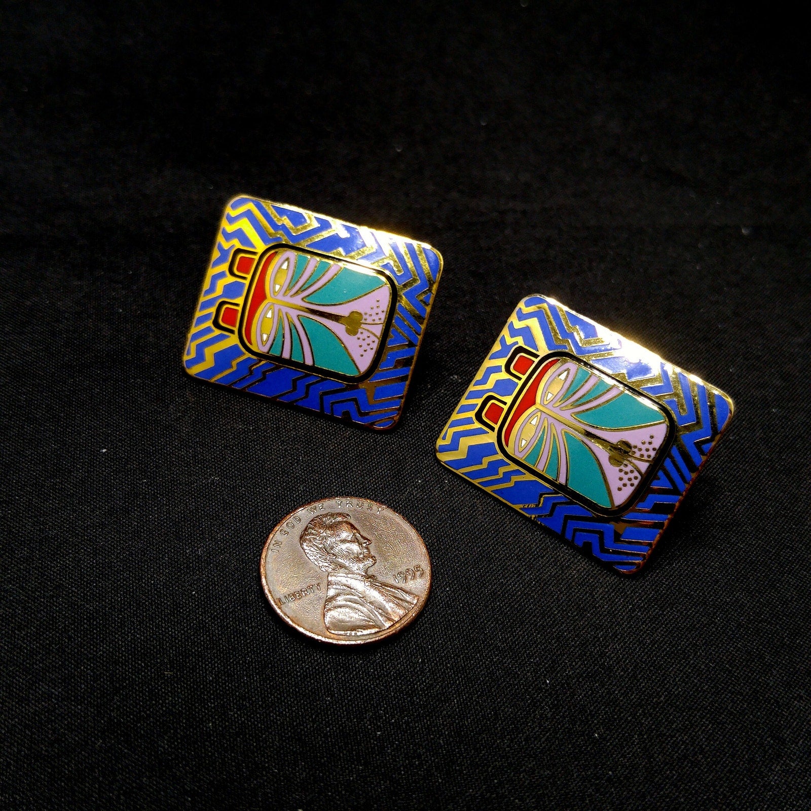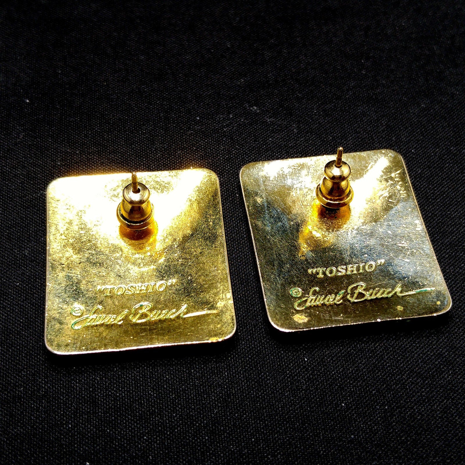 Laurel Burch "Toshio" Post Earrings, Gold Plated & Enamel Cloisonné, 1980s Vintage Jewelry