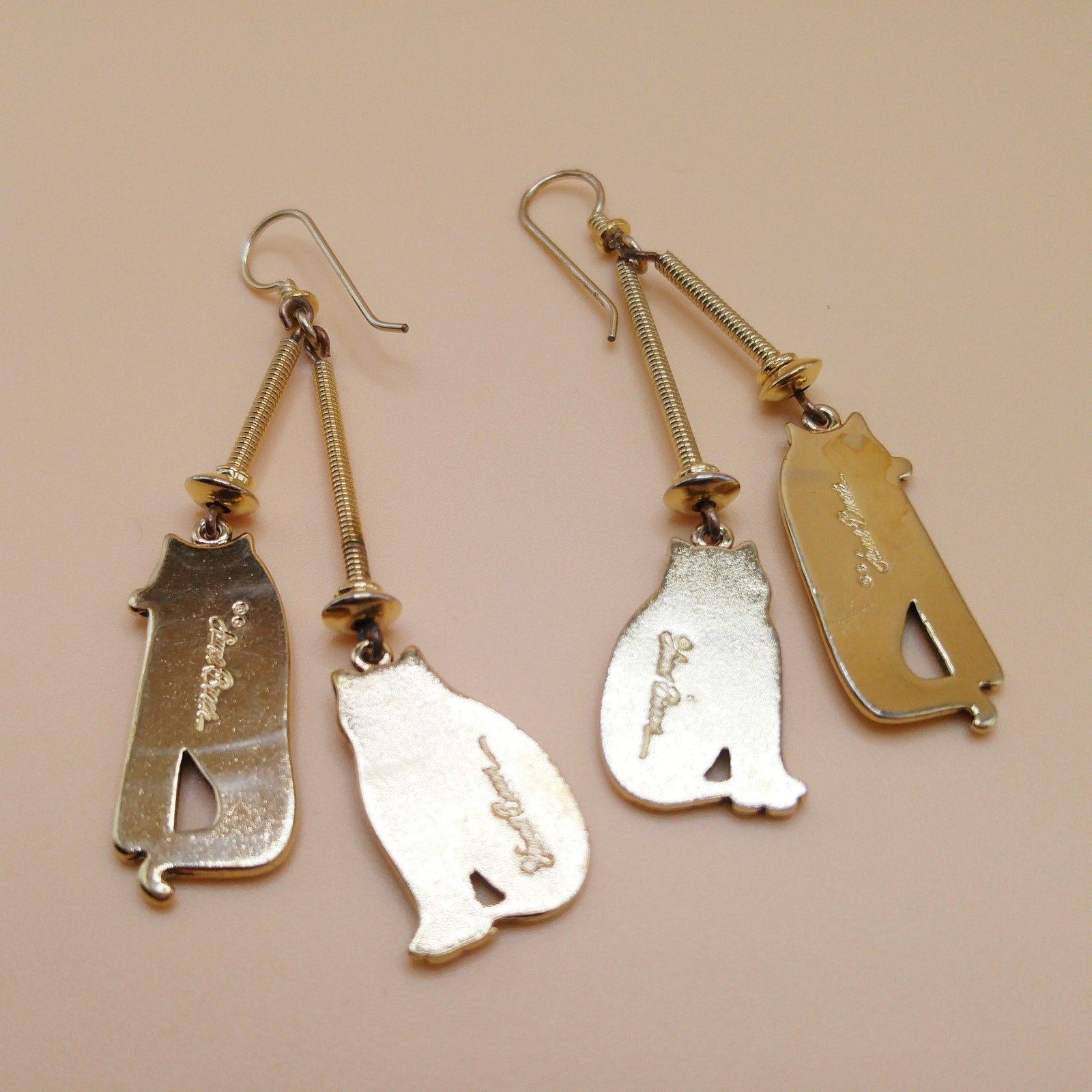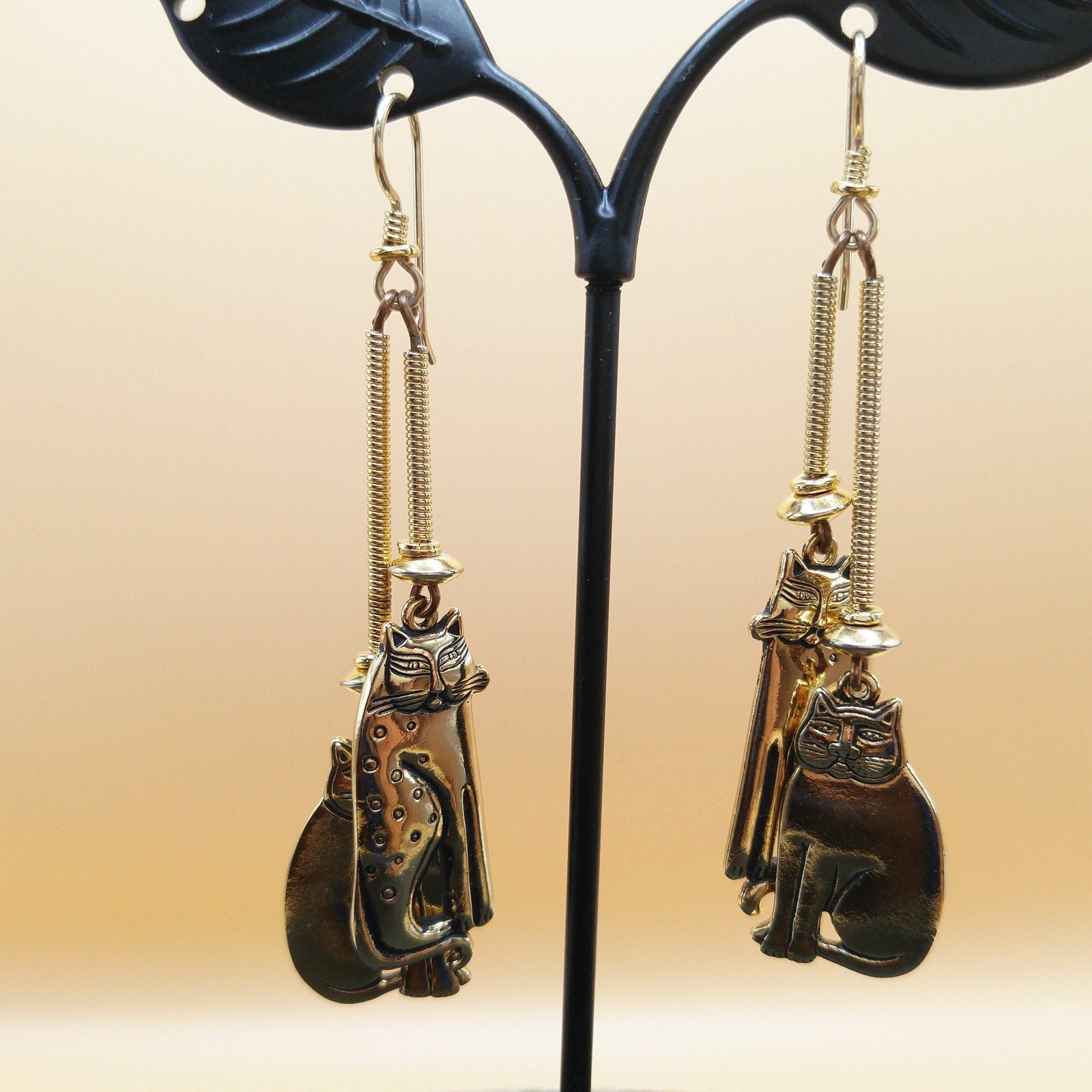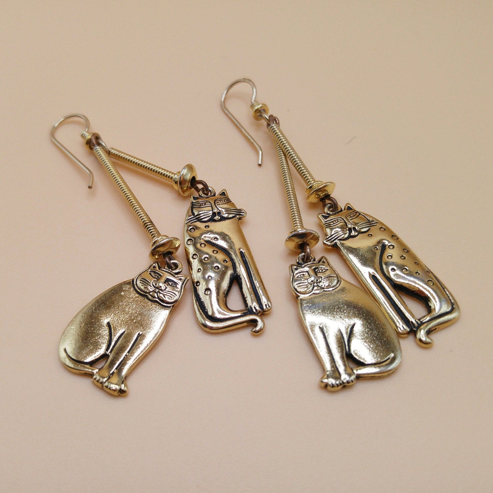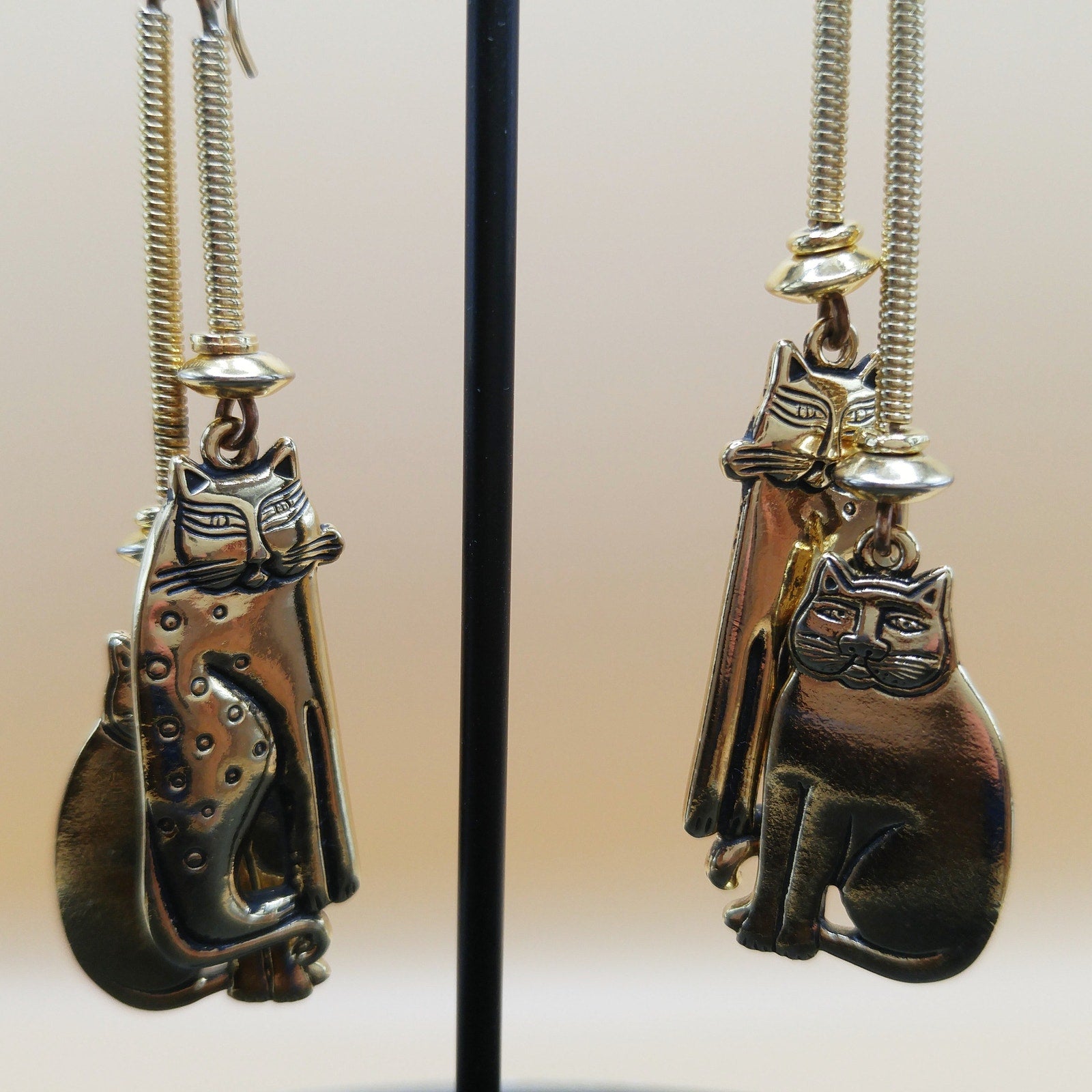Laurel Burch Two Cats Dangle Earrings, Mystic Cat, Siamese Cat, 1980s Vintage Jewelry