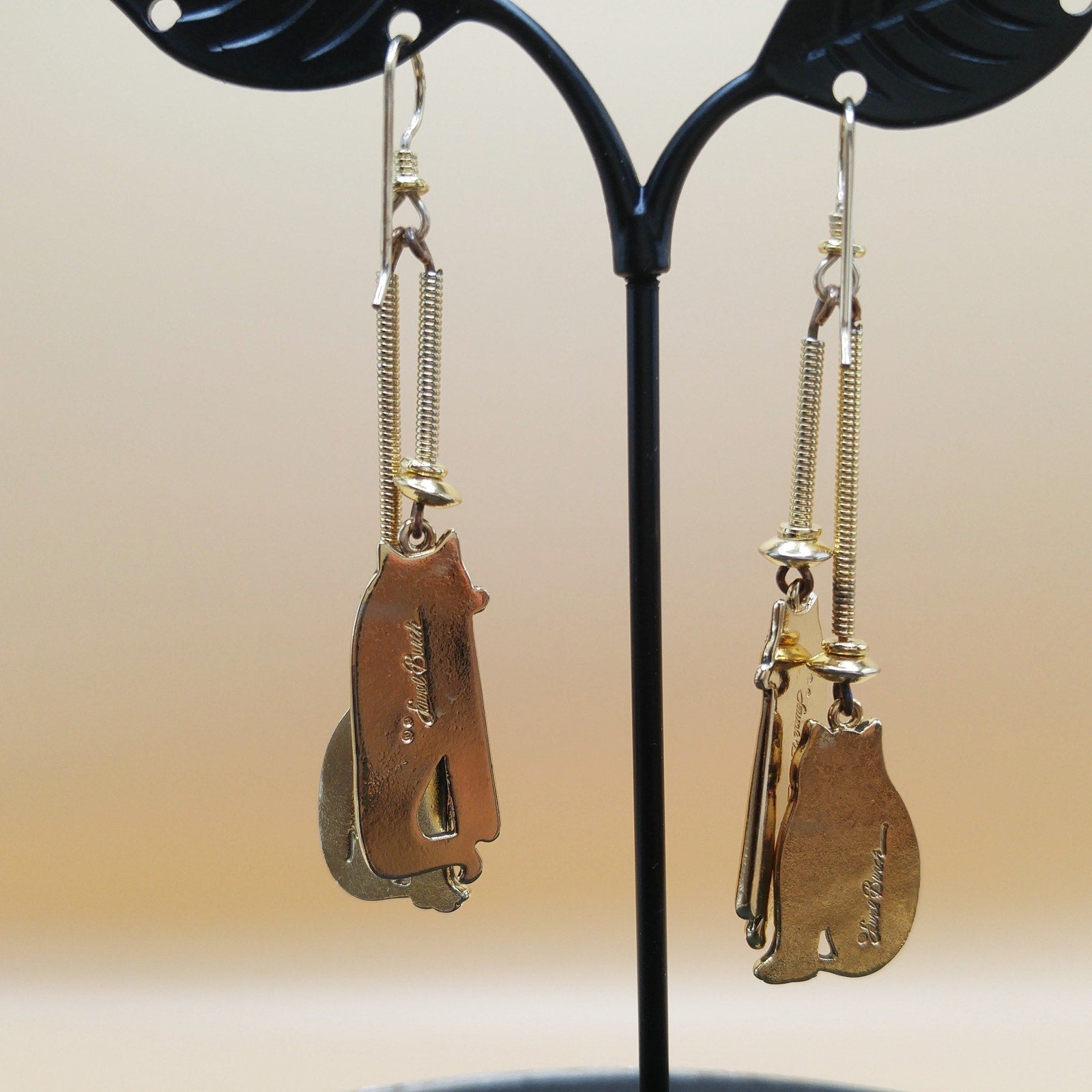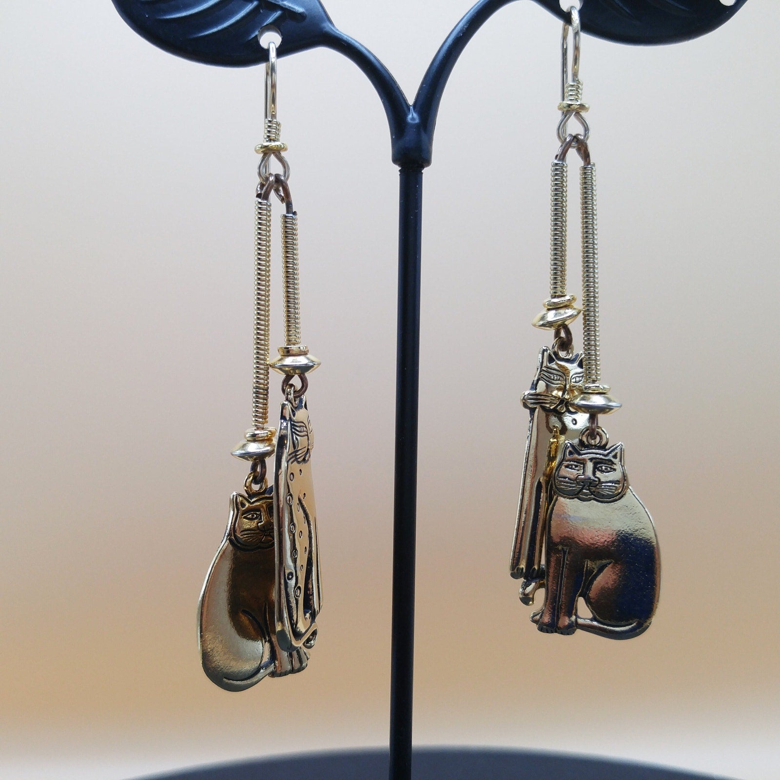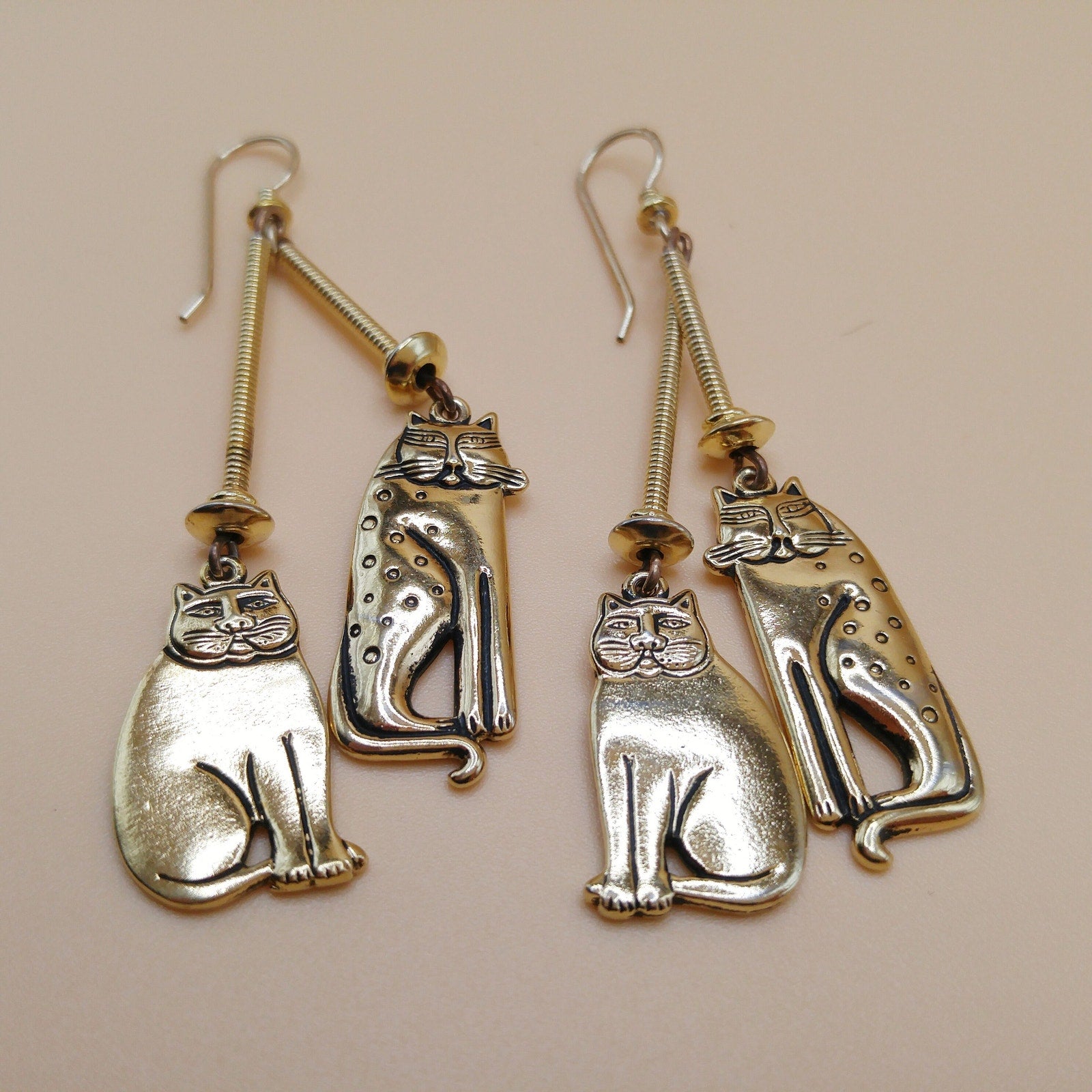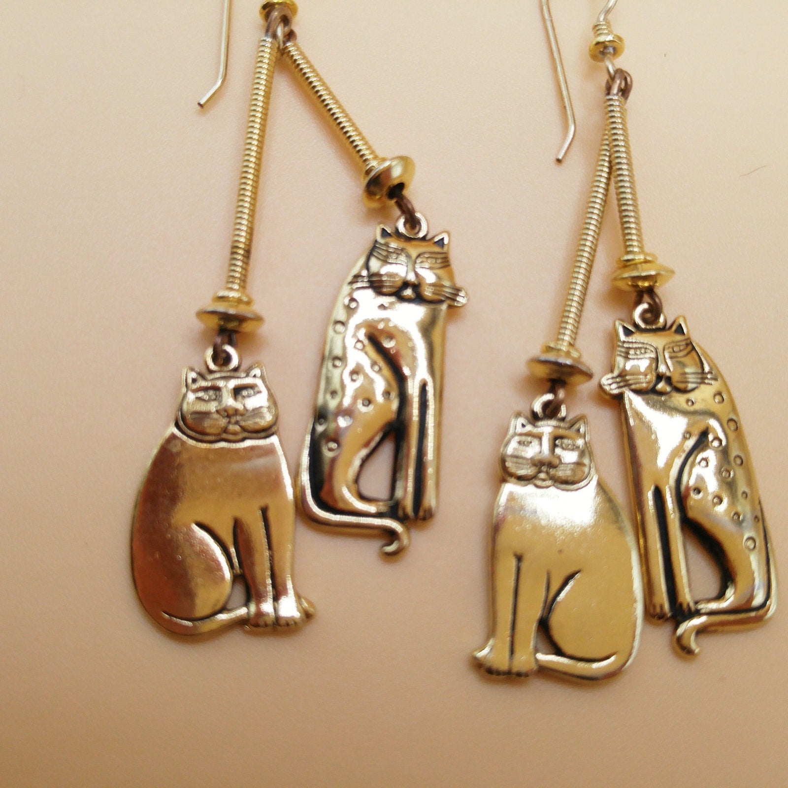 Laurel Burch Two Cats Dangle Earrings, Mystic Cat, Siamese Cat, 1980s Vintage Jewelry