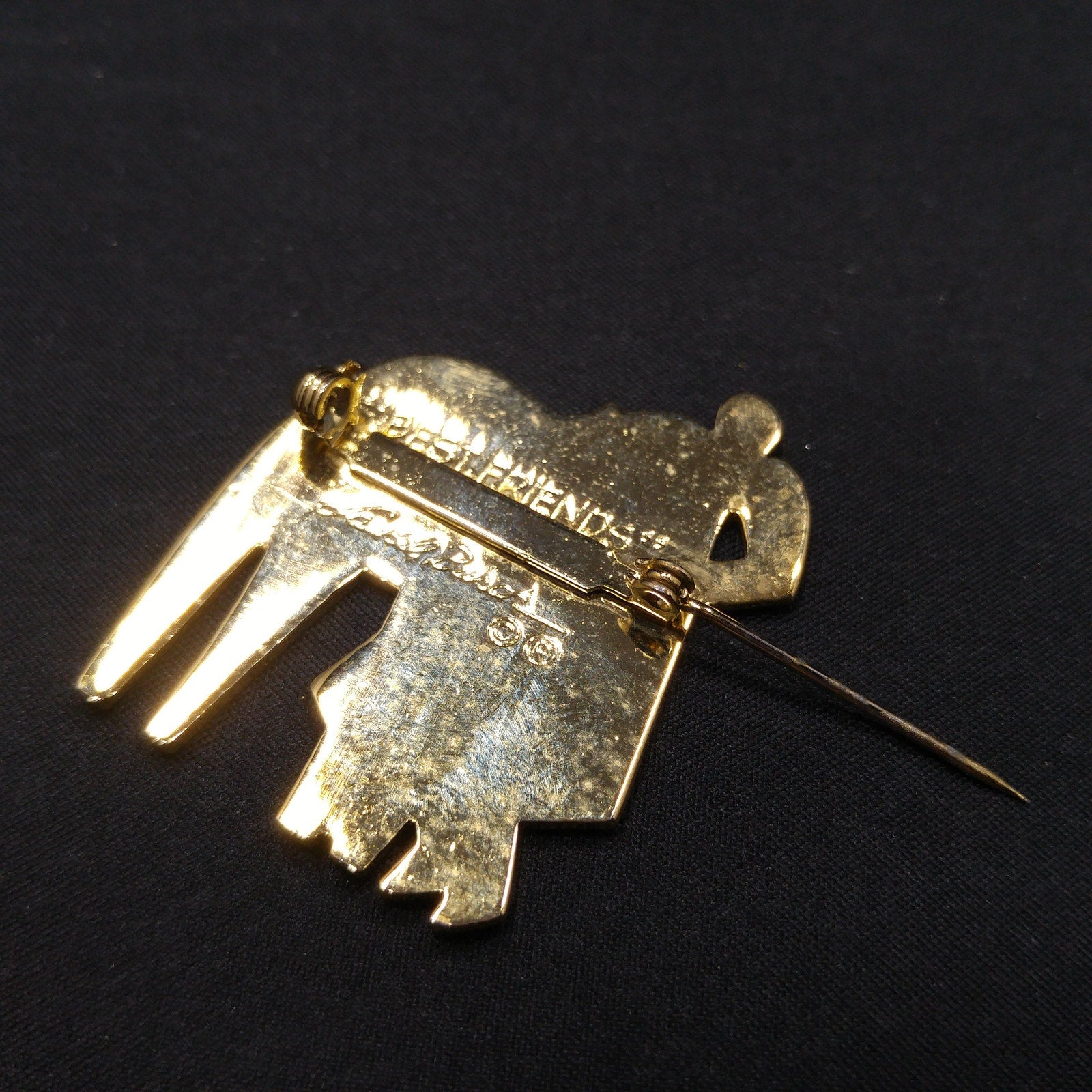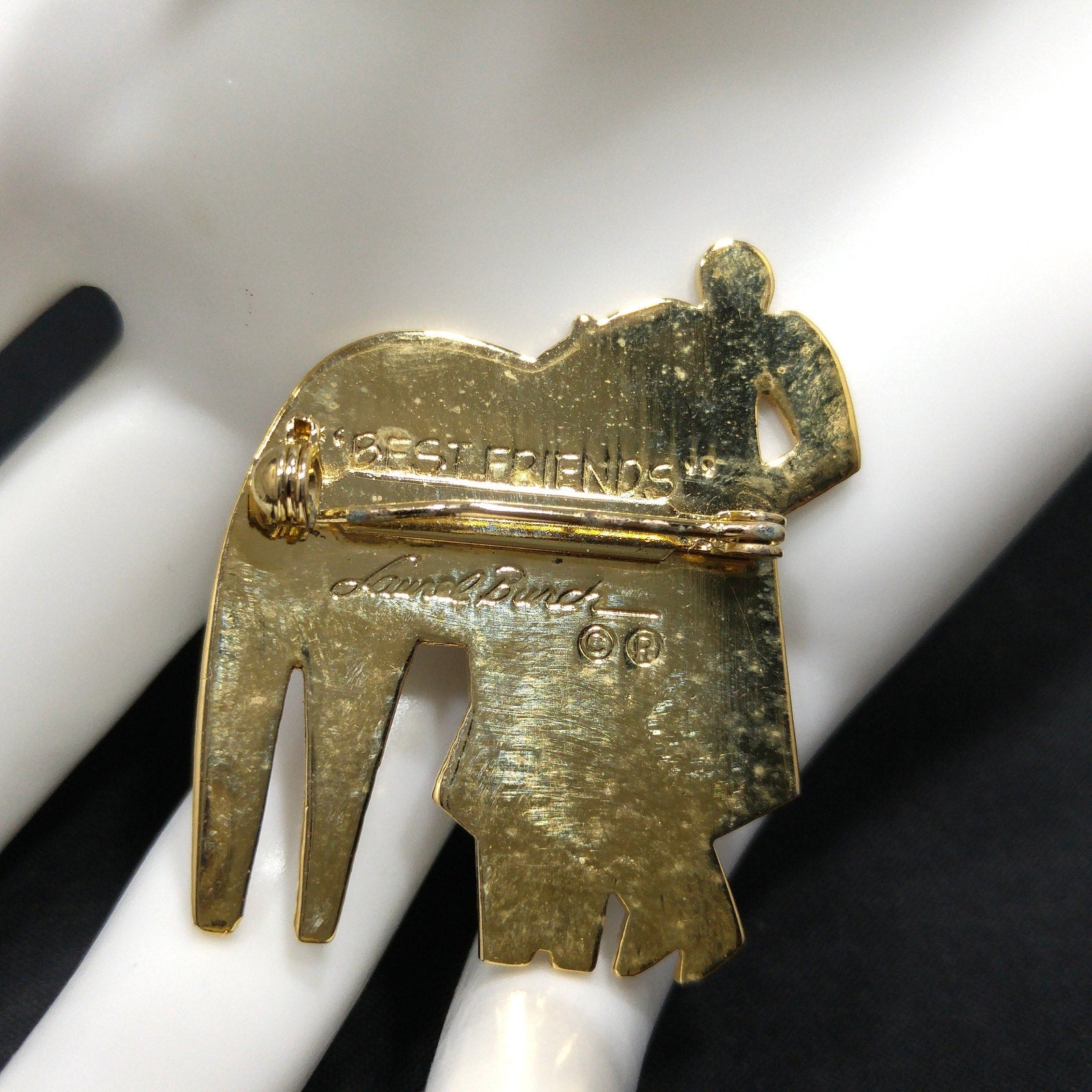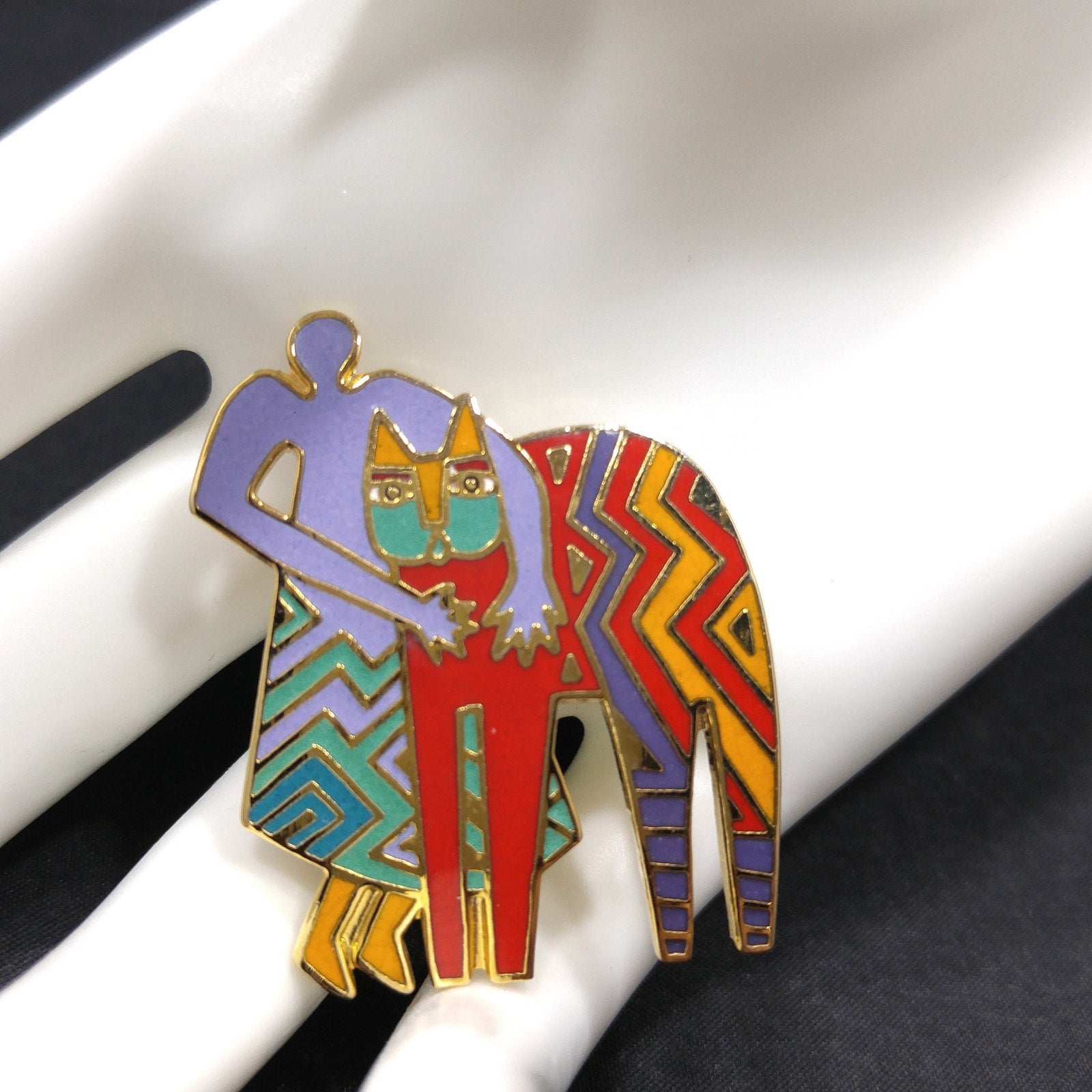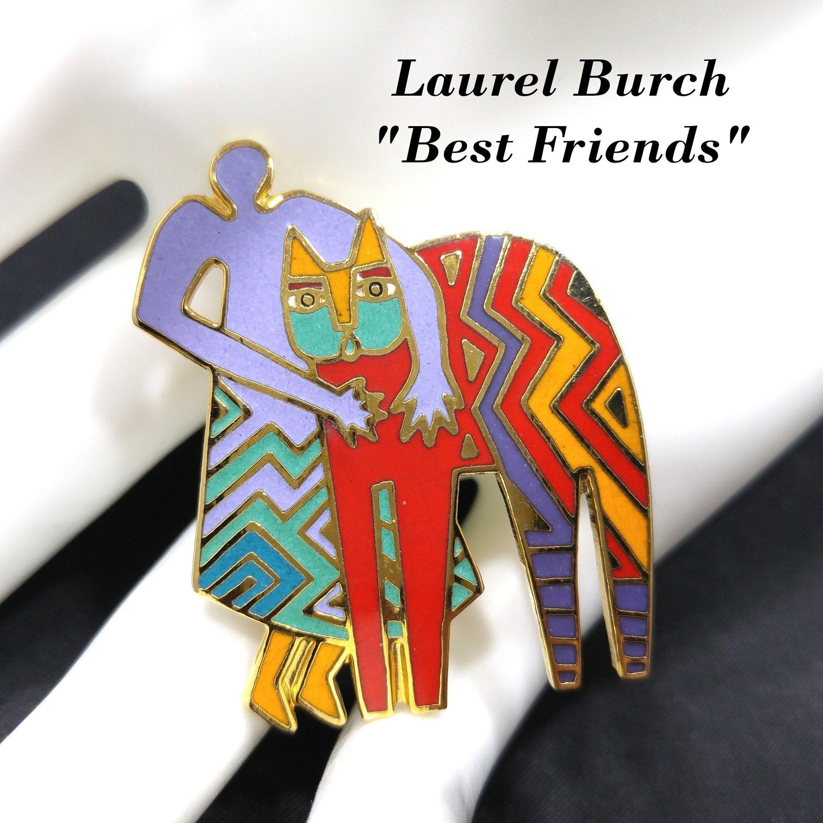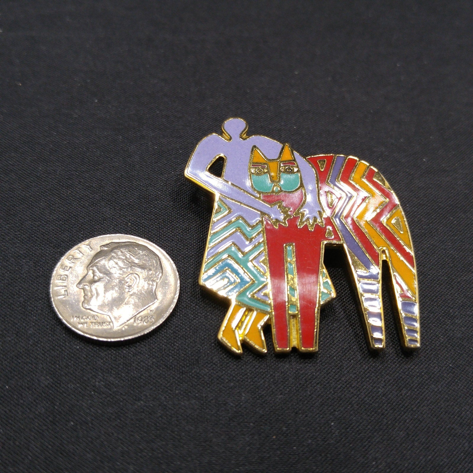 Laurel Burch Vintage "Best Friends" Brooch, Gold Plated Cloisonne Enamel, 1980s Vintage Jewelry