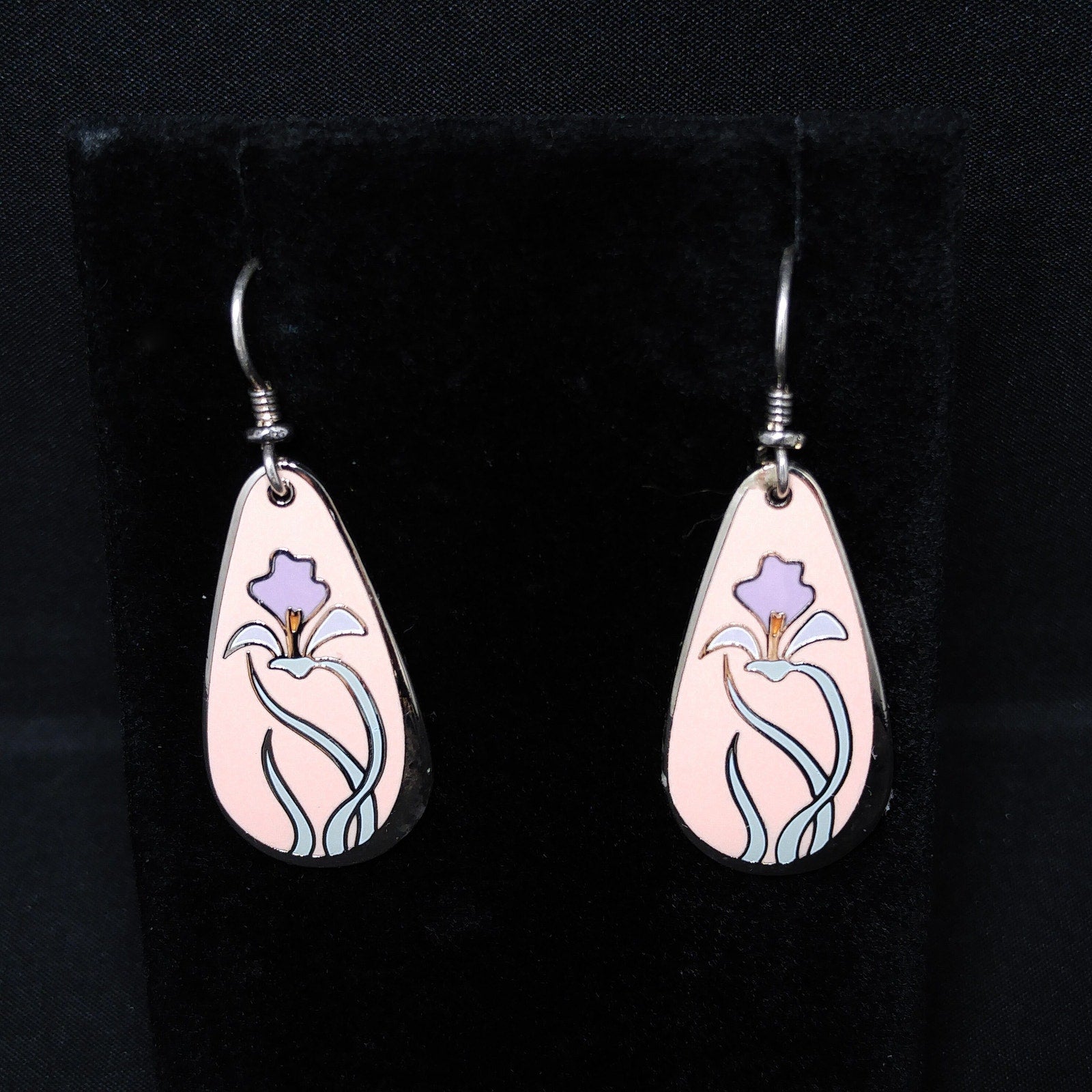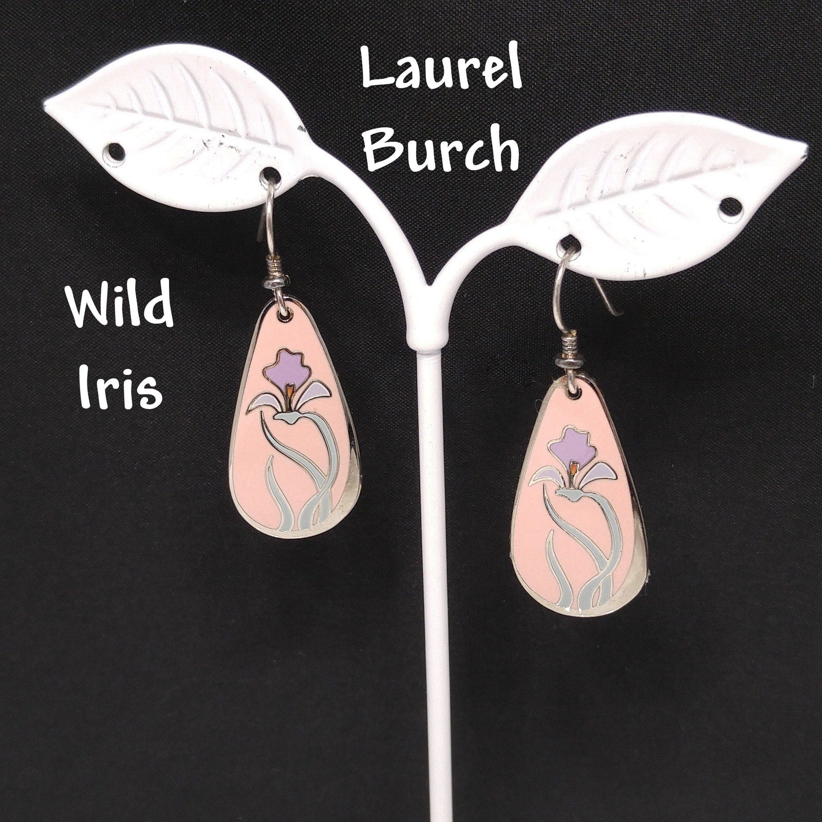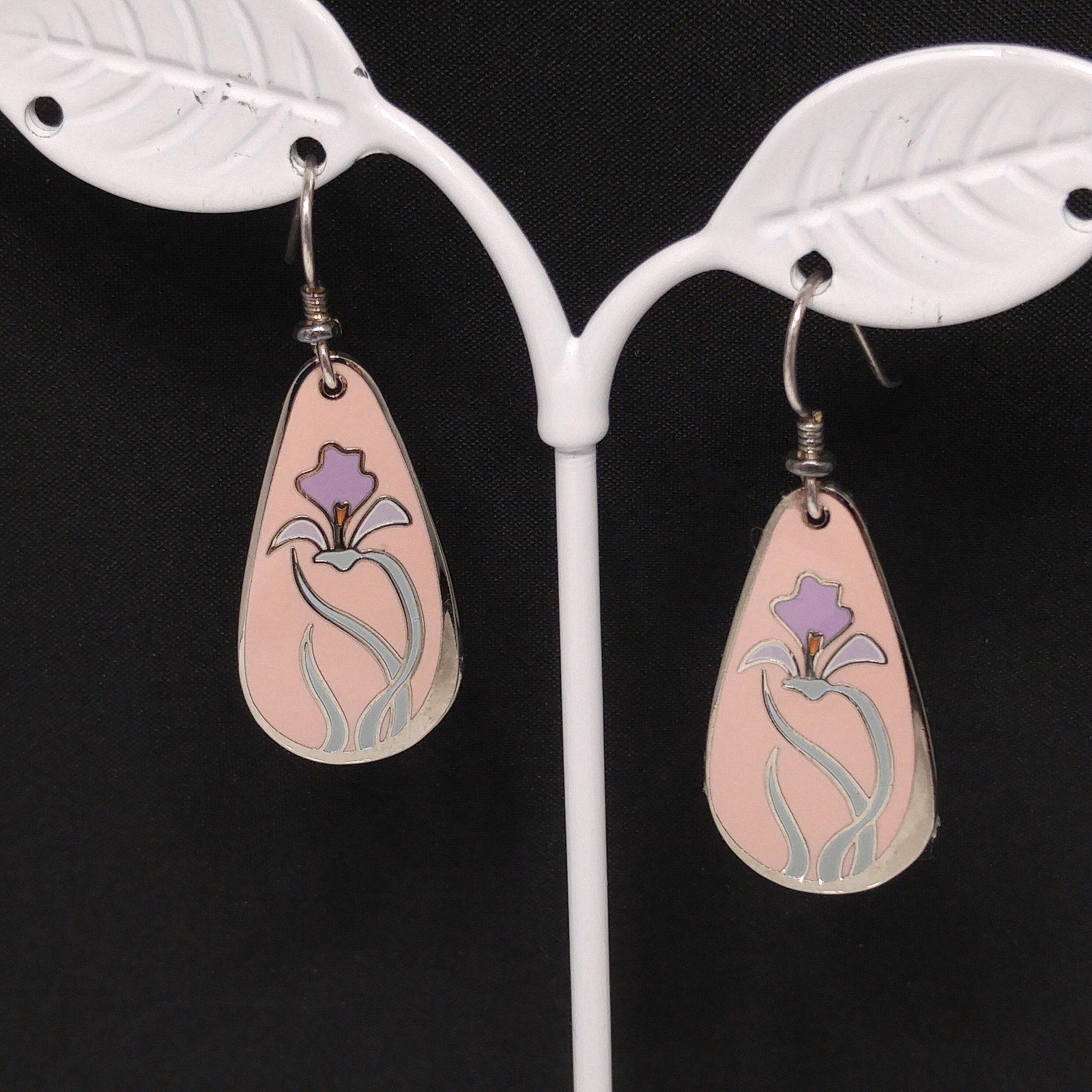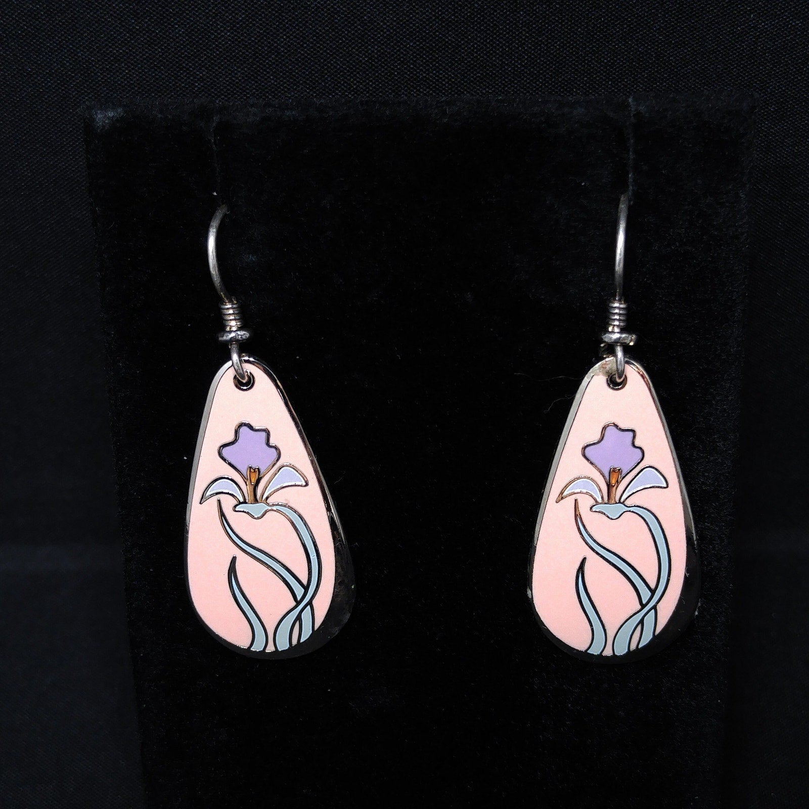 *Description: This is a beautiful pair of "Wild Iris" Laurel Burch earrings from the 1980s. The background is a pretty pink cloisonne enamel and a lavender lily with light moss green leaves. The back is stamped with LAUREL BURCH and "Wild Iris" on both earrings. These earrings would make a great gift or a wonderful pair to add to your Laurel Burch vintage collection.