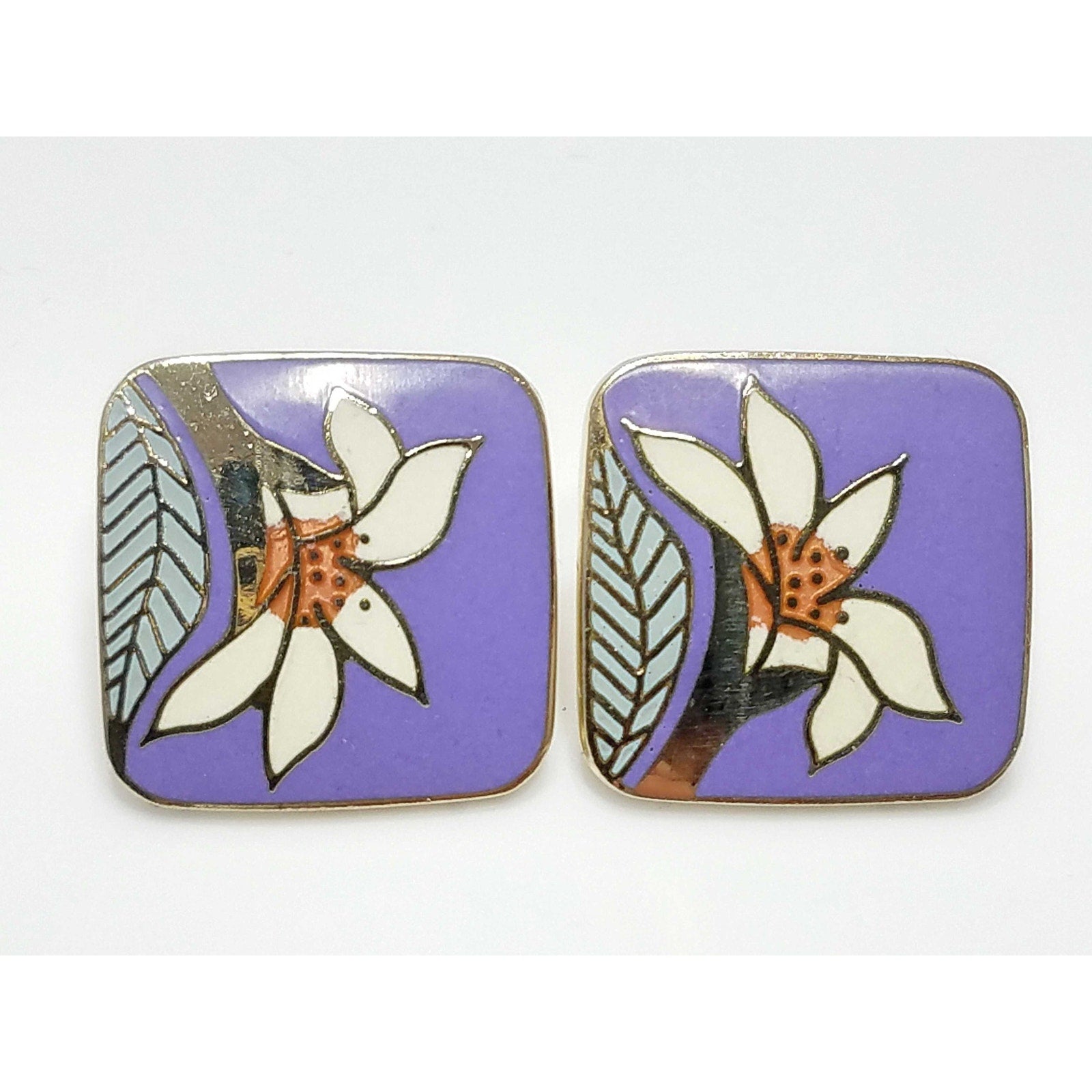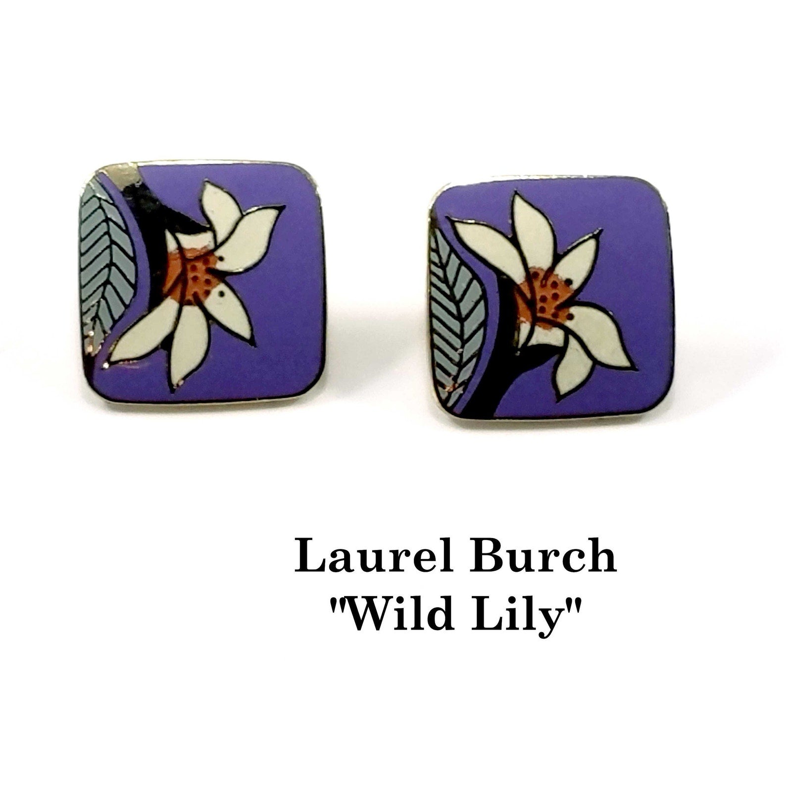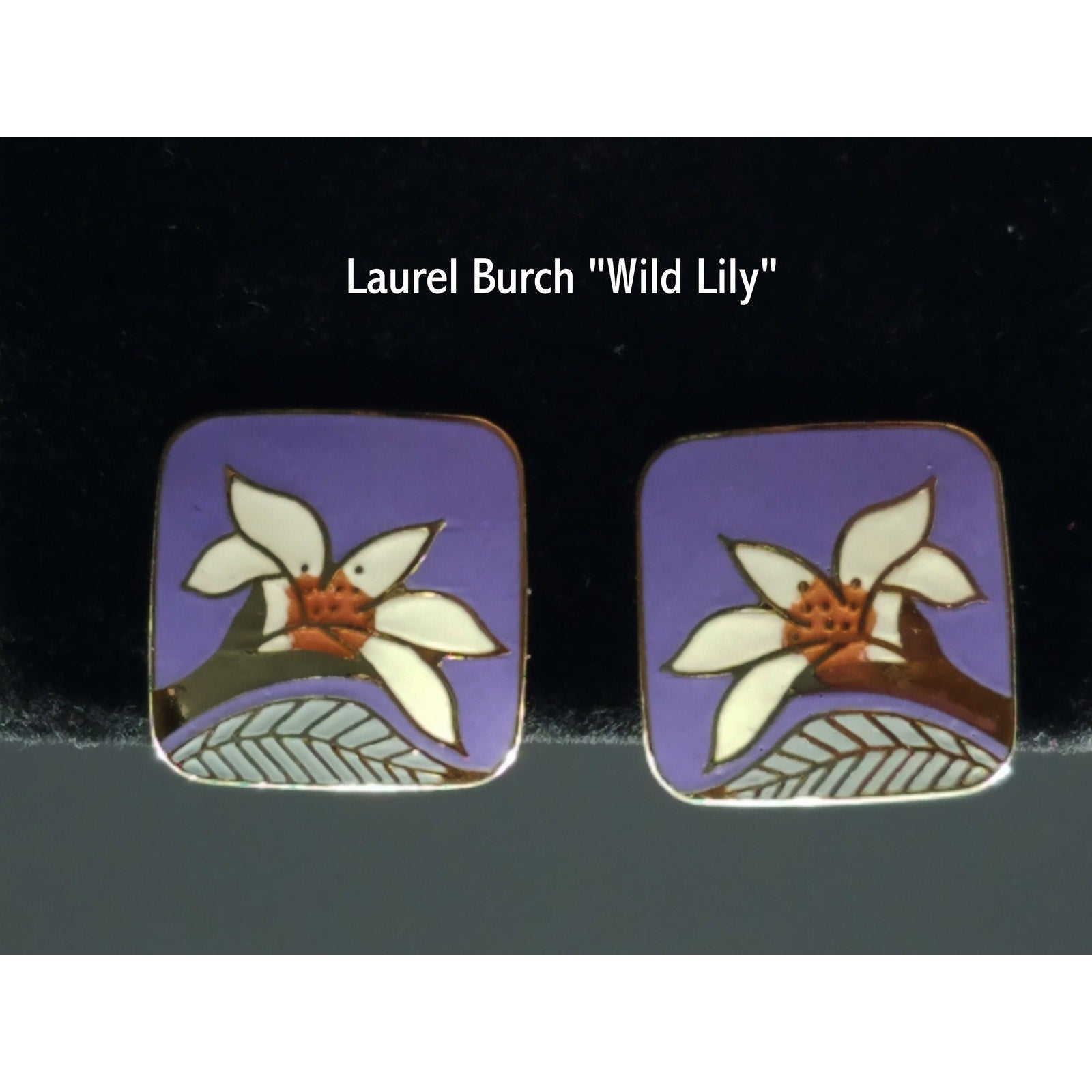 *Description: These Laurel Burch Earrings are less than in inch in length and width and are a white wild lily on a lavender background with gold tone trim. They are clip on earrings and a beautiful shade of lavender with the contrasting white lily and pale greenish gray leaves trimmed in gold tone.