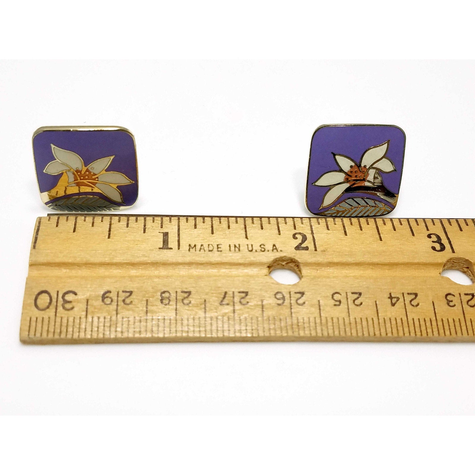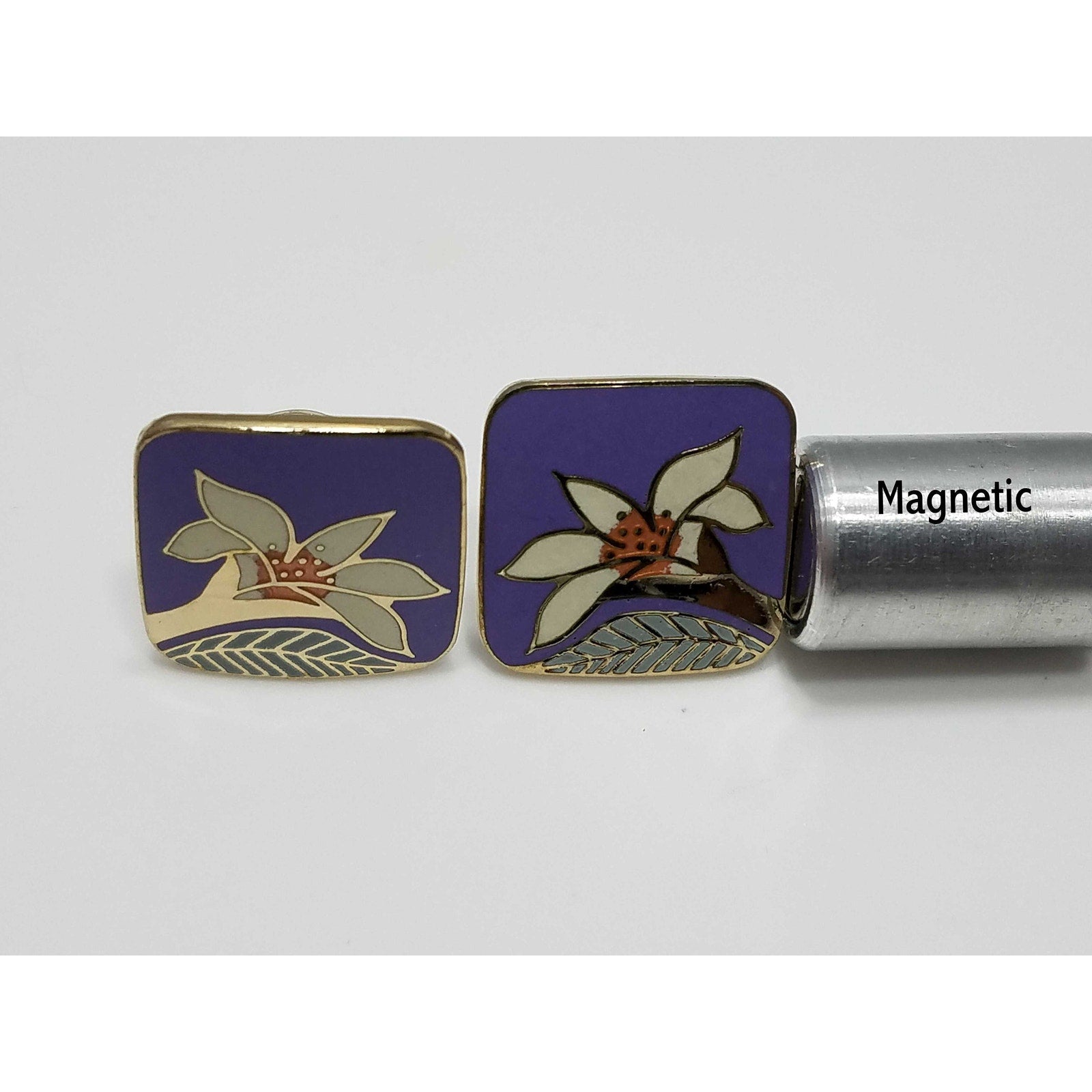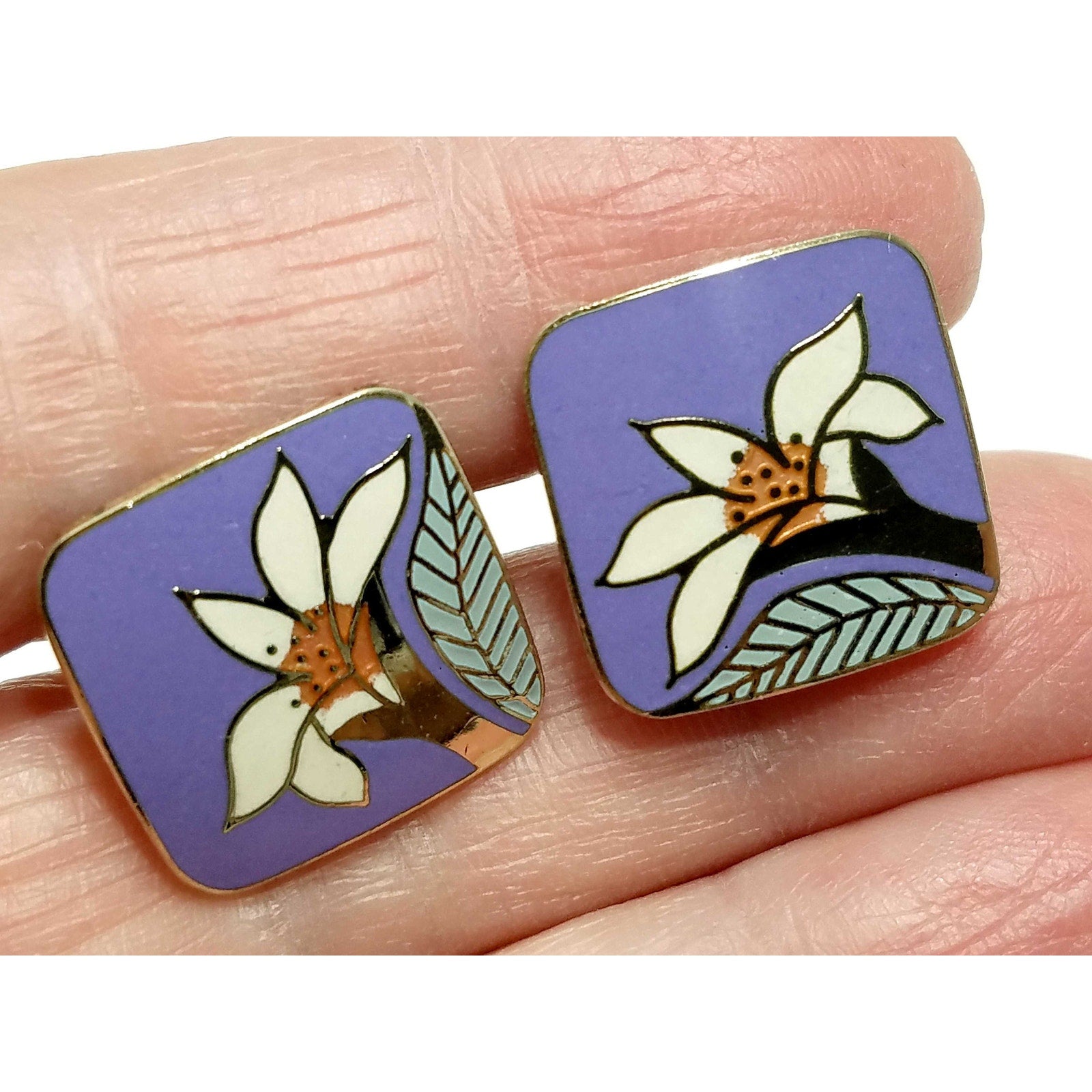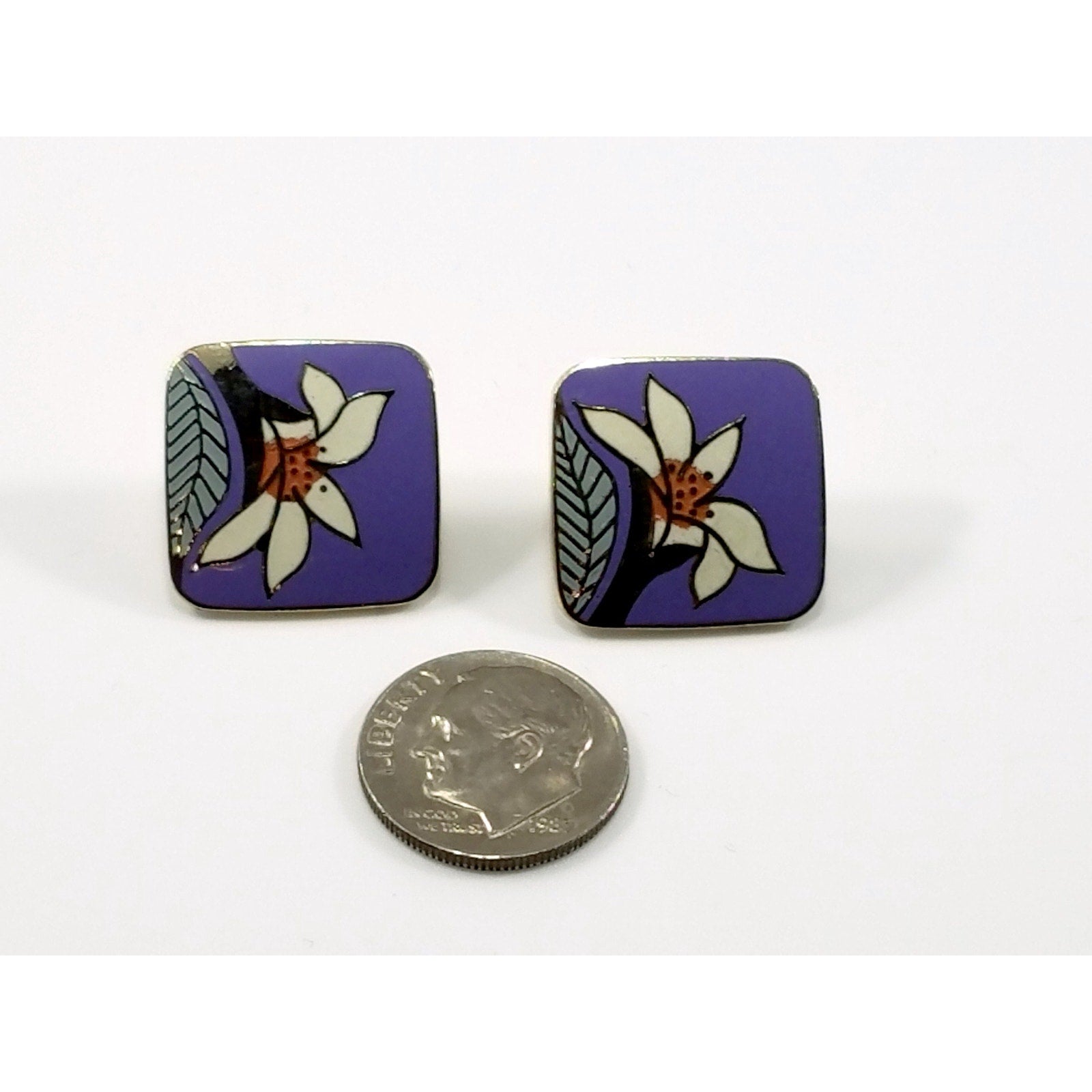 *Description: These Laurel Burch Earrings are less than in inch in length and width and are a white wild lily on a lavender background with gold tone trim. They are clip on earrings and a beautiful shade of lavender with the contrasting white lily and pale greenish gray leaves trimmed in gold tone.