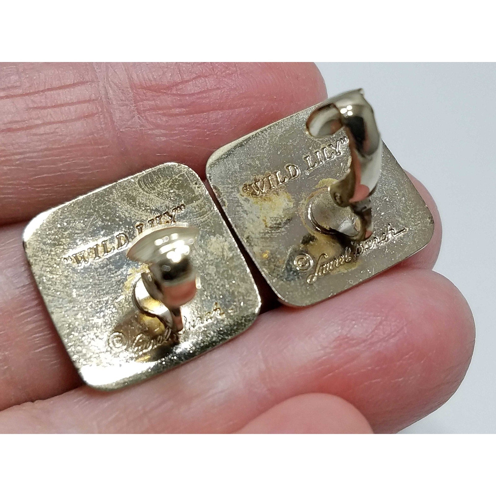 Laurel Burch "Wild Lily" Clip Earrings, Gold Plated, 1980s Vintage Earrings