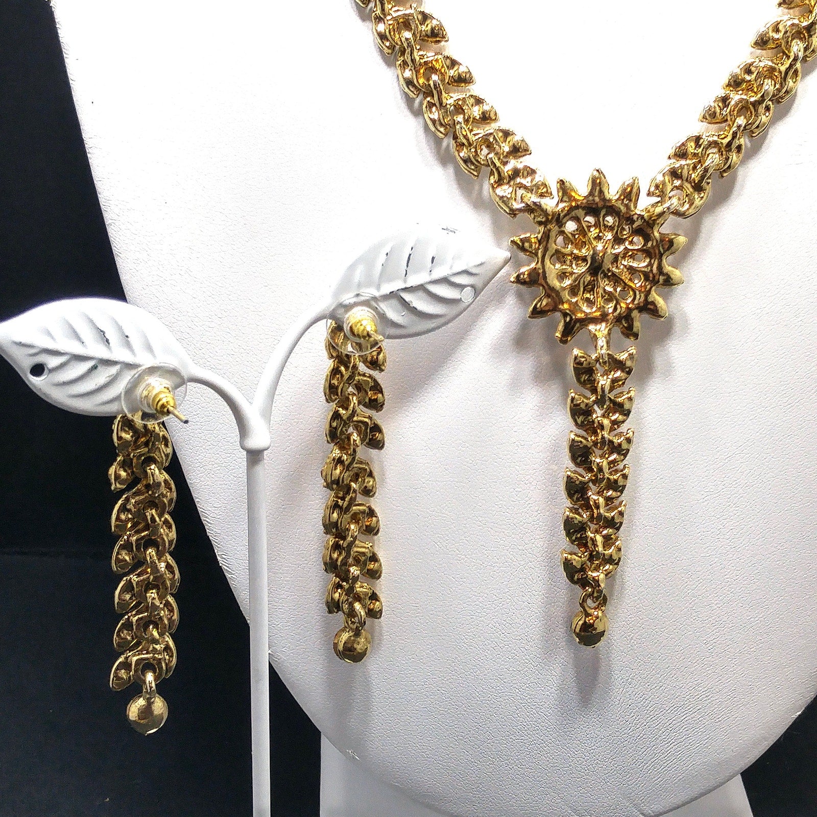 *Approximate Measurements: Necklace Length - 20 Inches, Pendant - 3 1/8 Inches by 1 1/8 Inches, Earrings - 2 3/8 Inches by 3/8 Inch, Weight - 3 Ounces