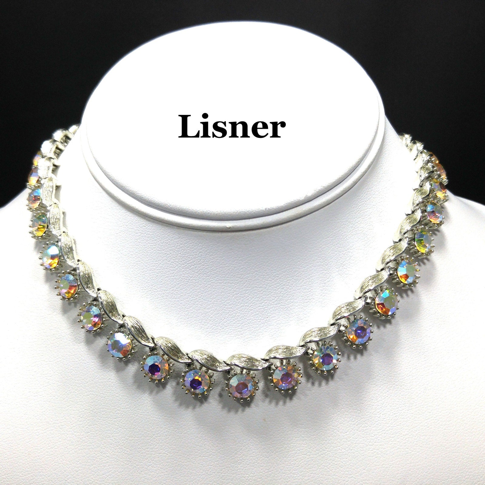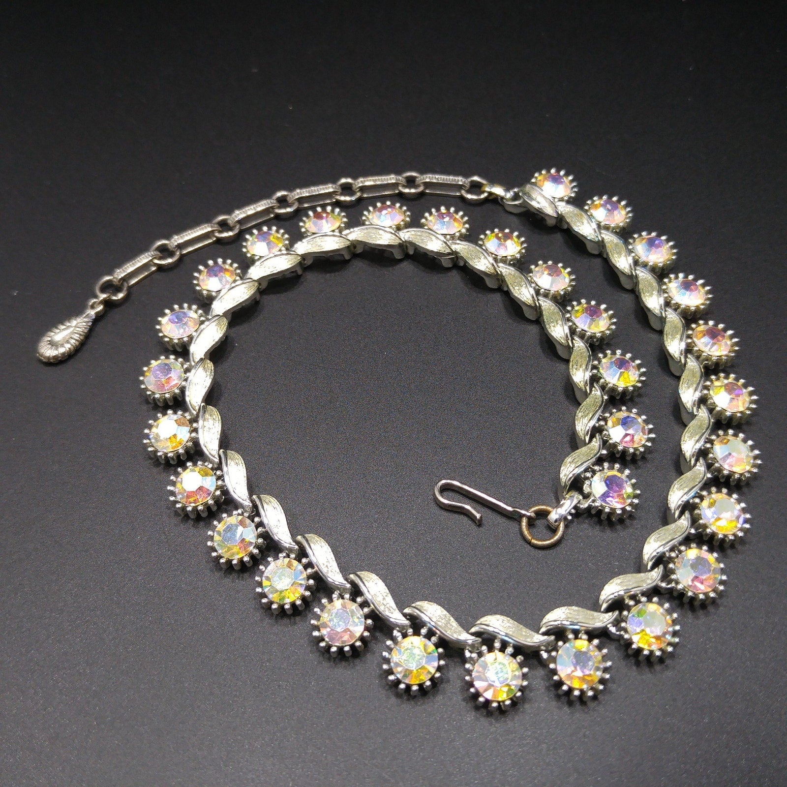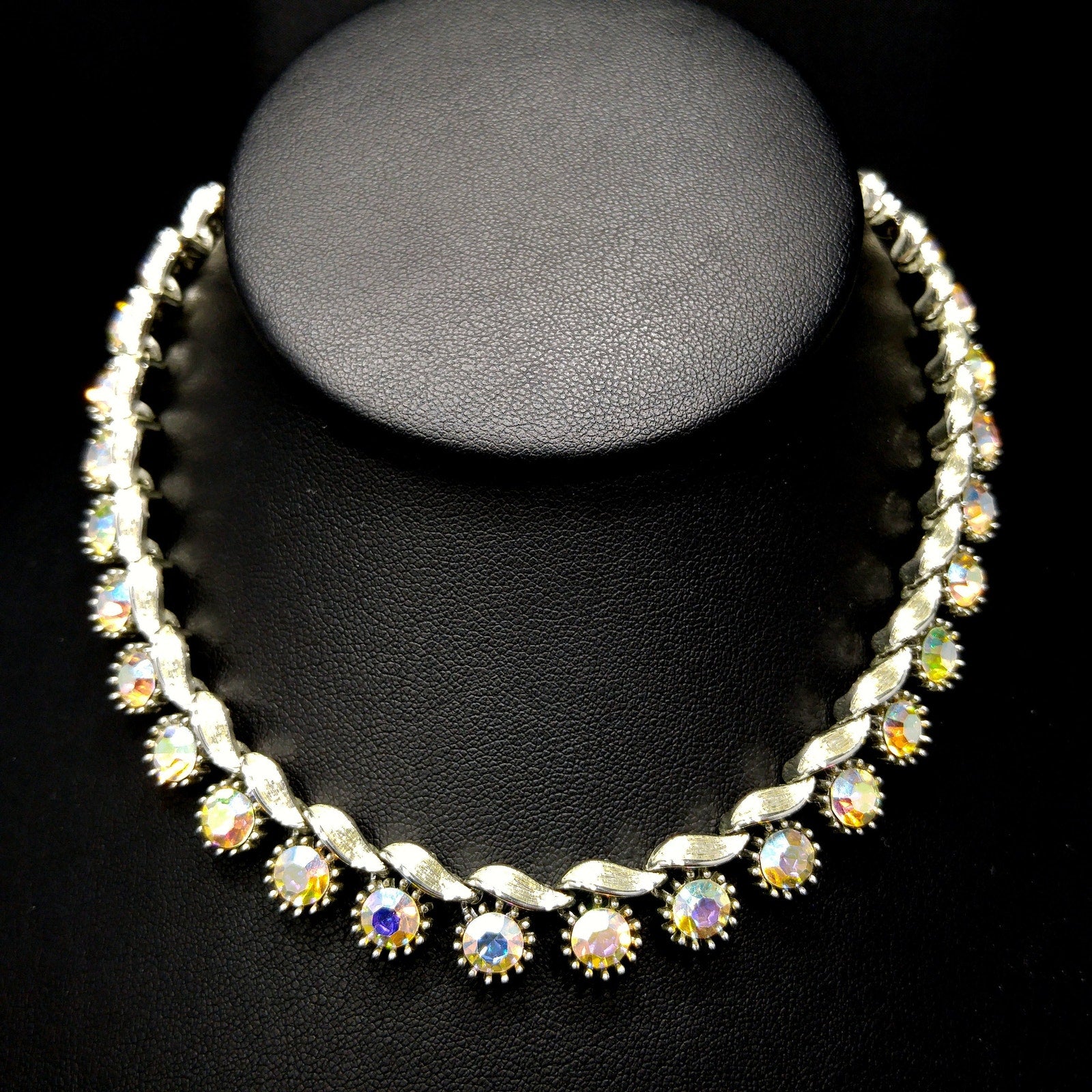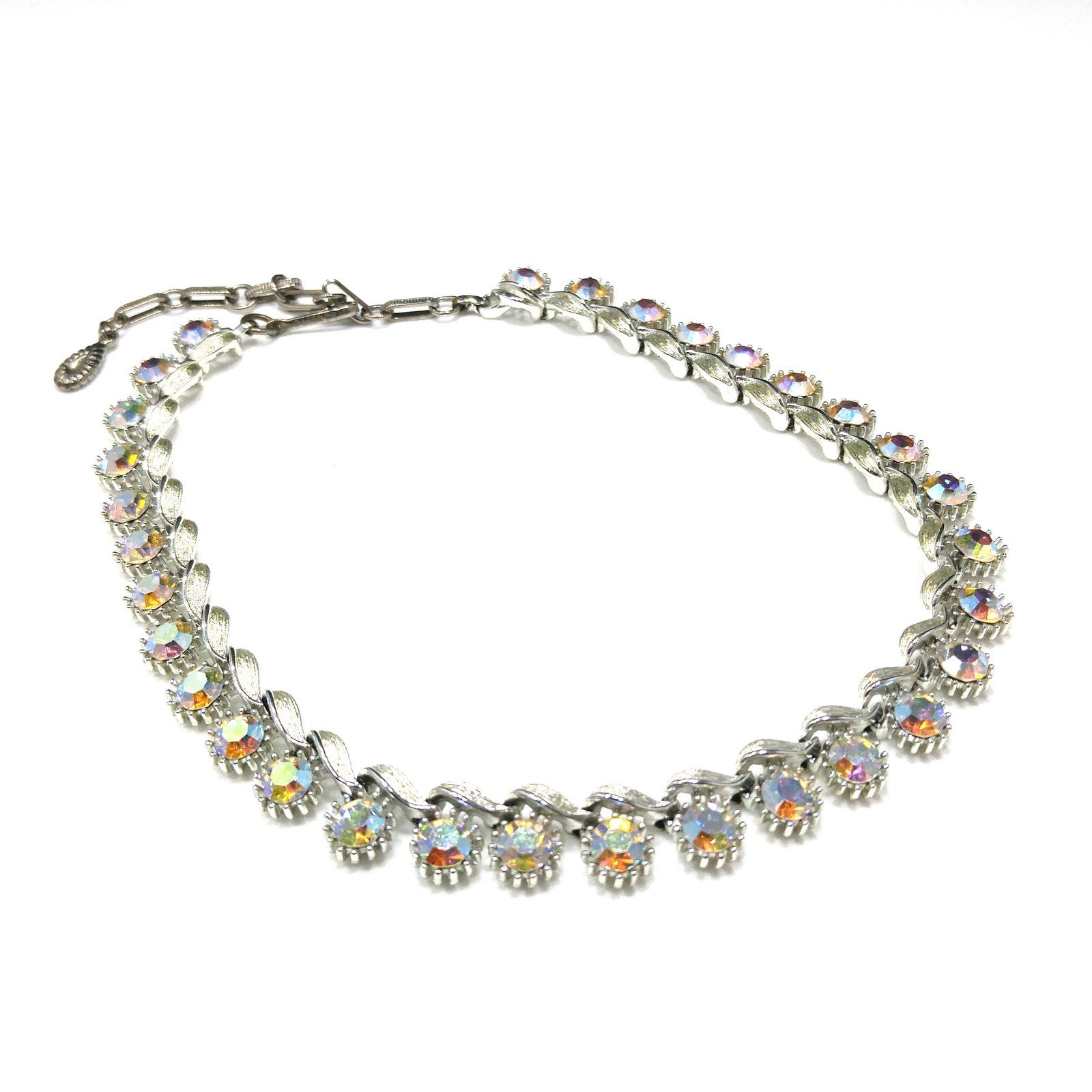 Lisner Aurora Borealis Rhinestone Necklace, 1960s Vintage Jewelry