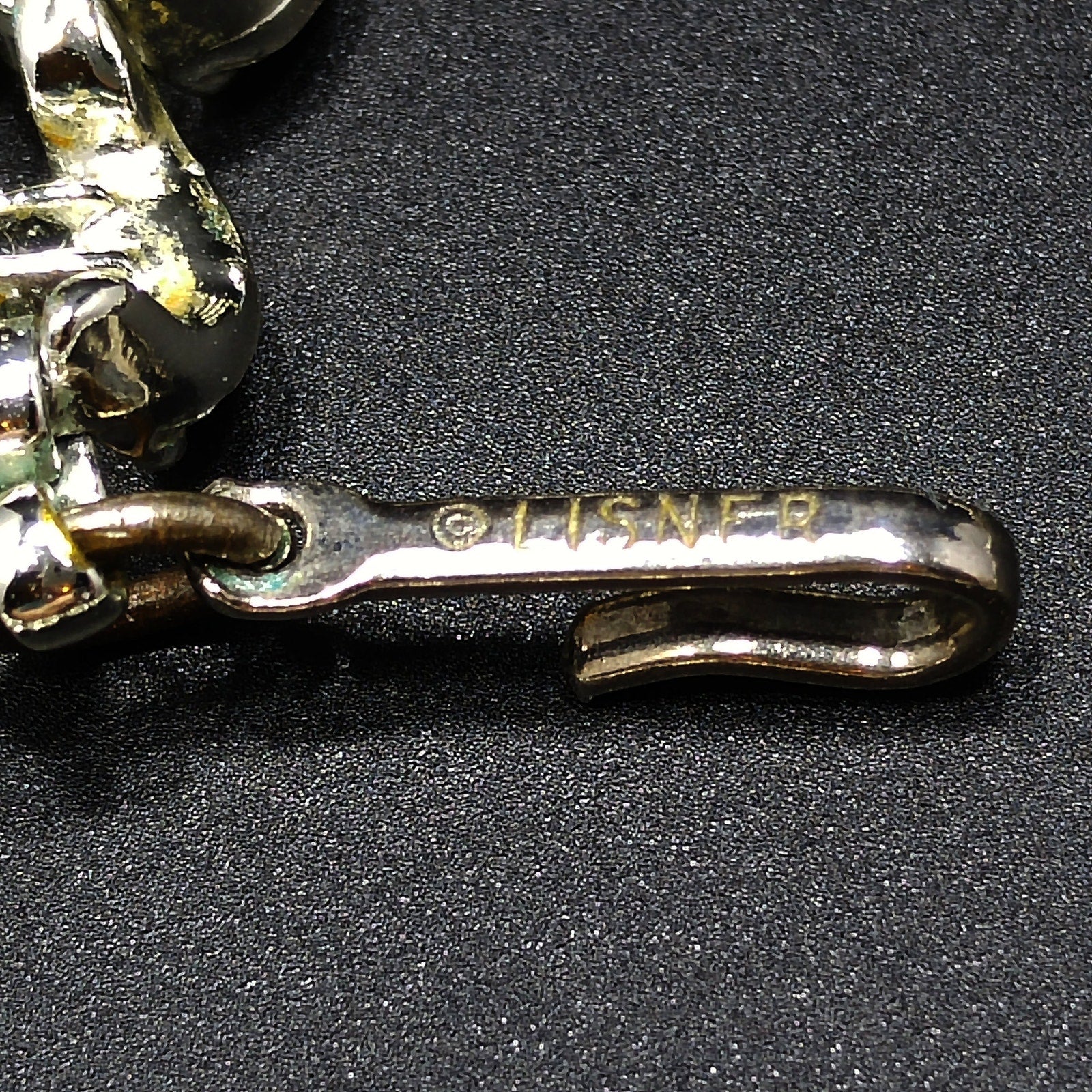 *Description: This is a beautiful Lisner necklace with aurora borealis crystal rhinestones on a silver tone metal with light gold textured leaves. The rhinestones are sparkling with rainbows of color. The metal leaves on the links are textured gold tone with the edges looking more silver tone. The back also looks like silver rhodium plating. I believe you could wear it with silver or gold and look beautiful. Great adjustable length and a gorgeous necklace to wear to any special occasion. This would be a great addition to your vintage jewelry collection or make a great vintage gift!