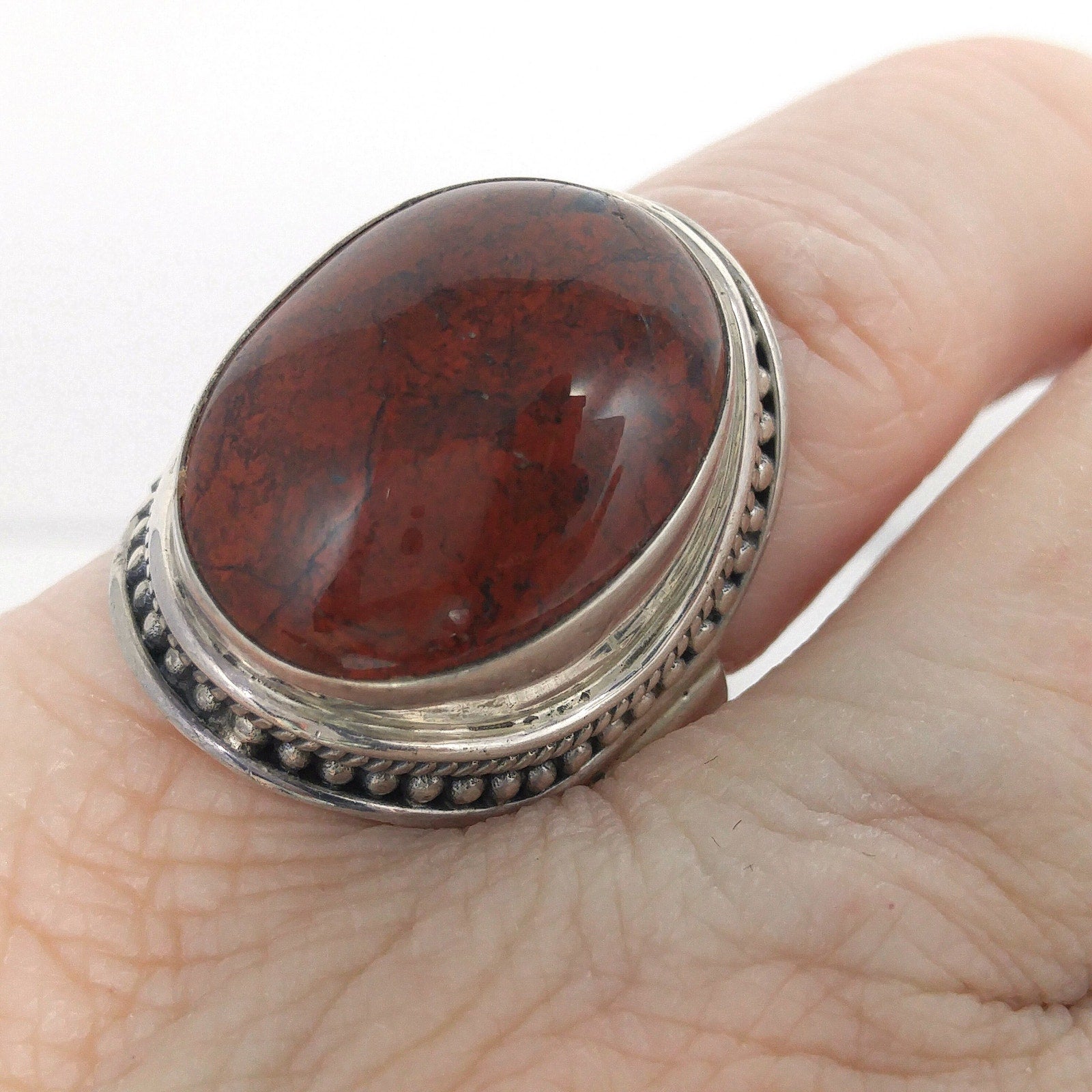 This artisan-crafted piece blends timeless style with rich color, making it a striking accessory for any collection. Perfect for everyday wear or as a standout statement ring for special occasions.