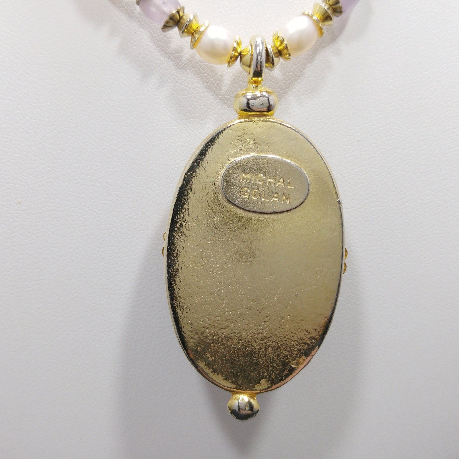 Michal Golan Amethyst Beaded Pendant Necklace, Faux Pearls, Artisan Vintage Jewelry