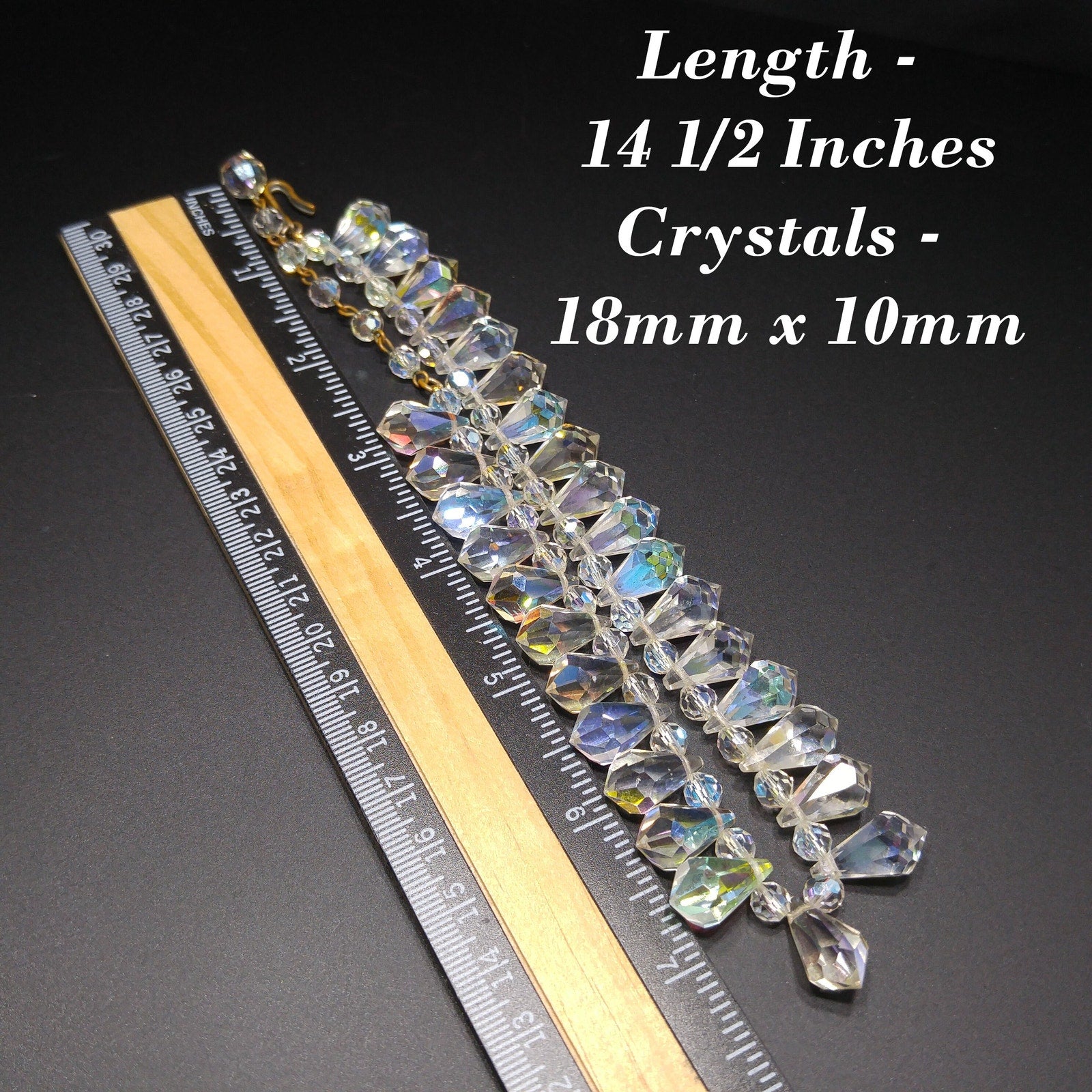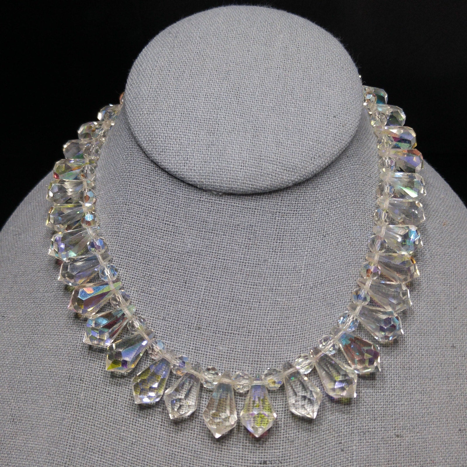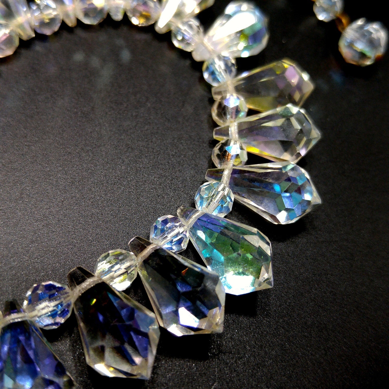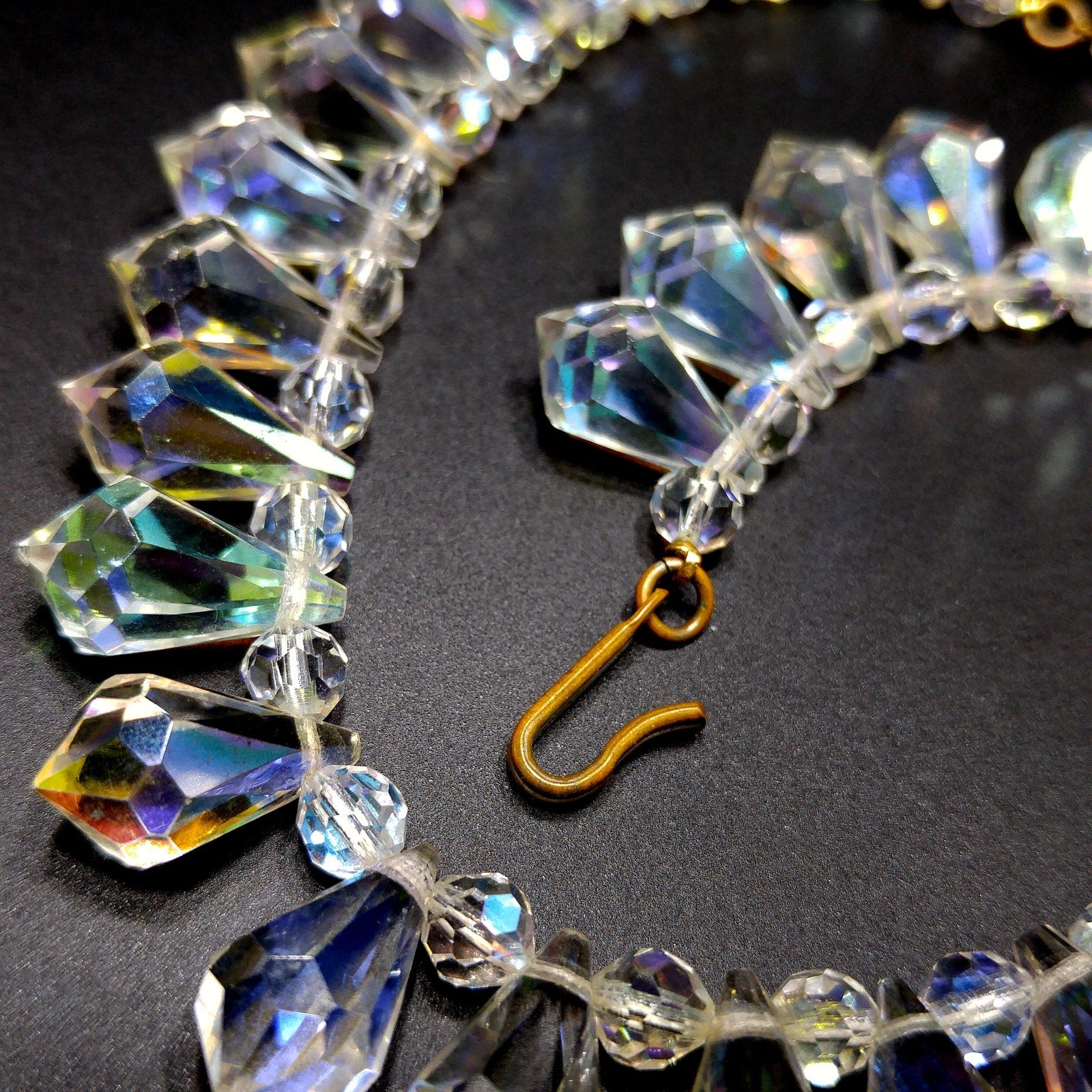 Mid-Century Crystal Teardrop Dangling Necklace, 18mm AB Crystals, 1950s Vintage Jewelry