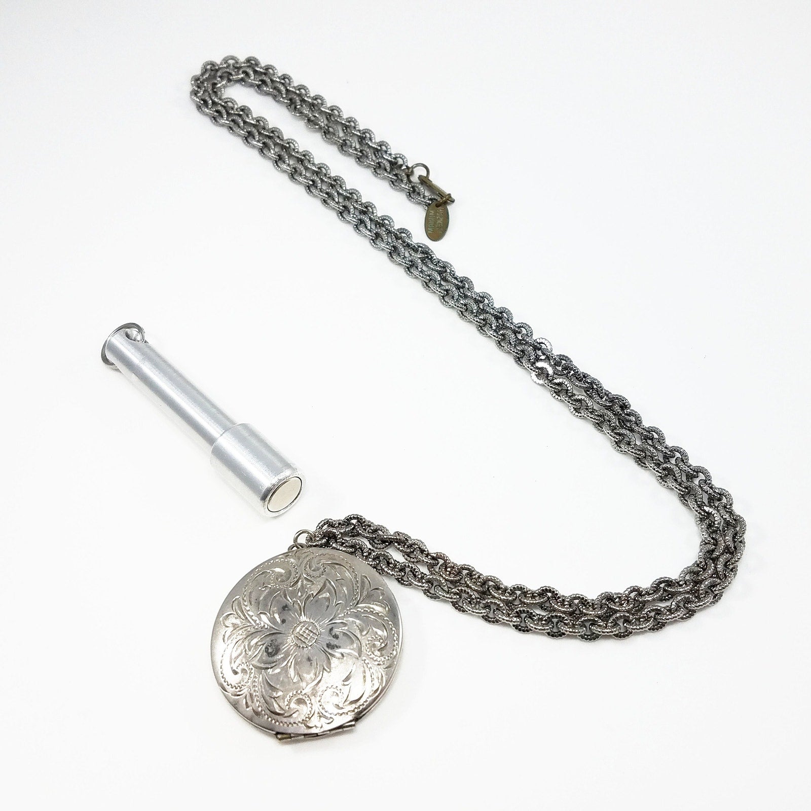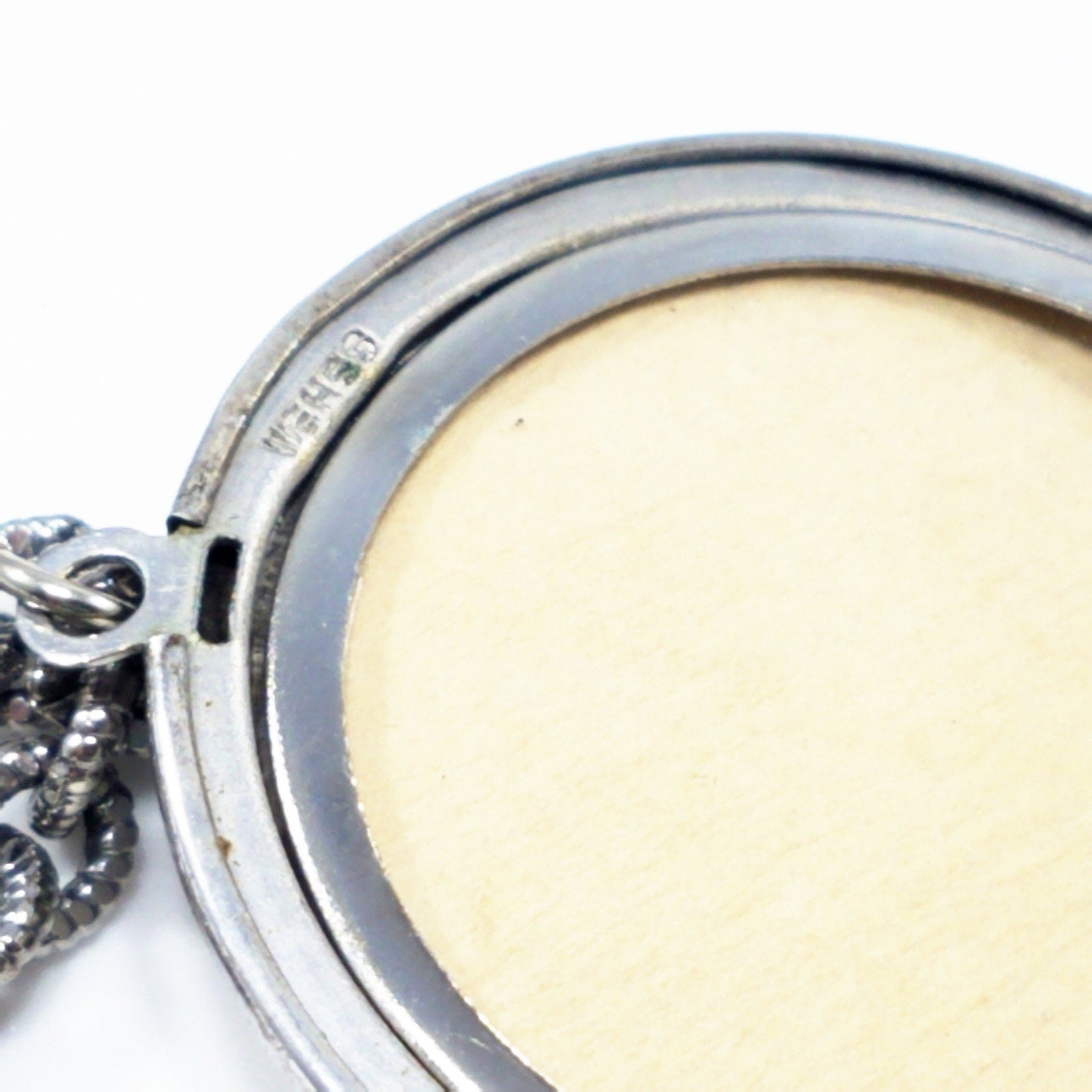 Vintage Miriam Haskell Photo Pendant Necklace Signed MIRIAM HASKELL Patent 342769 Silver Tone Etched Floral Pendant & Chain Holds 2 Photos
