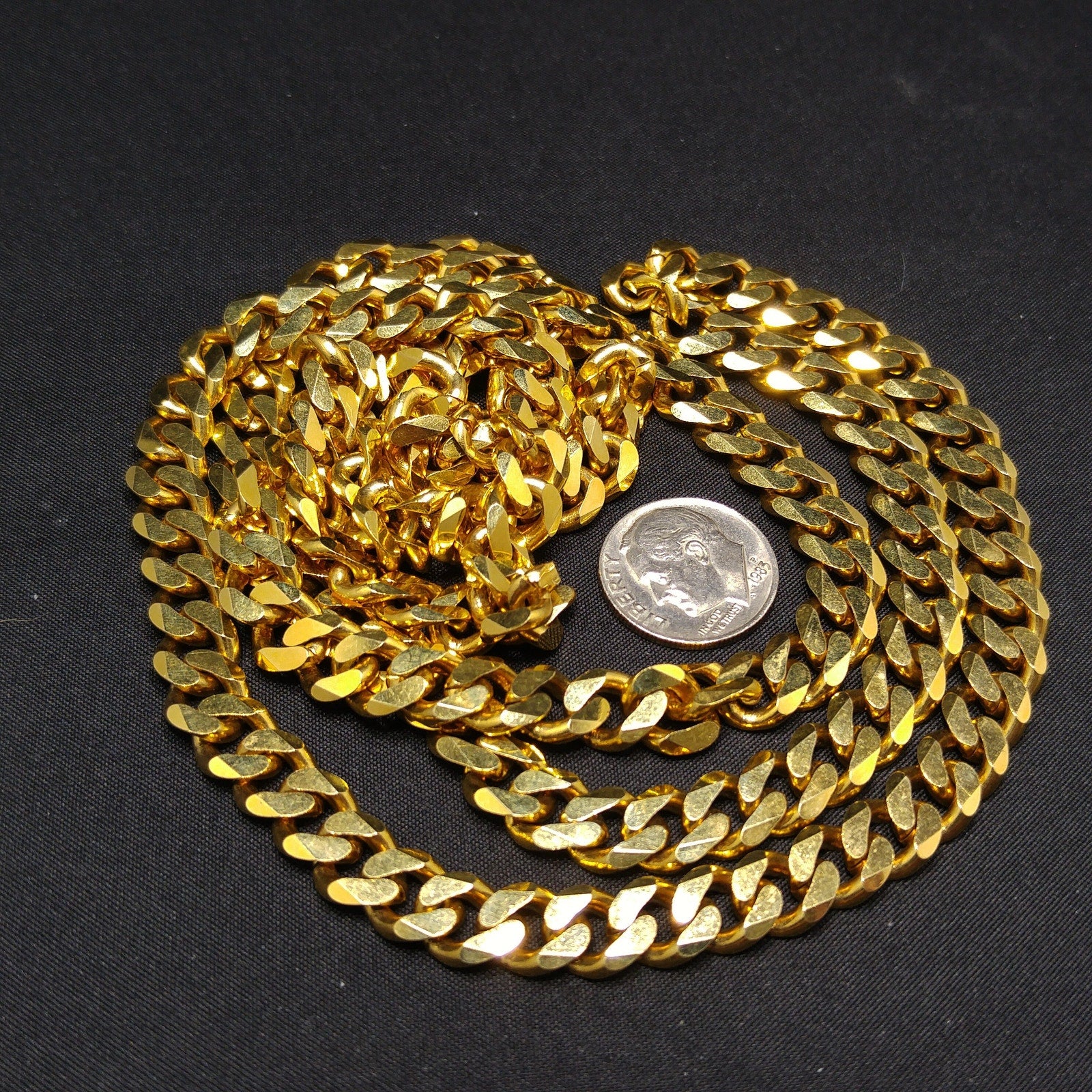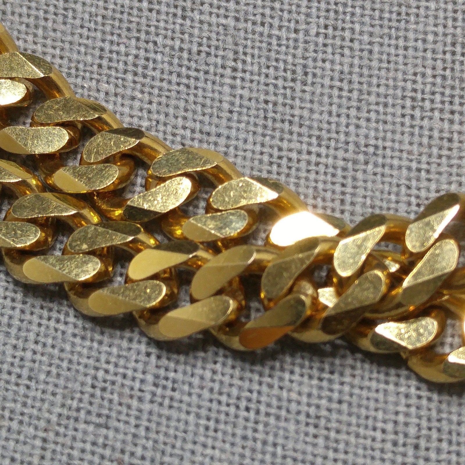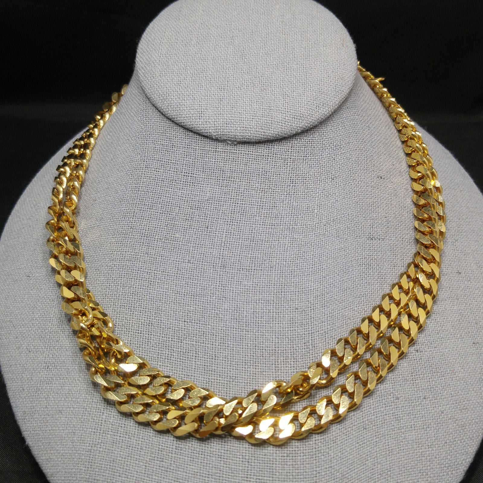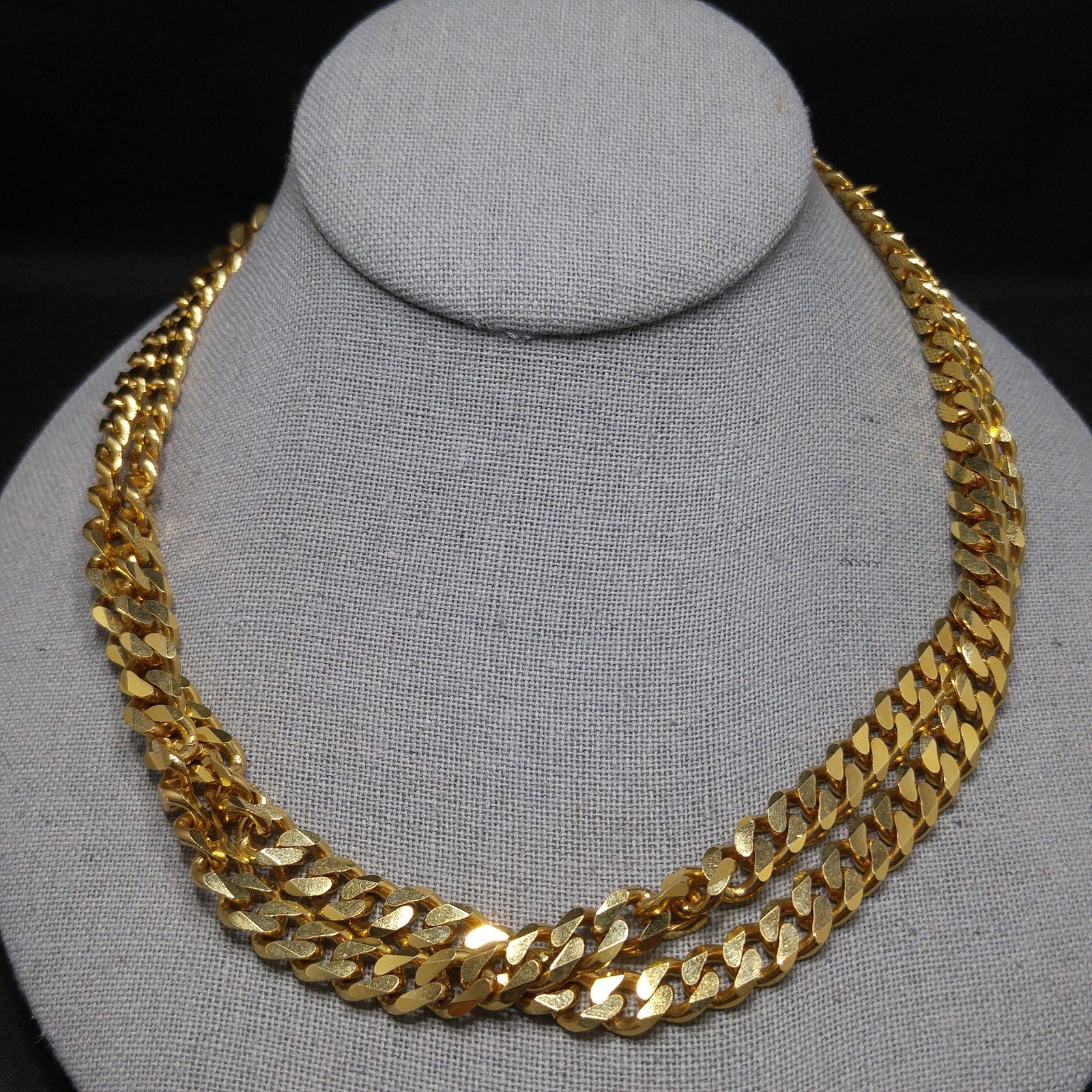 *Description: This is a beautiful Monet Cuban or Curb long chain necklace from the 1980s to 1990s. It is gold plated and has a Monet oval tag near the lobster clasp. The necklace may be worn long or looped around your neck to create a double strand. This would be a great addition to your vintage jewelry collection or make a great vintage gift!