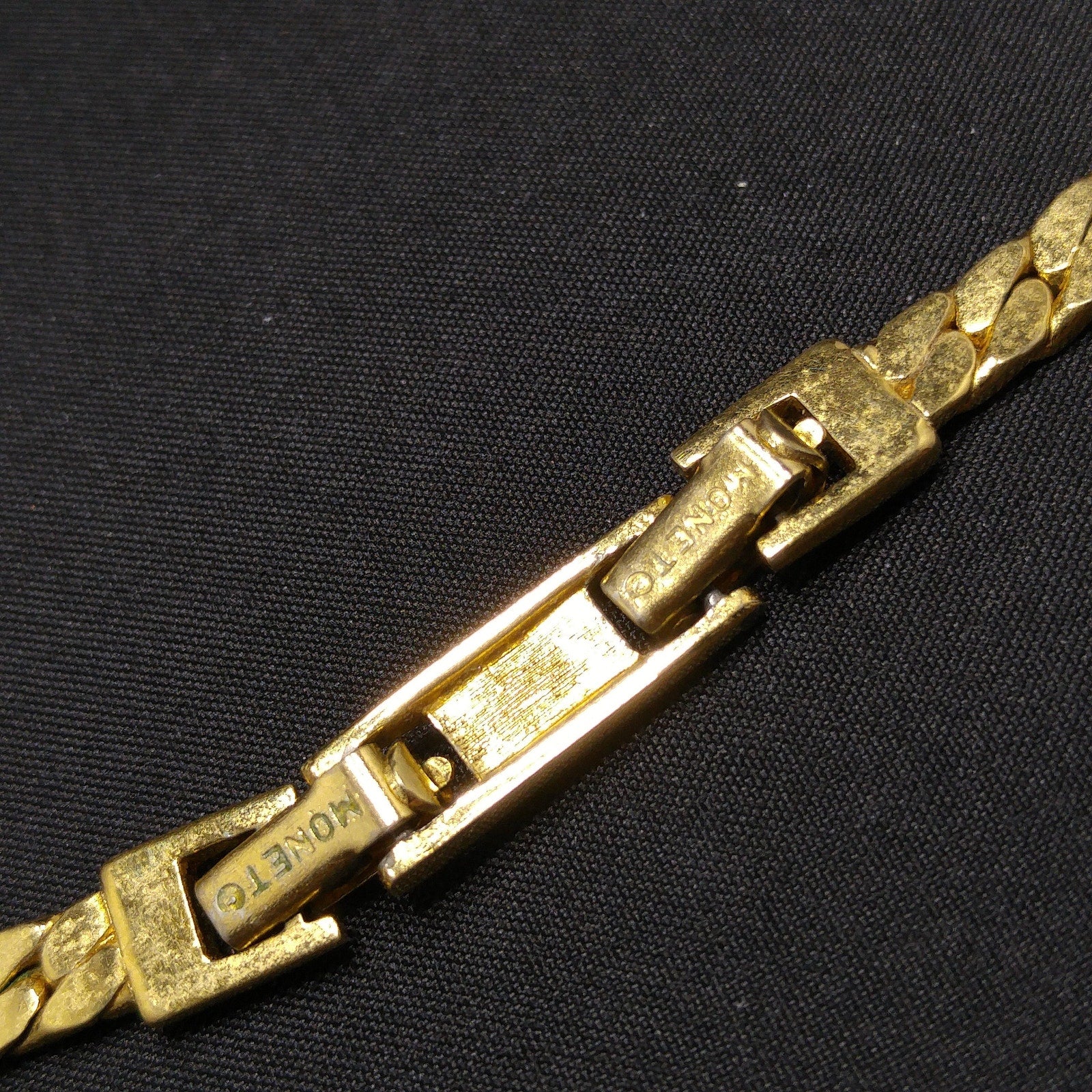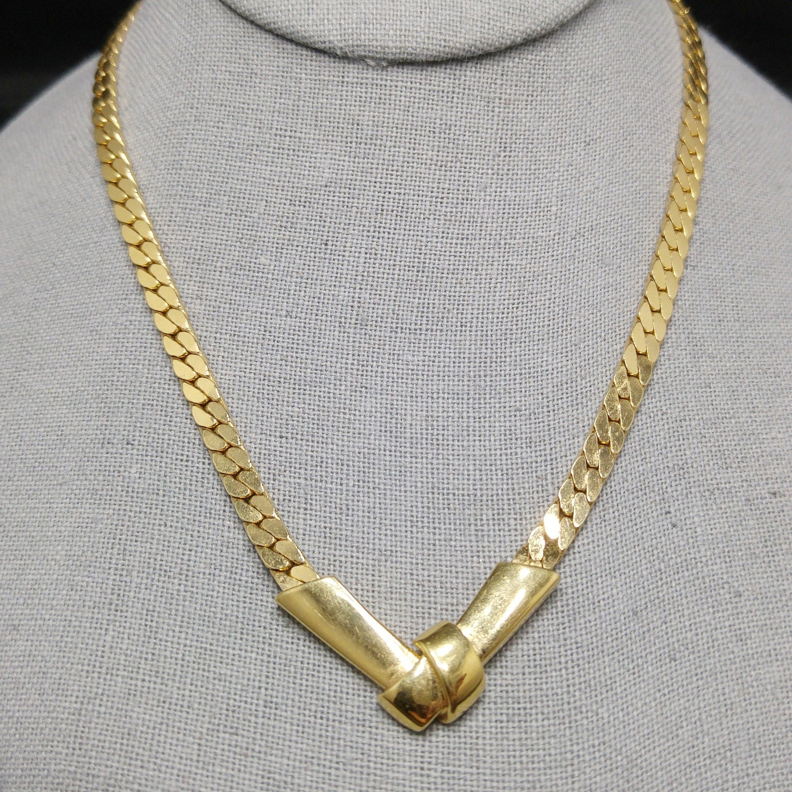 Monet Herringbone Chain Necklace, Gold Plated, V Pendant, 1980s Vintage Jewelry