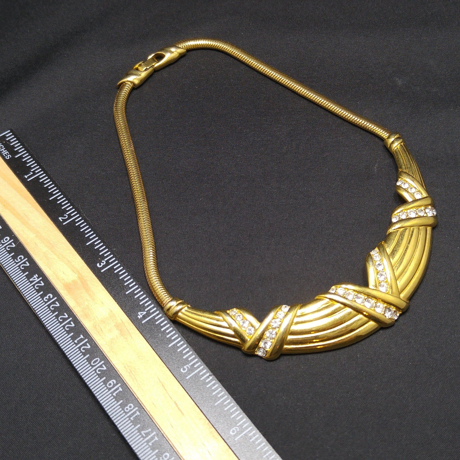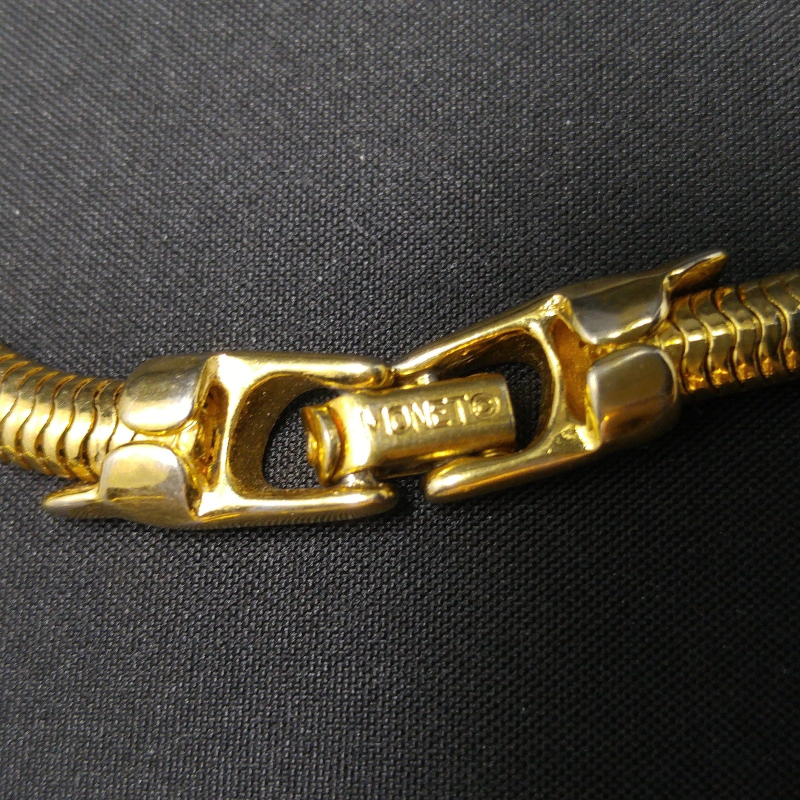 Monet Rhinestone Necklace, Gold Plated Snake Chain, 1960s Vintage Jewelry