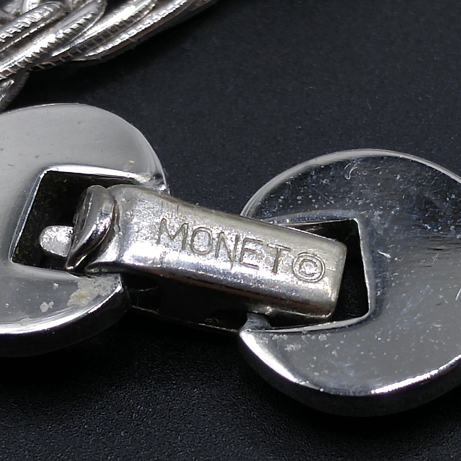Monet Rhodium Plated Pendant Necklace, Fold Over Clasp, 1960s Vintage Jewelry