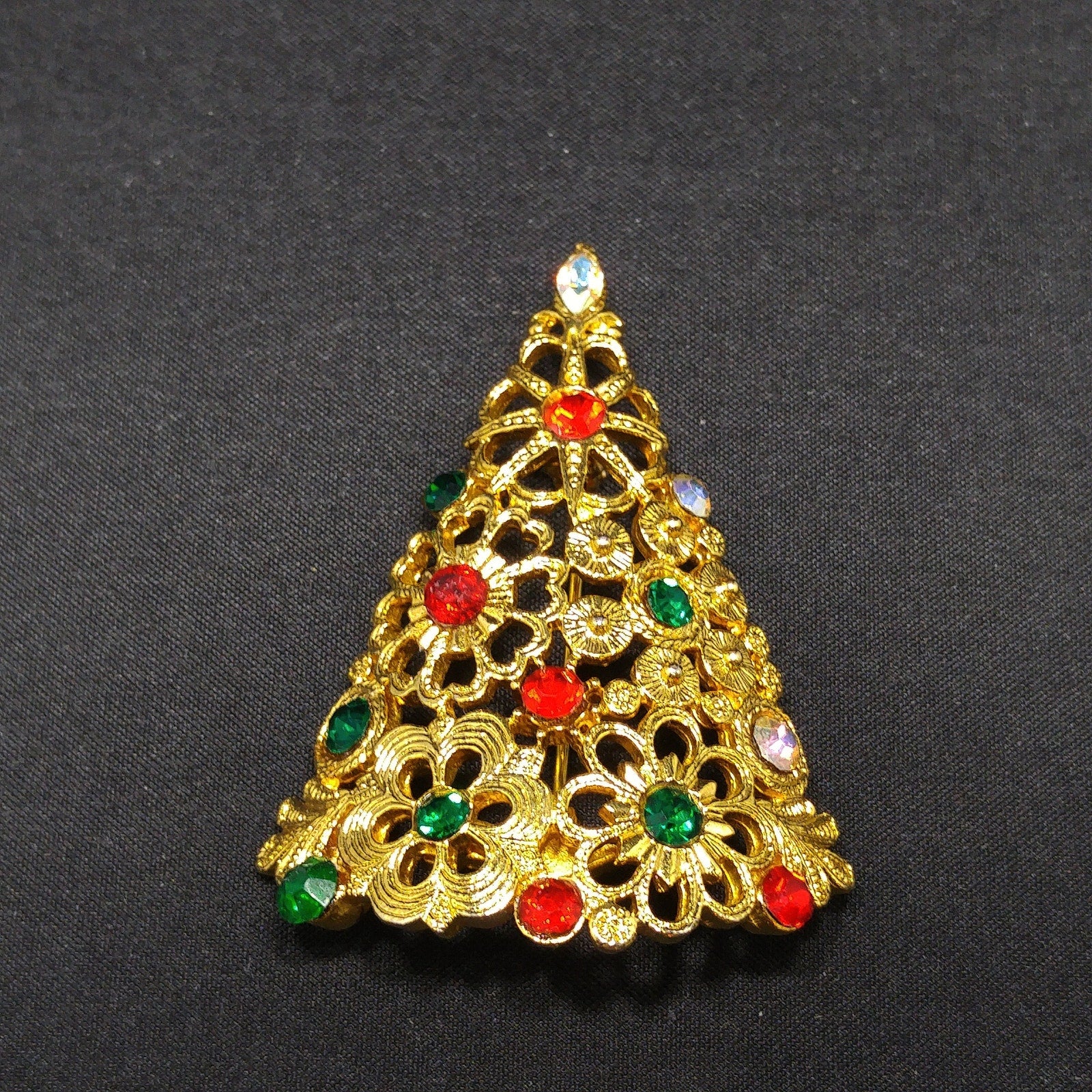 This brooch is a highly collectible holiday design and a wonderful addition to your vintage jewelry collection or a thoughtful gift for someone who loves Christmas tree pins.