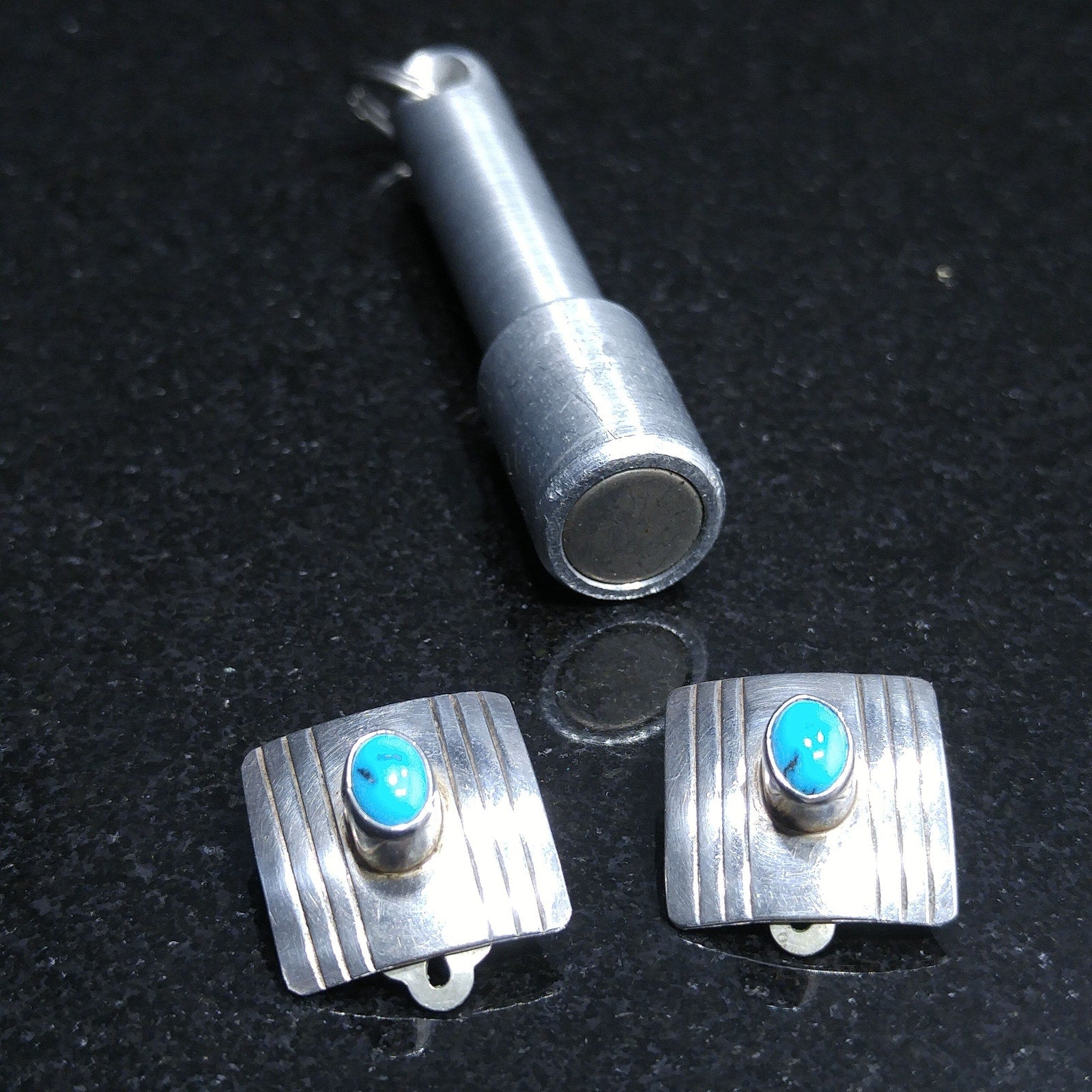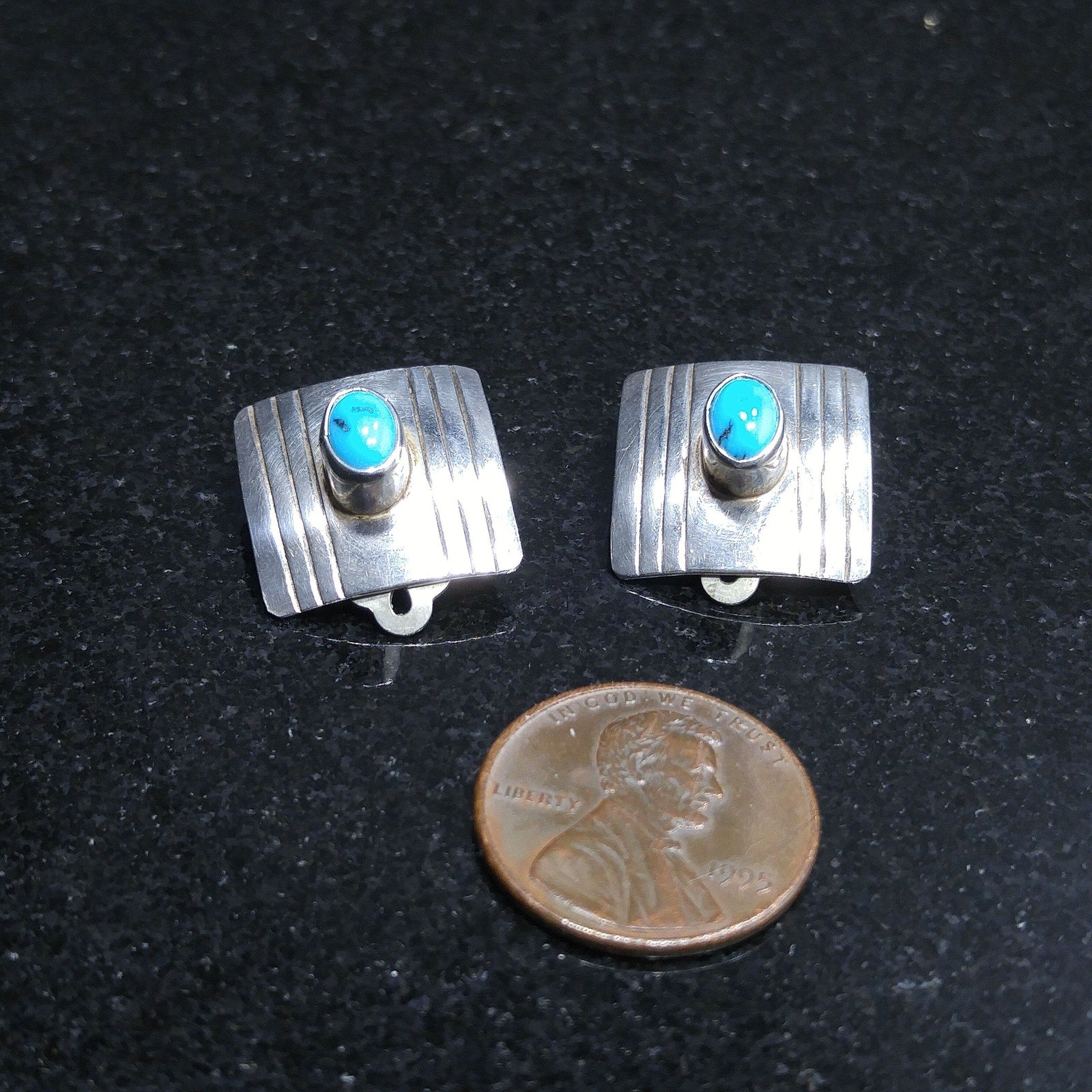 Navajo Frank Ramone Sterling Turquoise Earrings, Small Clip On Earrings, 1970s Vintage Jewelry