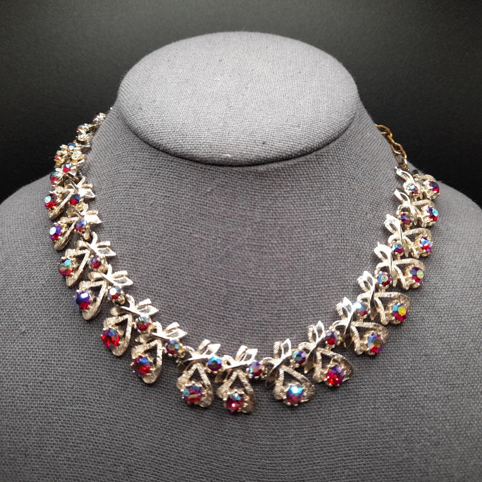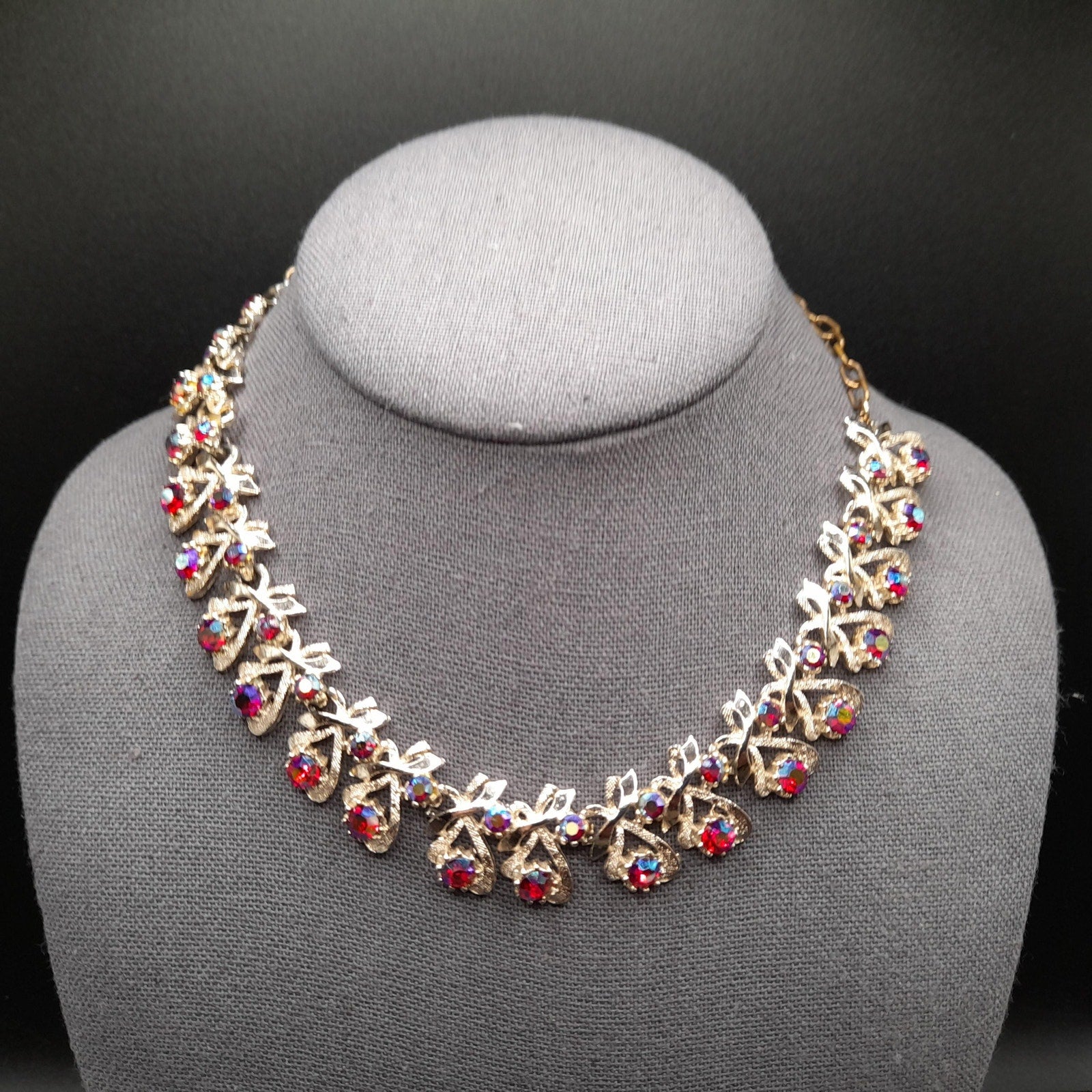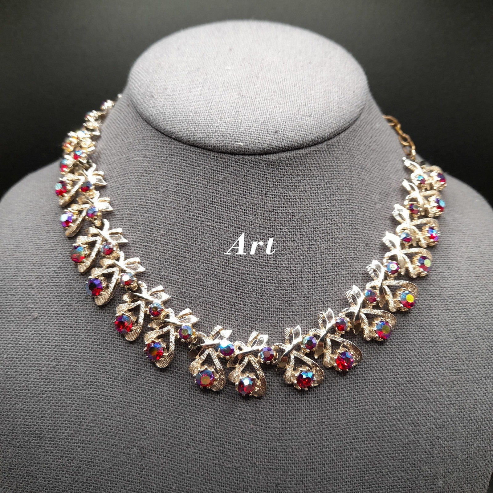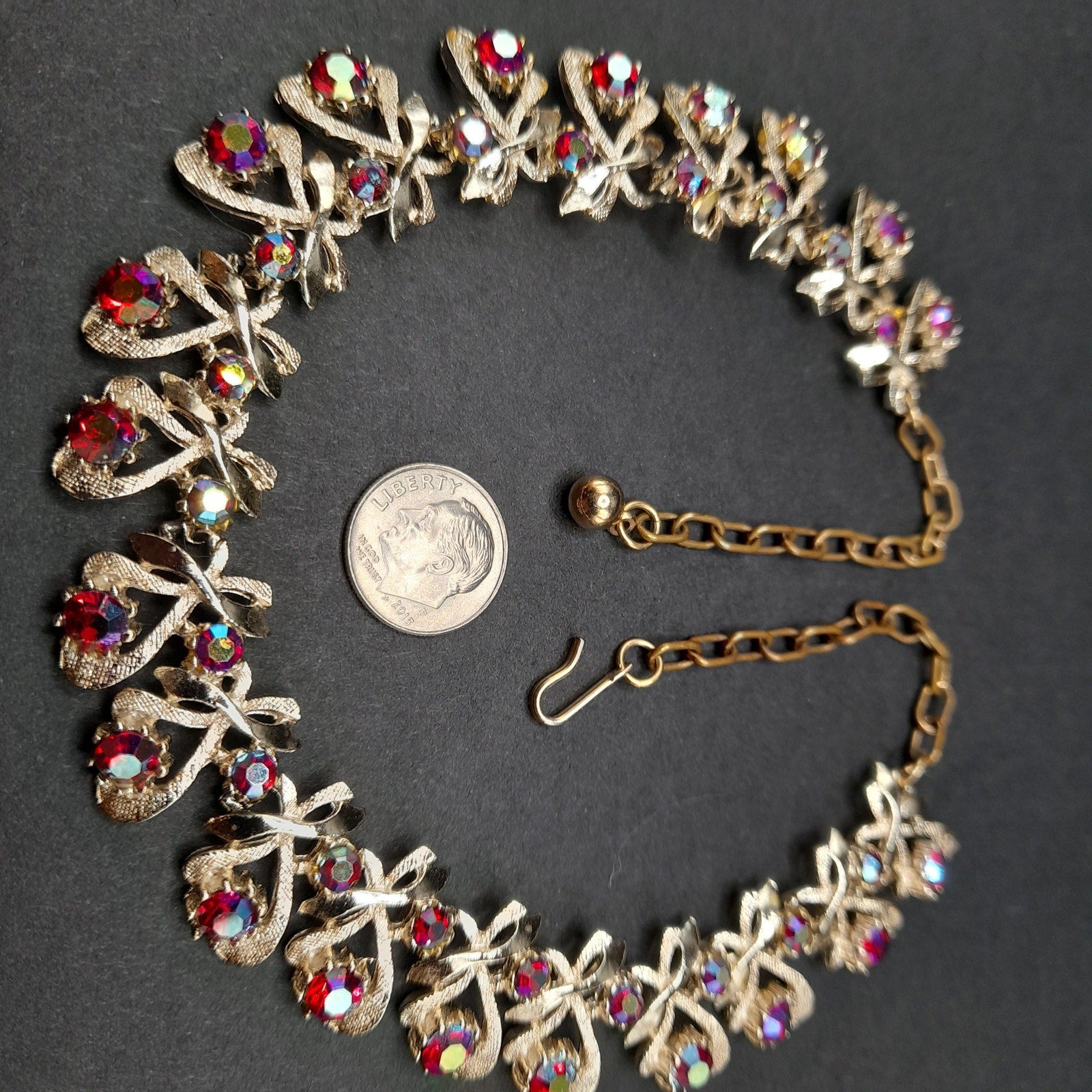 Red AB Rhinestone Choker Necklace, Arthur Pepper, Signed Art, 1960s Vintage Jewelry