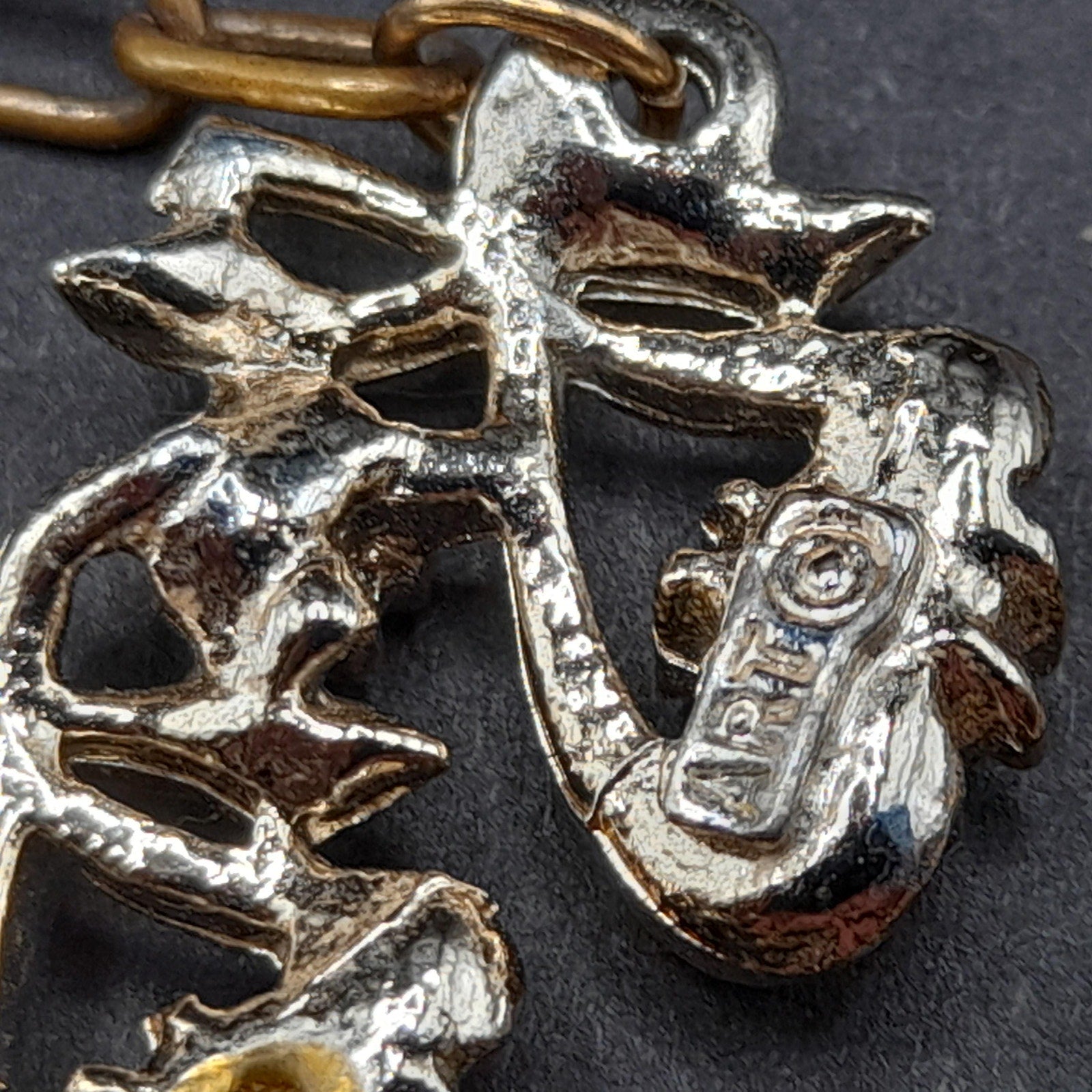 The company was named MODEART and appeared to have ART designs from the 1950s to 1970s. Arthur Pepper was the owner of MODE ART which was a New York company. The jewelry was signed ART in capital letters and after 1955 also had the copyright symbol. According to Julia C Carroll of Costume Jewelry 101, ART sets had interesting stones and color combinations which were similar to Florenza jewelry. Bracelets and necklaces had pastel rhinestones similar to Hollycraft jewelry. Many of the pins and earrings were decorated with brightly colored enamel. Some of the best Art designs include Art figural pins, glitzy Art sets, and Art Christmas Jewelry.