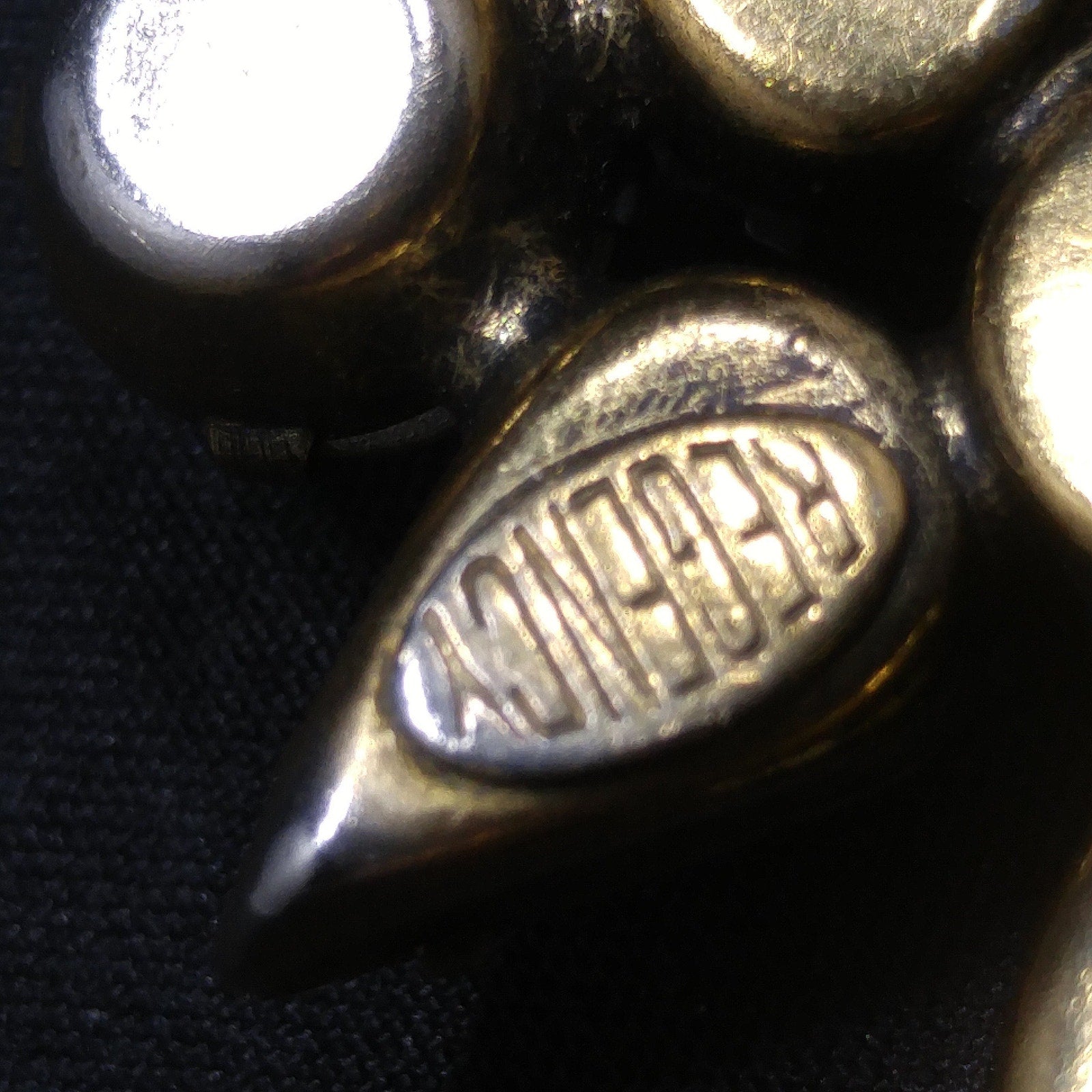 REGENCY is the hallmark for Regina Novelty Company, New York, New York. Regency was in operation from the 1940s to 1970. According to Julia C Carroll in Costume Jewelry 101, “Regency jewelry is beautifully designed and is manufactured with excellent materials. Regency designs have been mistaken for Schreiner or Juliana jewelry. Many of the designs resemble higher end Weiss designs.